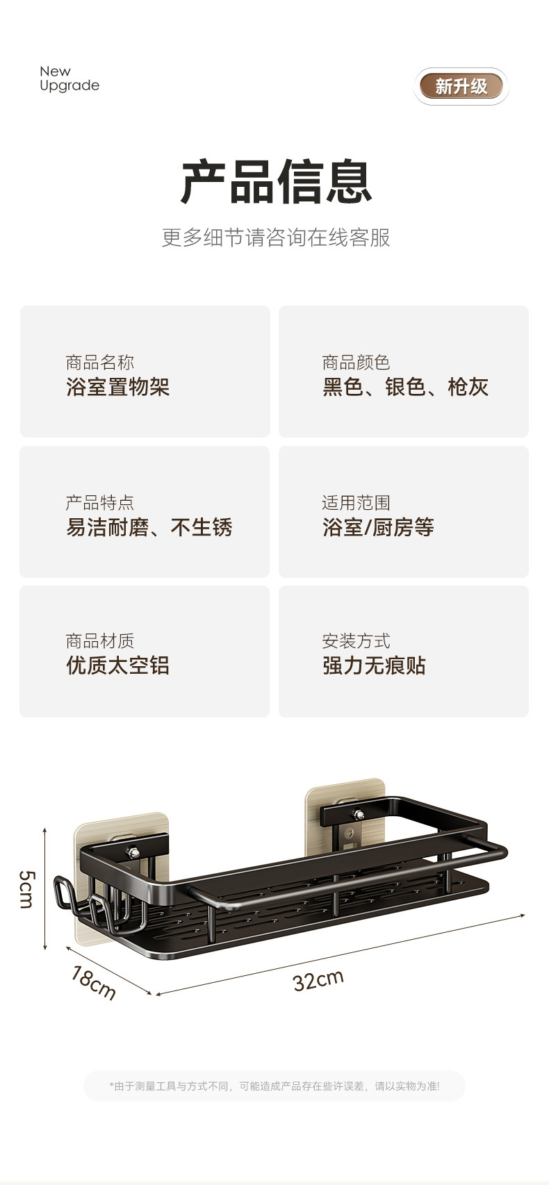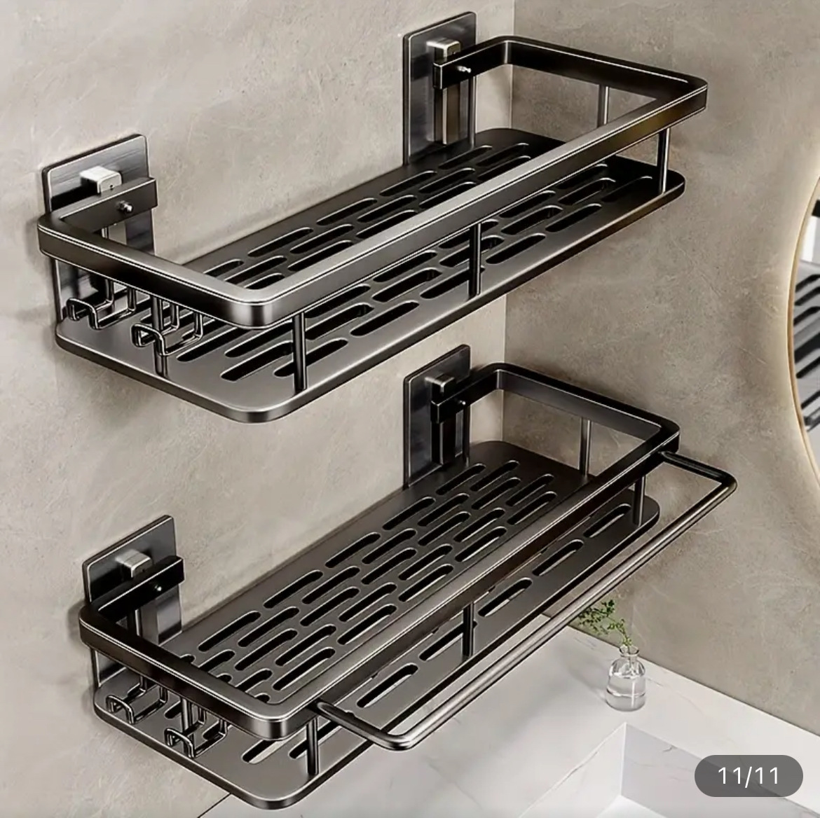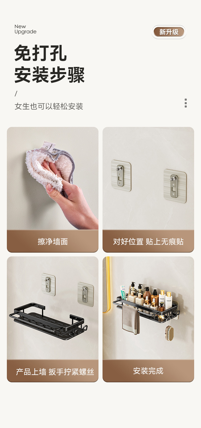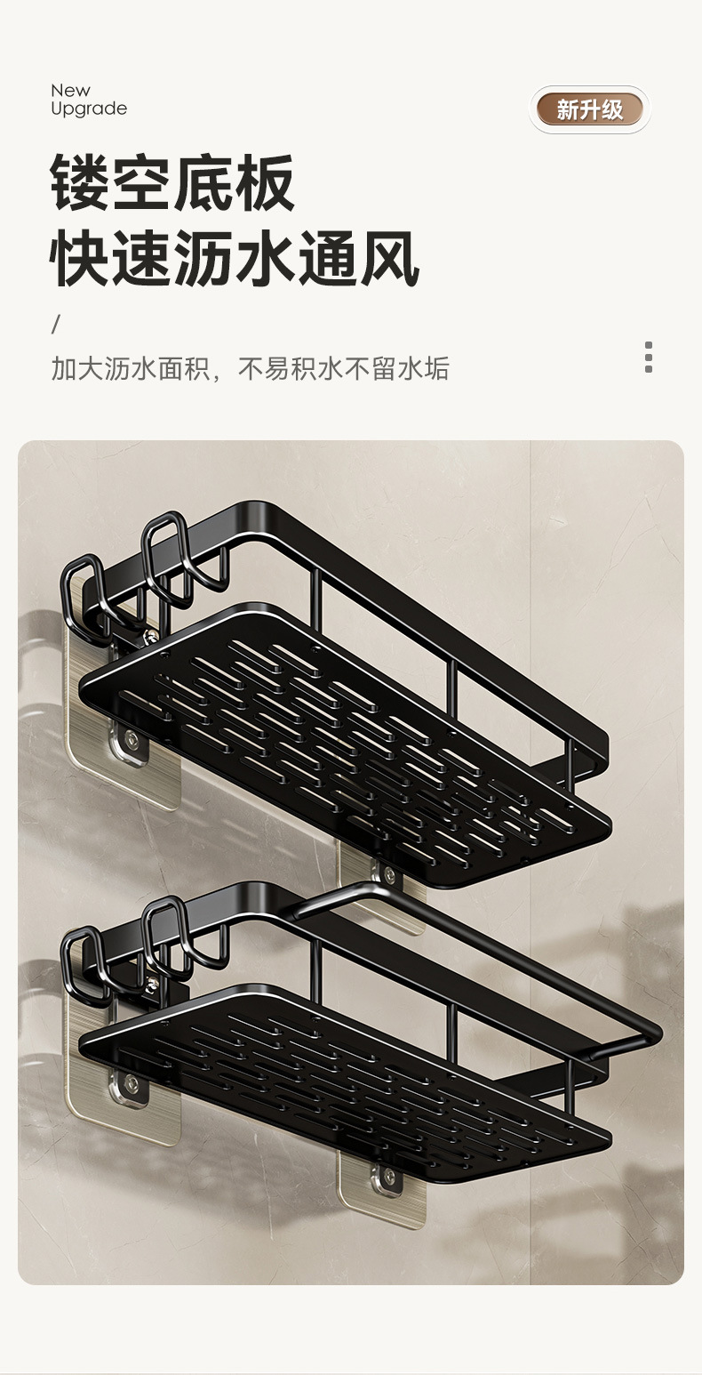 免打孔卫生间置物架浴室架子厕所洗手间洗漱台用品壁挂墙上收纳架  免打孔卫生间浴室置物架壁挂式厕所洗手间洗漱台卫浴墙上  卫生间置物架浴室免打孔四方篮洗漱台墙壁上太空铝收纳长