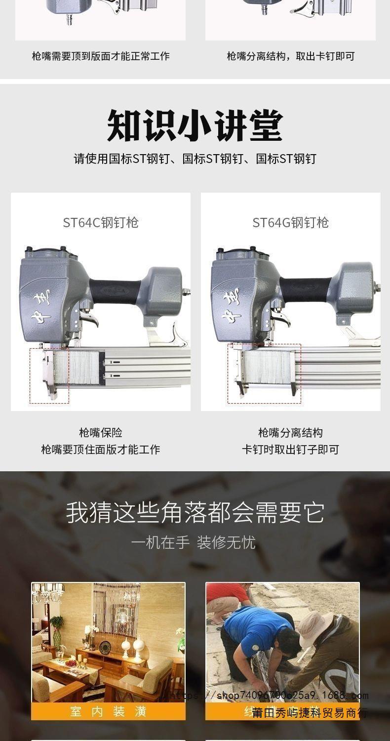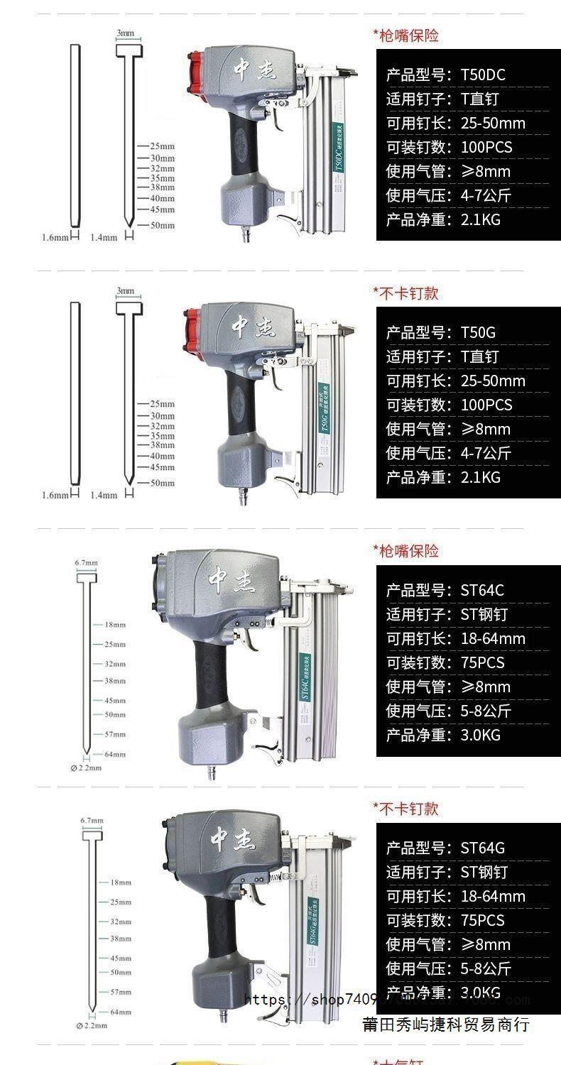 Zhongjie 공압 강철 네일 건 T38/T64 스틸 네일 안티 네일 연장 입 라인 채널 스틸 건 장식 목공 도구스토어 가기
