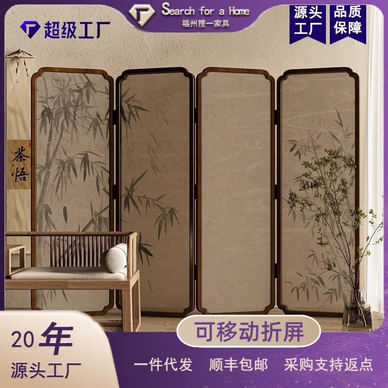 국경 단단한 나무 파티션 거실 새로운 중국 스타일의 꽃과 새 장식 입구 예술적 개념 접는 차 방 호텔 복도 화면