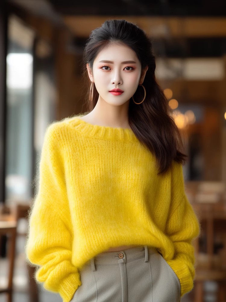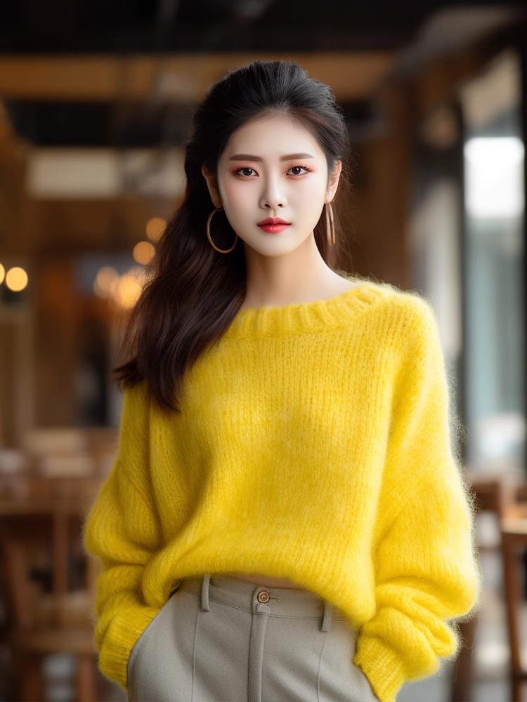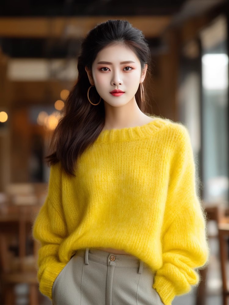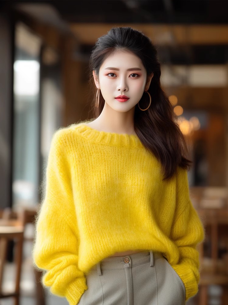 유럽 중공업 노란색 둥근 목 여성용 스웨터 가을과 겨울 게으른 부드러운 올해 인기있는 아름다운 풀오버 스웨터 여성스토어 가기