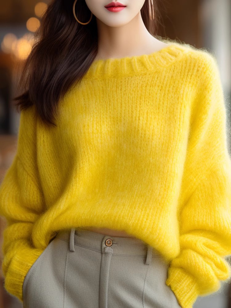 유럽 중공업 노란색 둥근 목 여성용 스웨터 가을과 겨울 게으른 부드러운 올해 인기있는 아름다운 풀오버 스웨터 여성