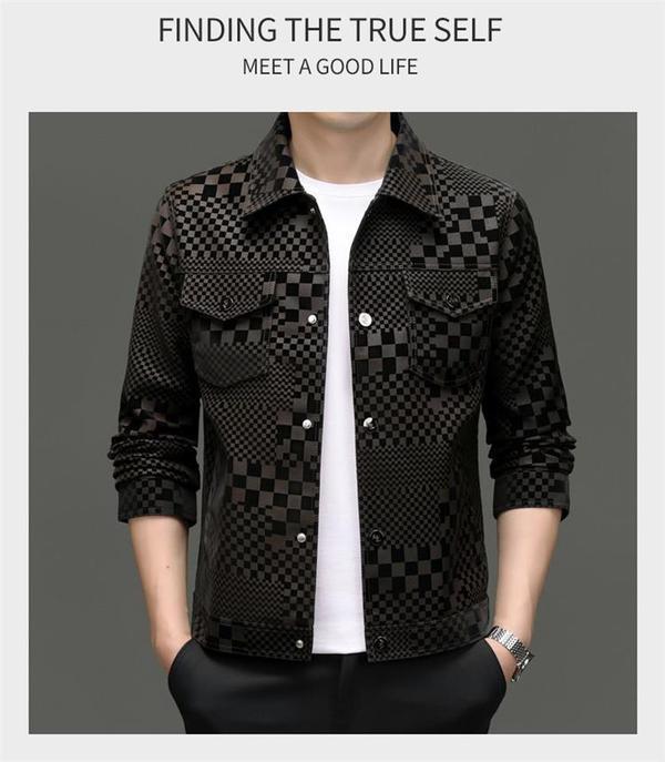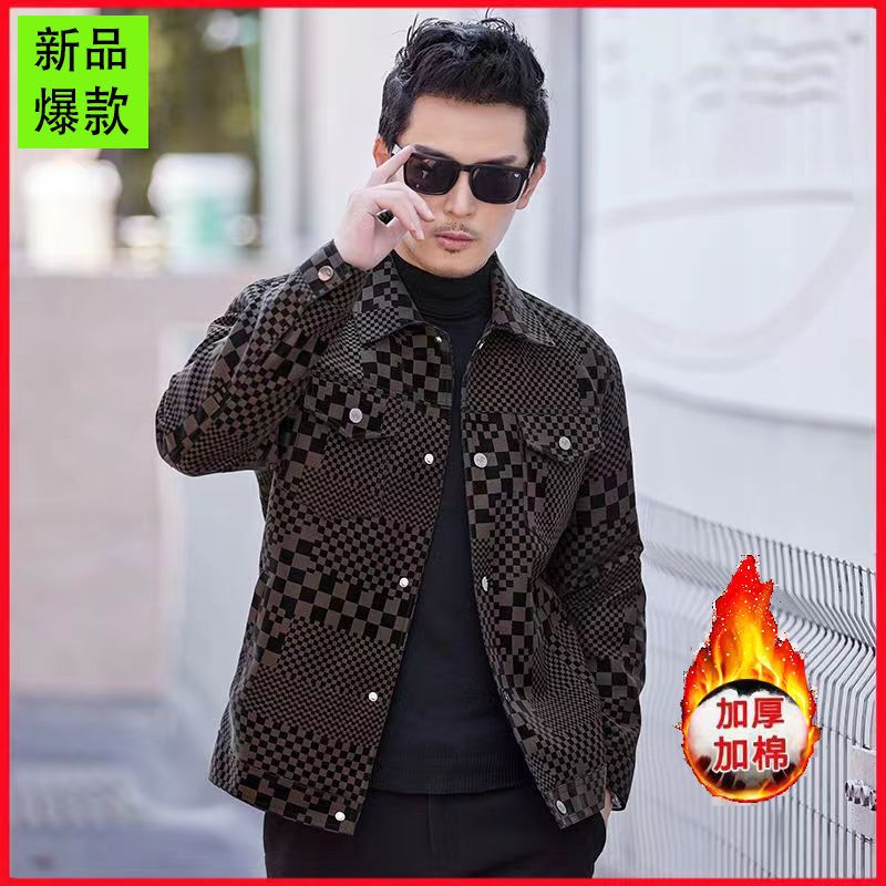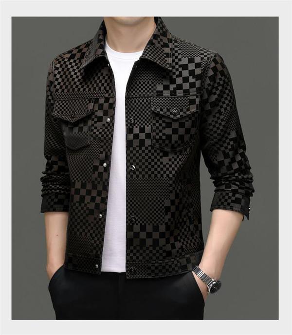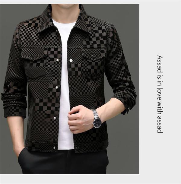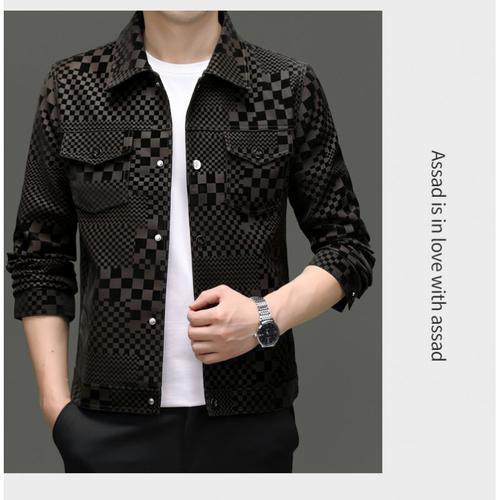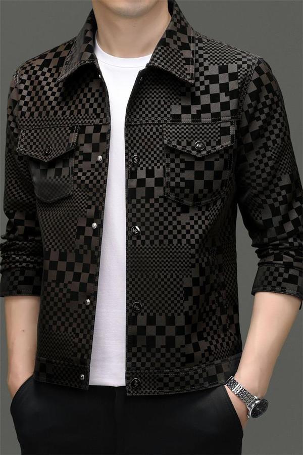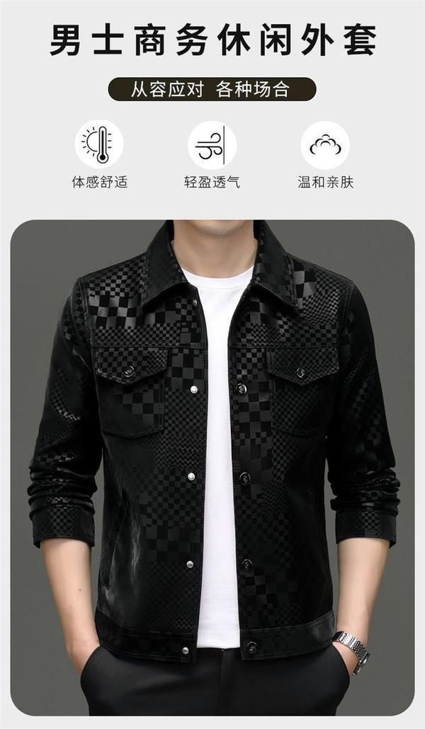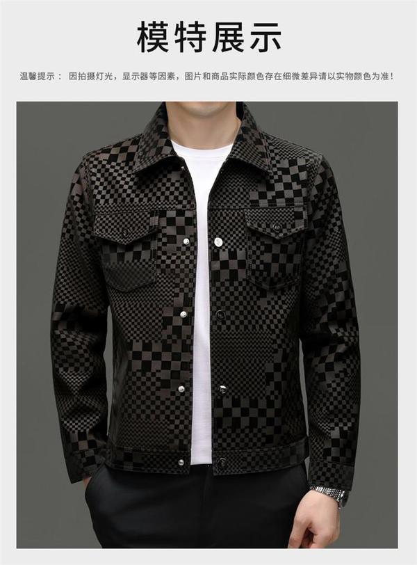 2024 가을과 겨울 Haining 정말 좋은 가죽 짧은 옷깃 남성 재킷 청소년 슬림 핏 얇은 체크 무늬 가죽 재킷스토어 가기