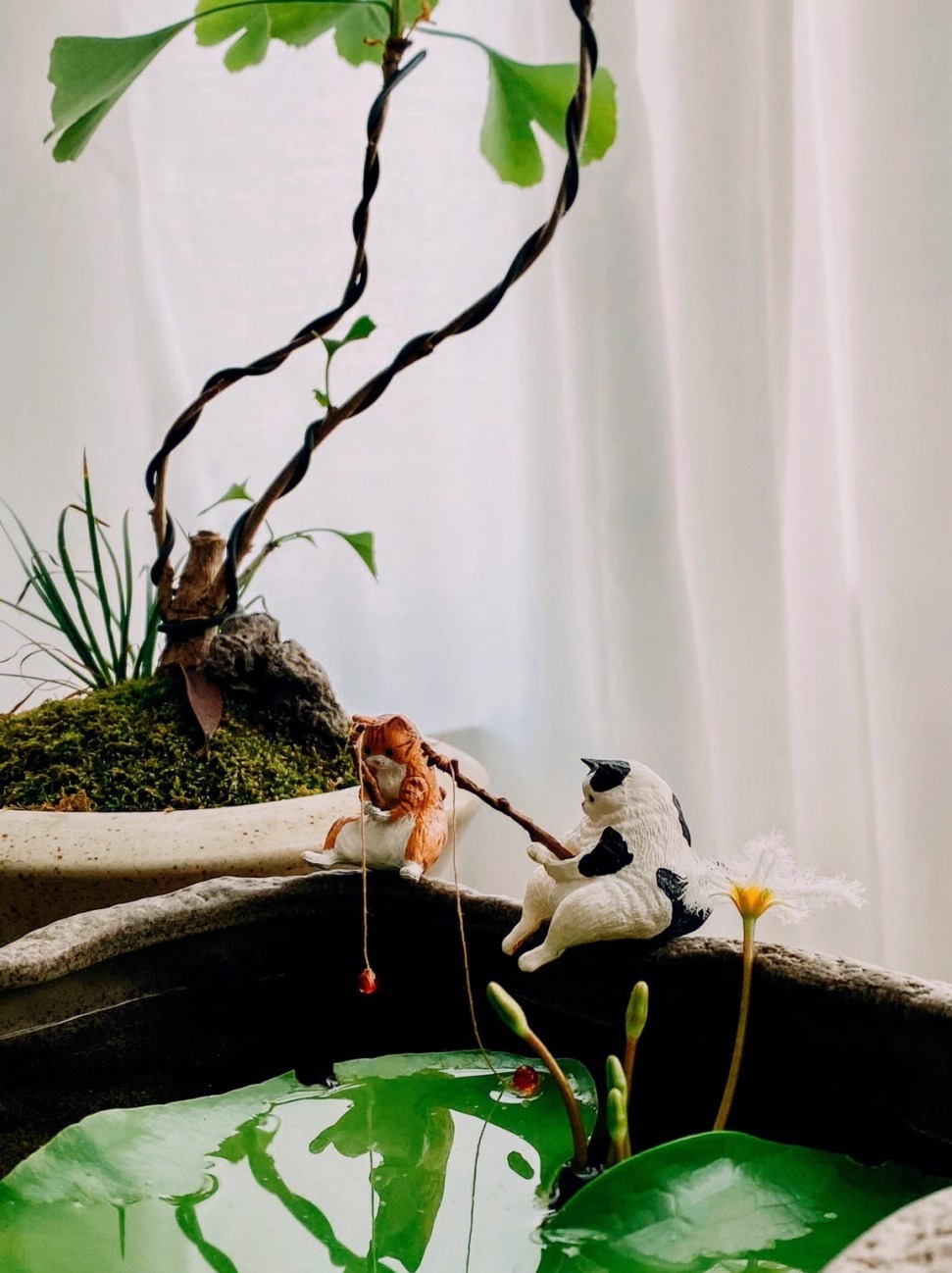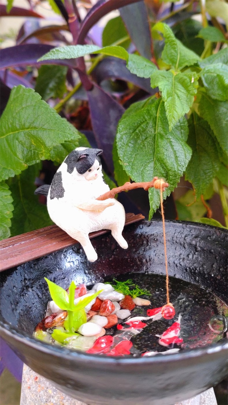 고양이 낚시 미니 마이크로 풍경 장식에 적합한 물고기 탱크 낚시 고양이 교수형 창조적 인 조경 장식품 데스크탑