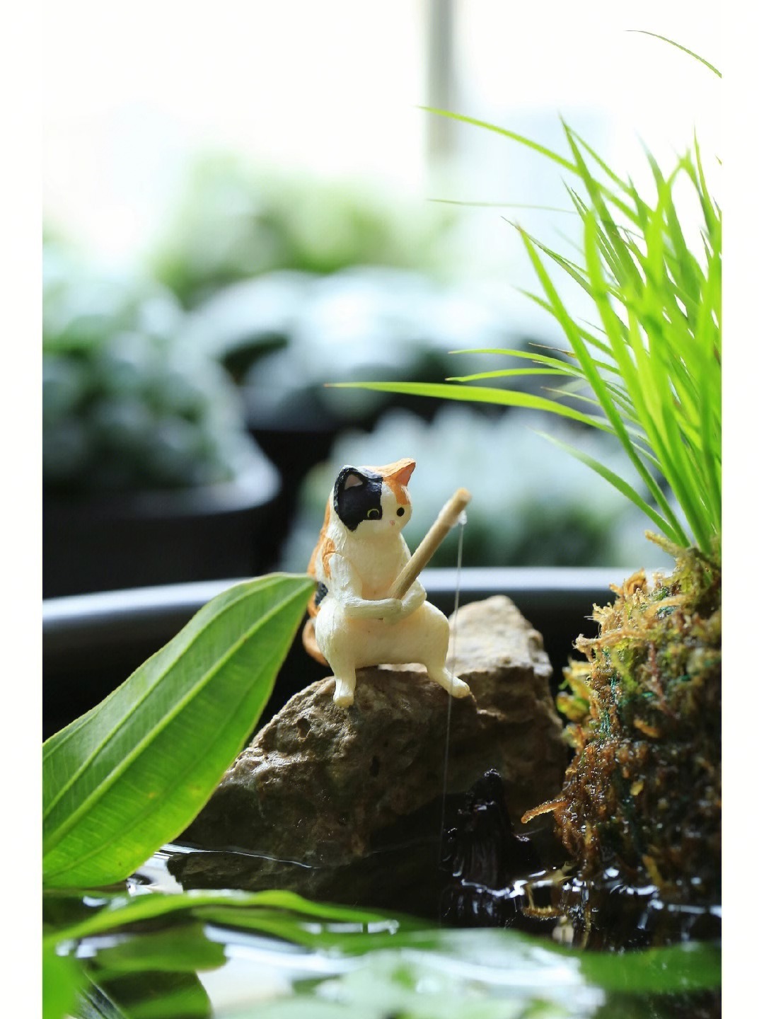 고양이 낚시 미니 마이크로 풍경 장식에 적합한 물고기 탱크 낚시 고양이 교수형 창조적 인 조경 장식품 데스크탑스토어 가기