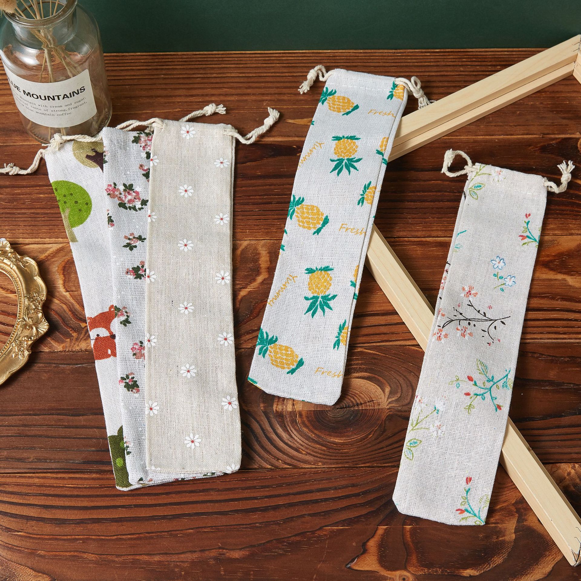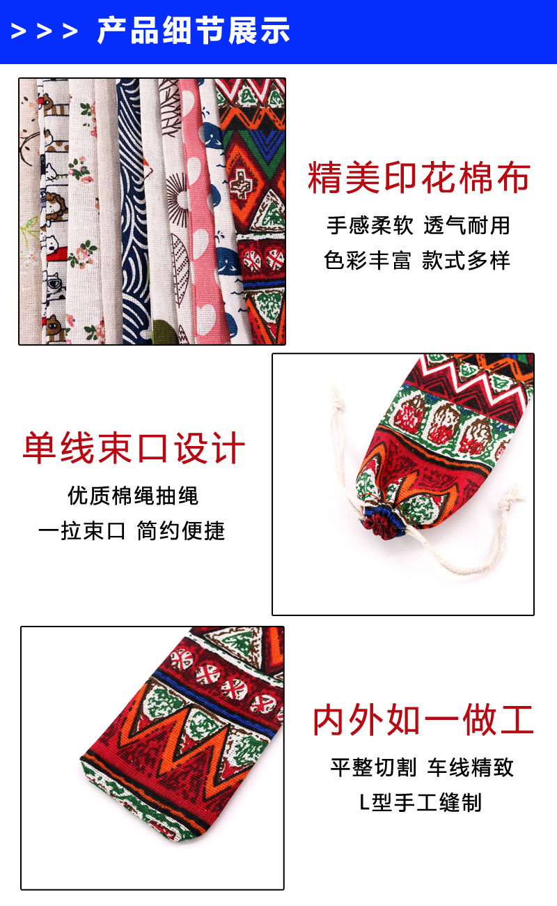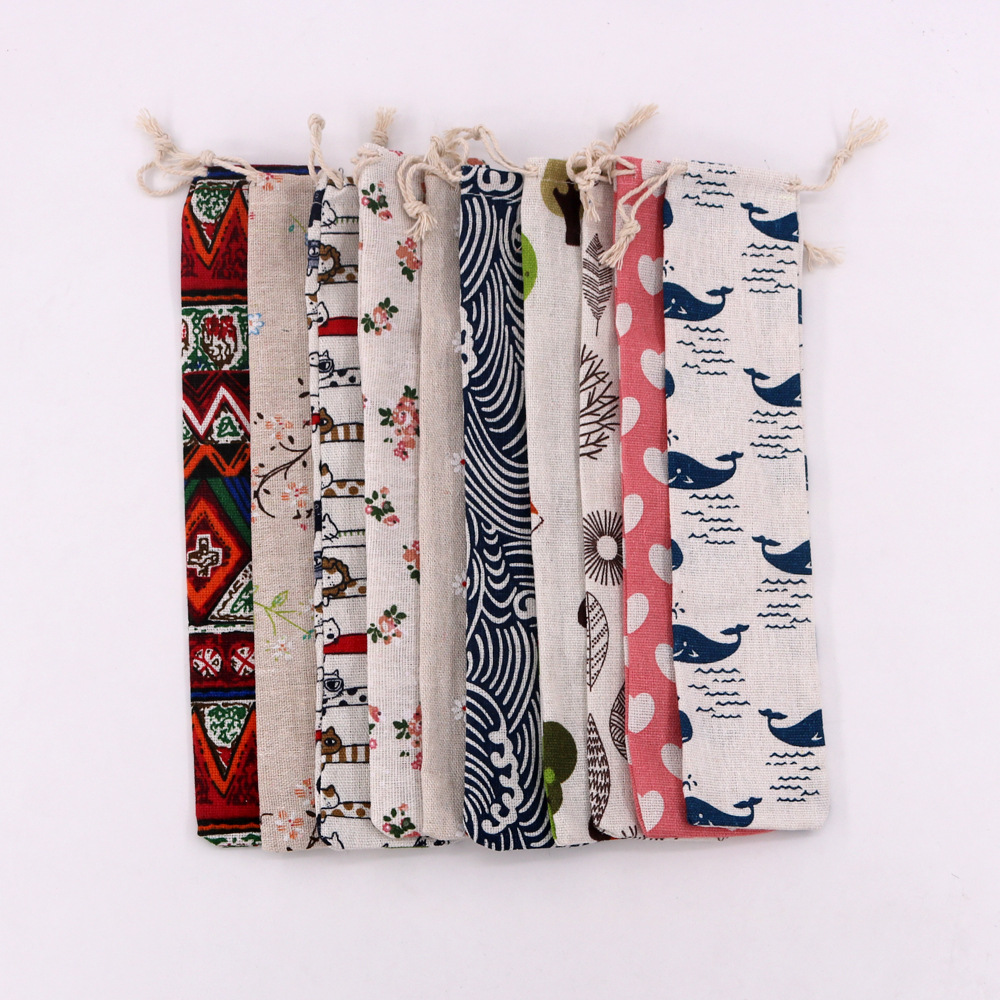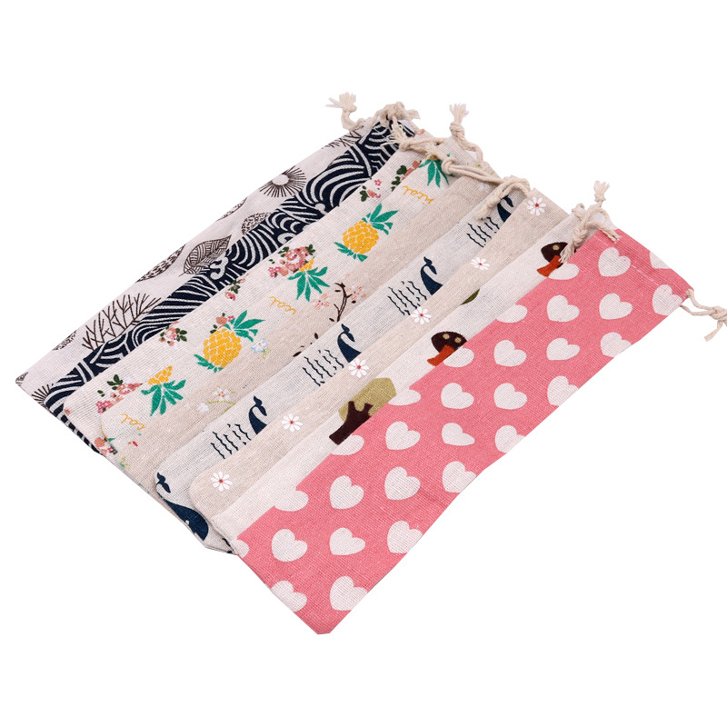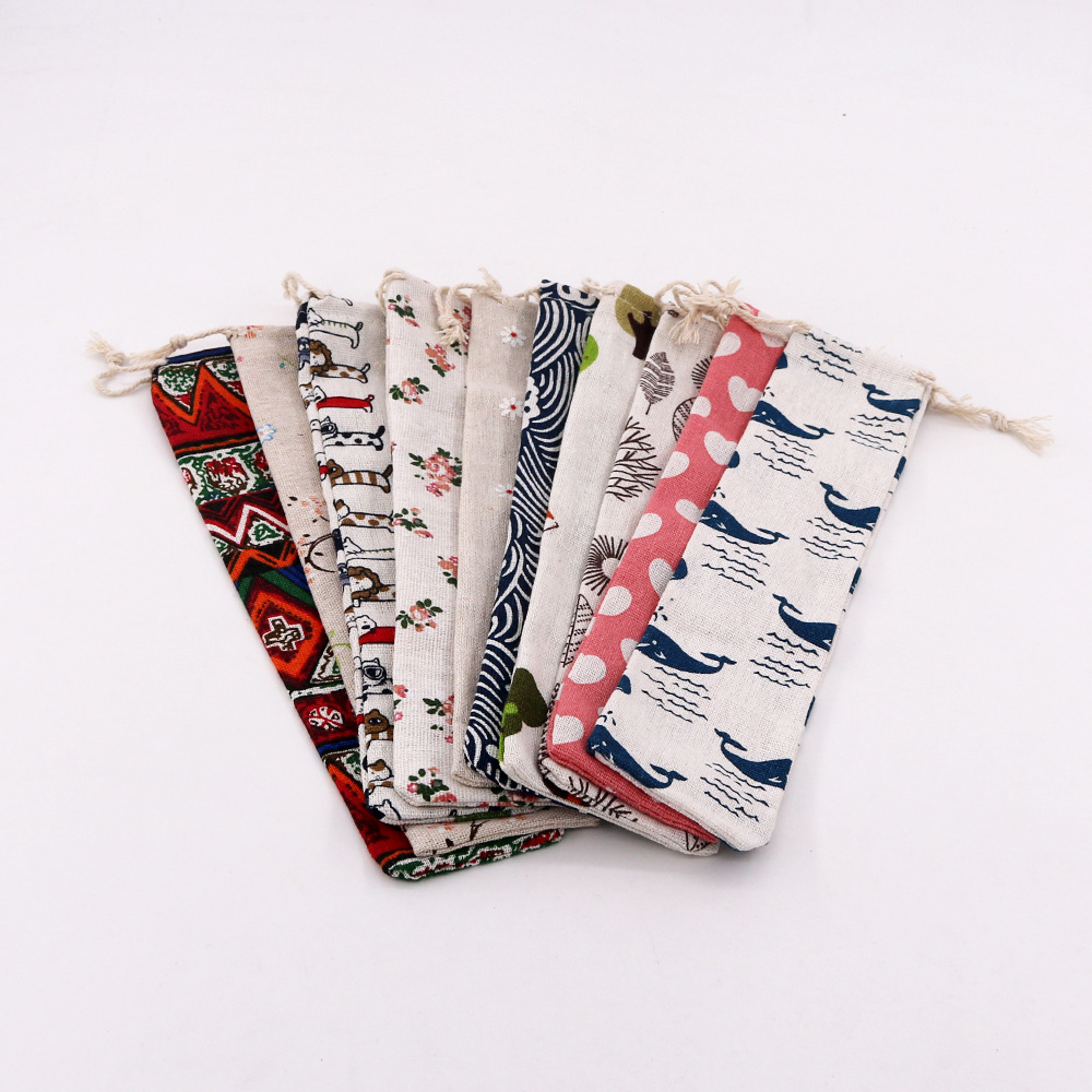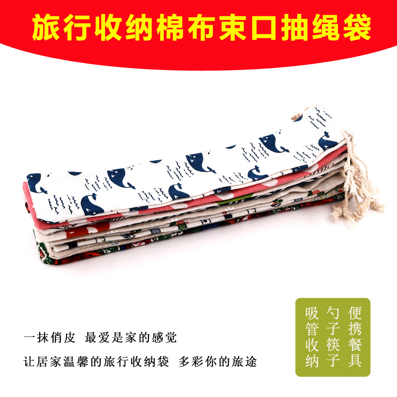 재고 긴 스트립 드로스트링 면직물 가방 식기 포장 보관 가방 젓가락 숟가락 방진 보관 가방 도매스토어 가기