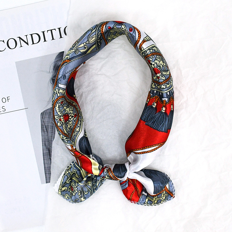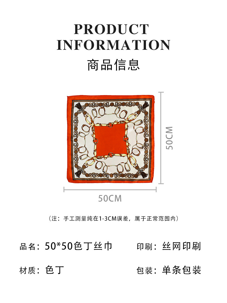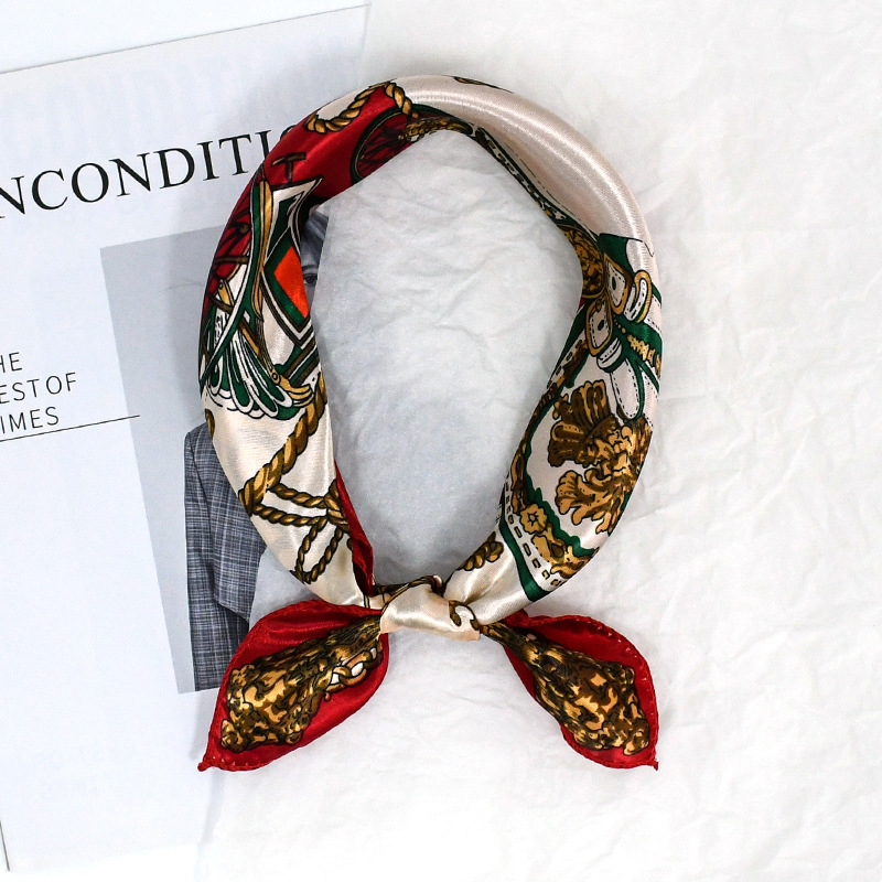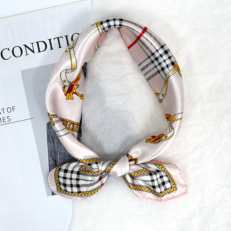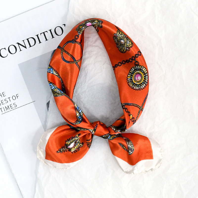 50 새틴 체인 프린트 스퀘어 스카프 컬러 하이 엔드 패션 올 매치 전문 스튜어디스 고객 서비스 장식 스카프 실크 스카프