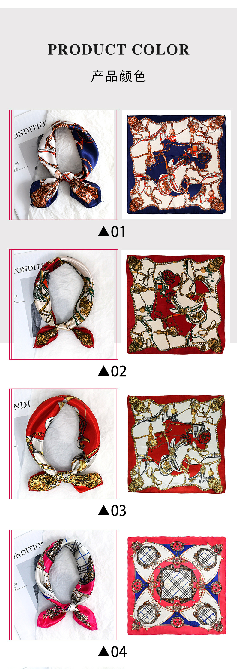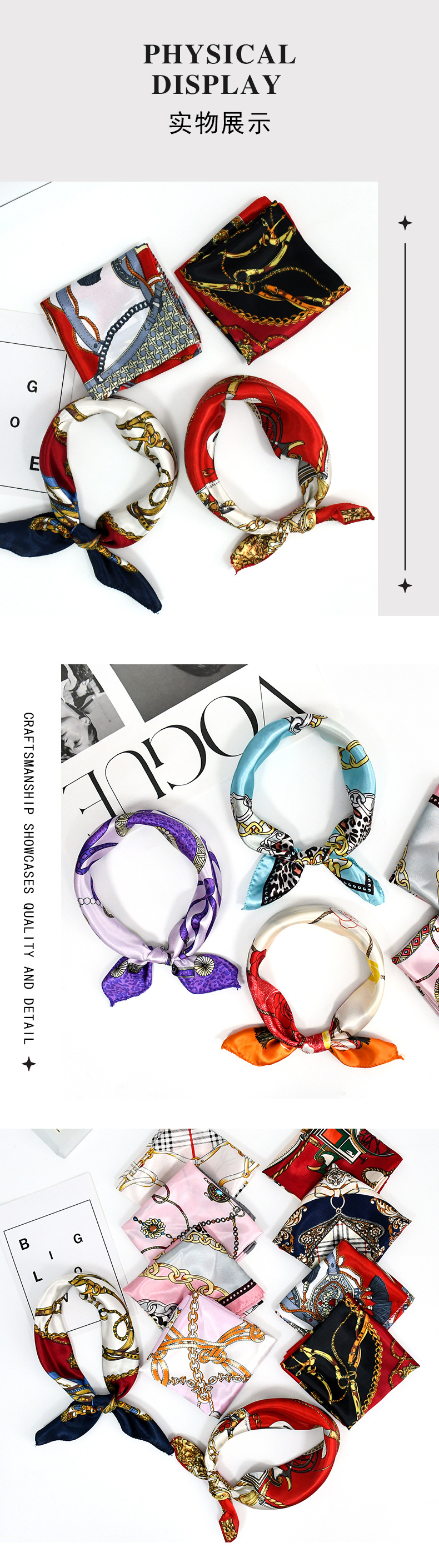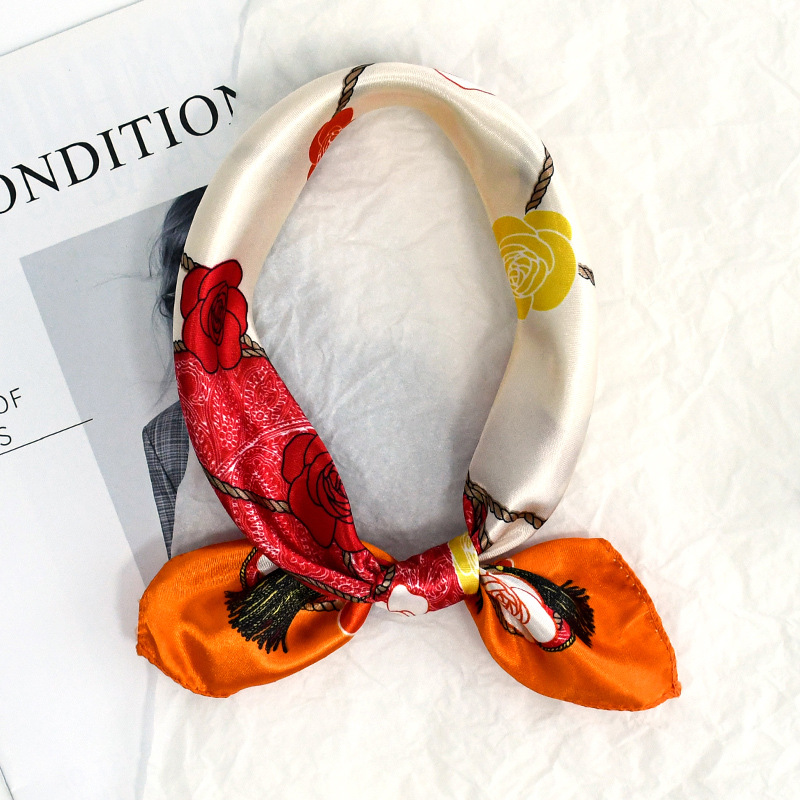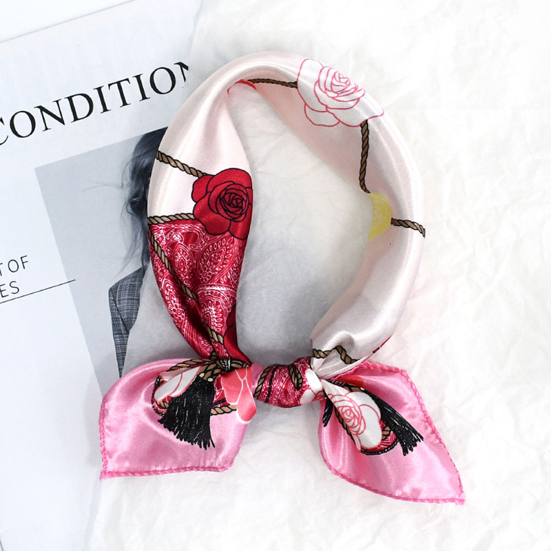 50 새틴 체인 프린트 스퀘어 스카프 컬러 하이 엔드 패션 올 매치 전문 스튜어디스 고객 서비스 장식 스카프 실크 스카프