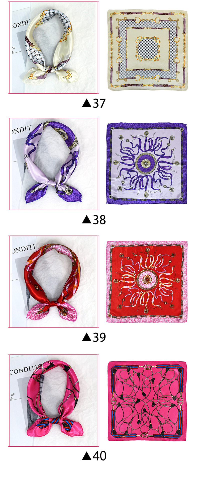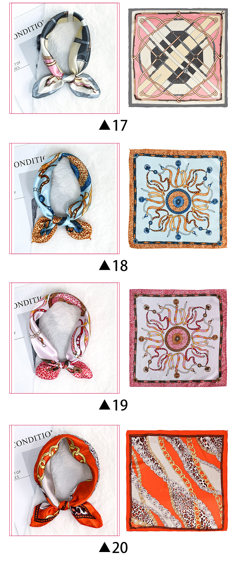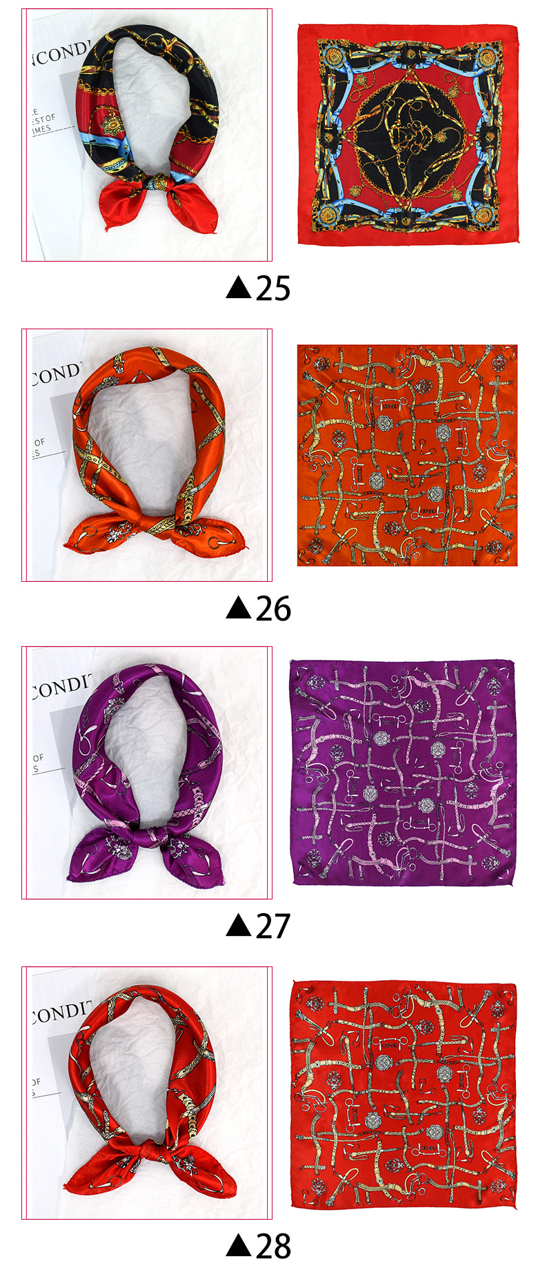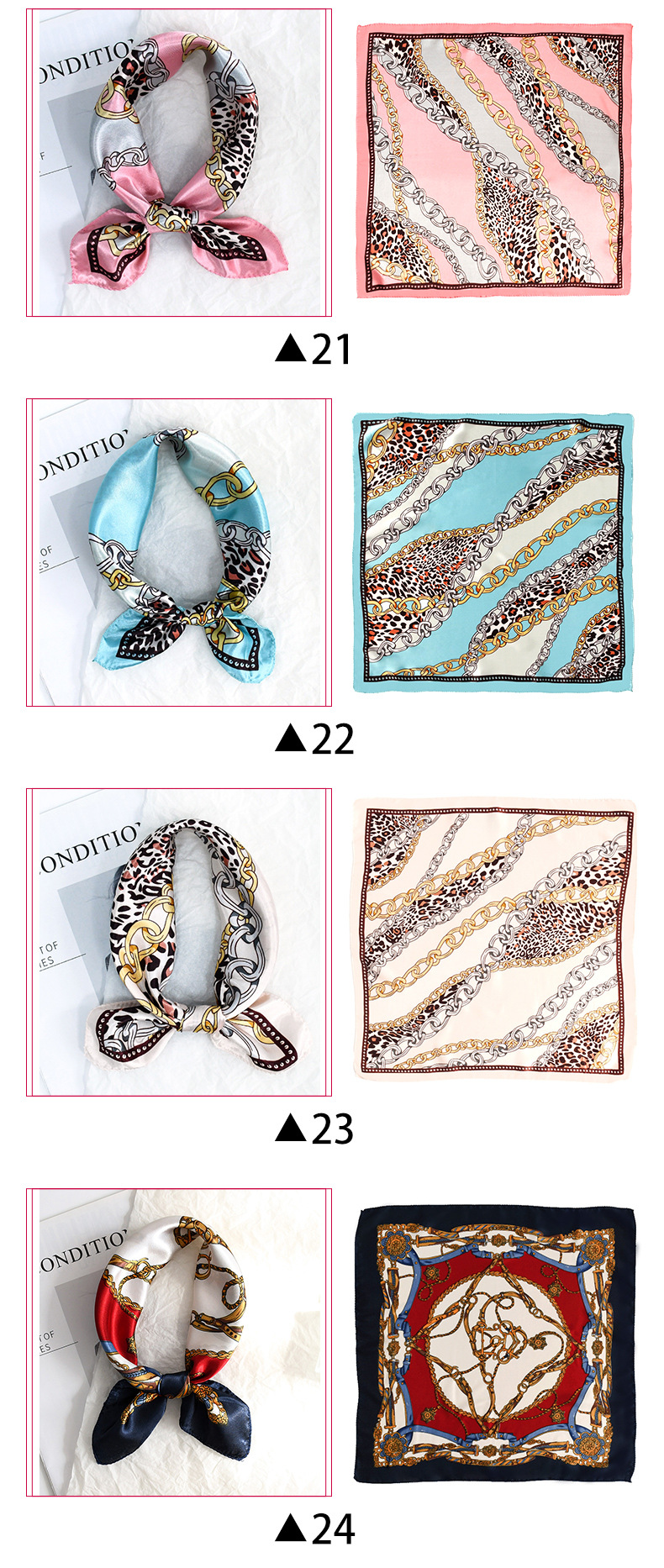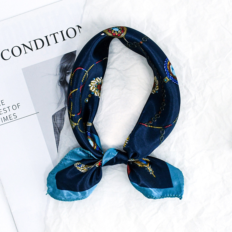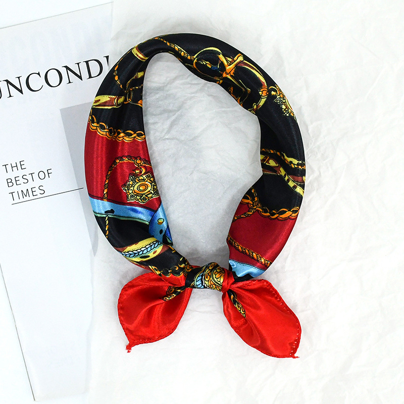 50 새틴 체인 프린트 스퀘어 스카프 컬러 하이 엔드 패션 올 매치 전문 스튜어디스 고객 서비스 장식 스카프 실크 스카프스토어 가기