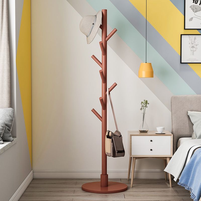 단단한 나무 코트 랙 바닥 거실 옷 교수형 가방 랙 가정용 침실 간단한 인터넷 빨간 나무 포크 옷 보관 랙