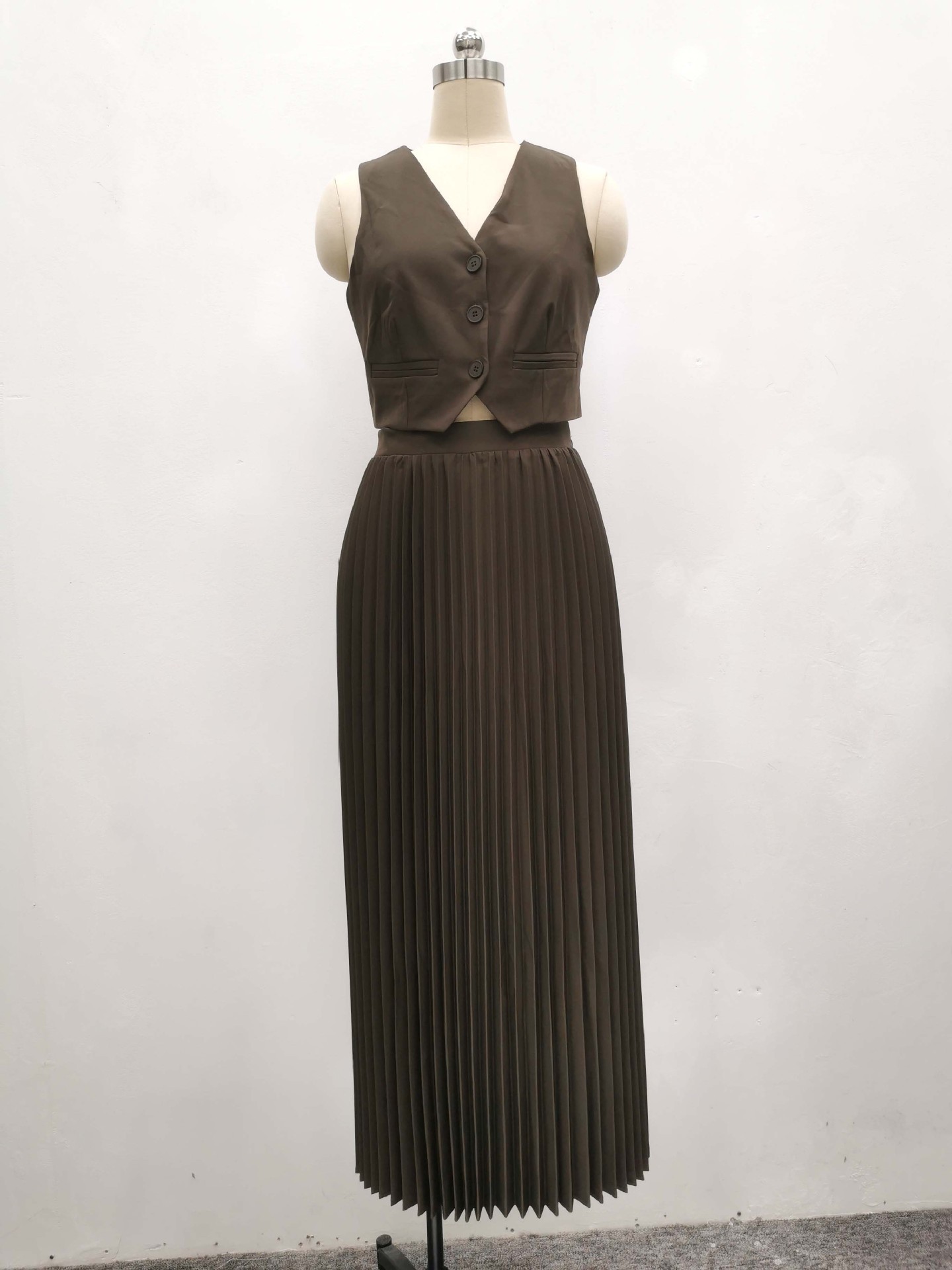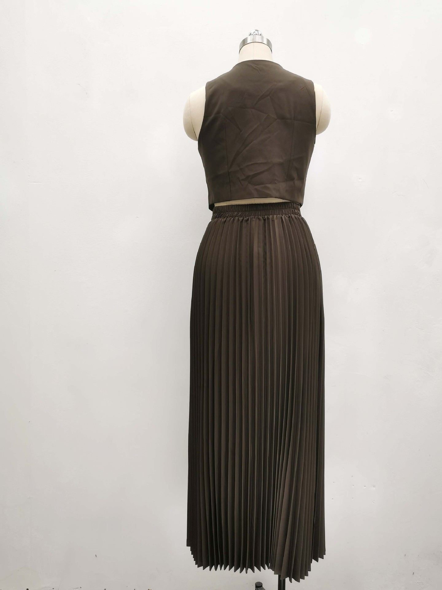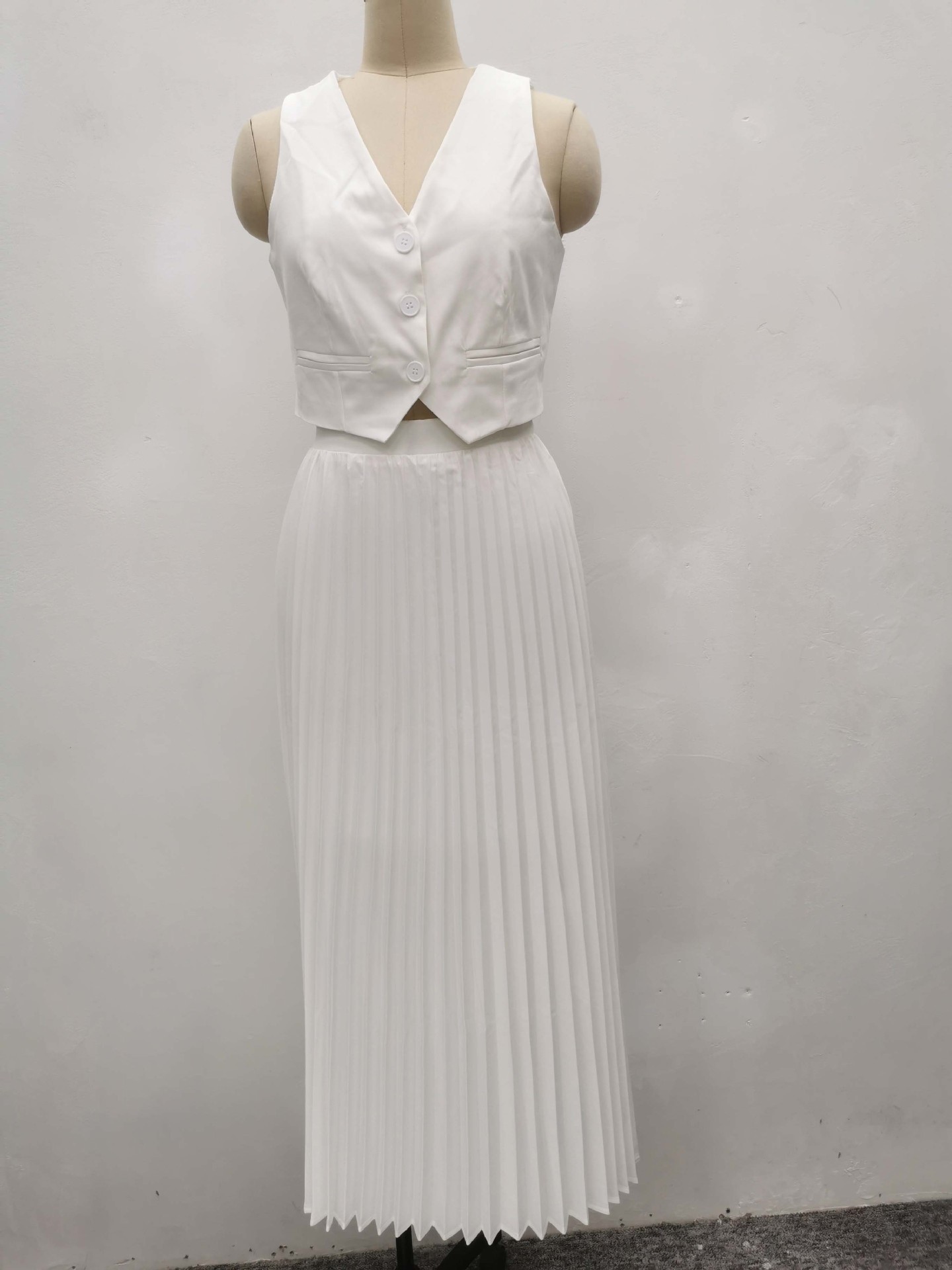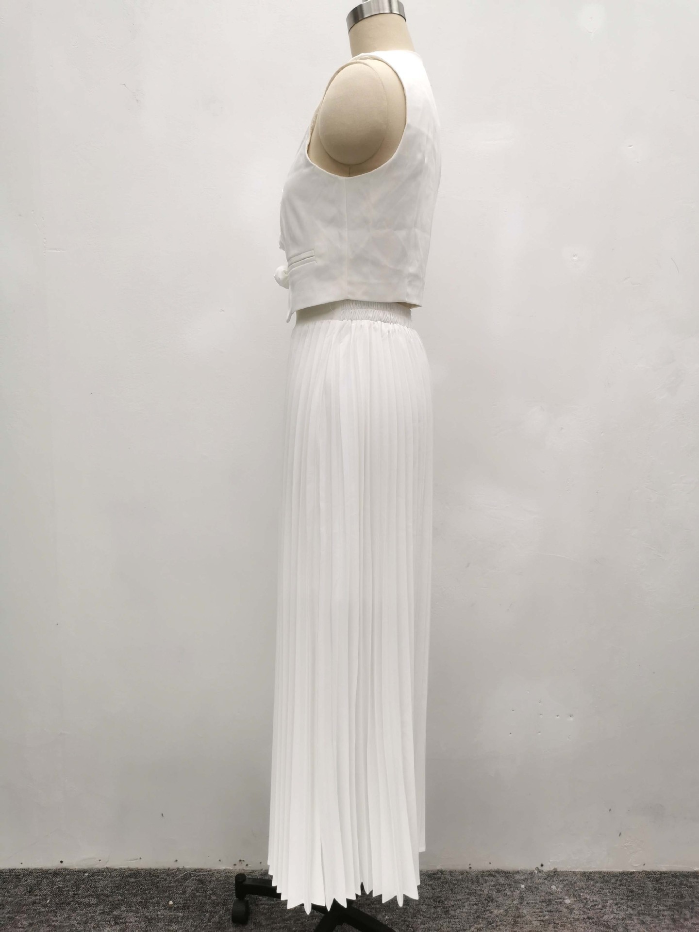 2025년 아프리카 신상 여성 여름 민소매 조끼와 헤비듀티 플리츠 롱스커트 투피스 세트 (해외 무역용)