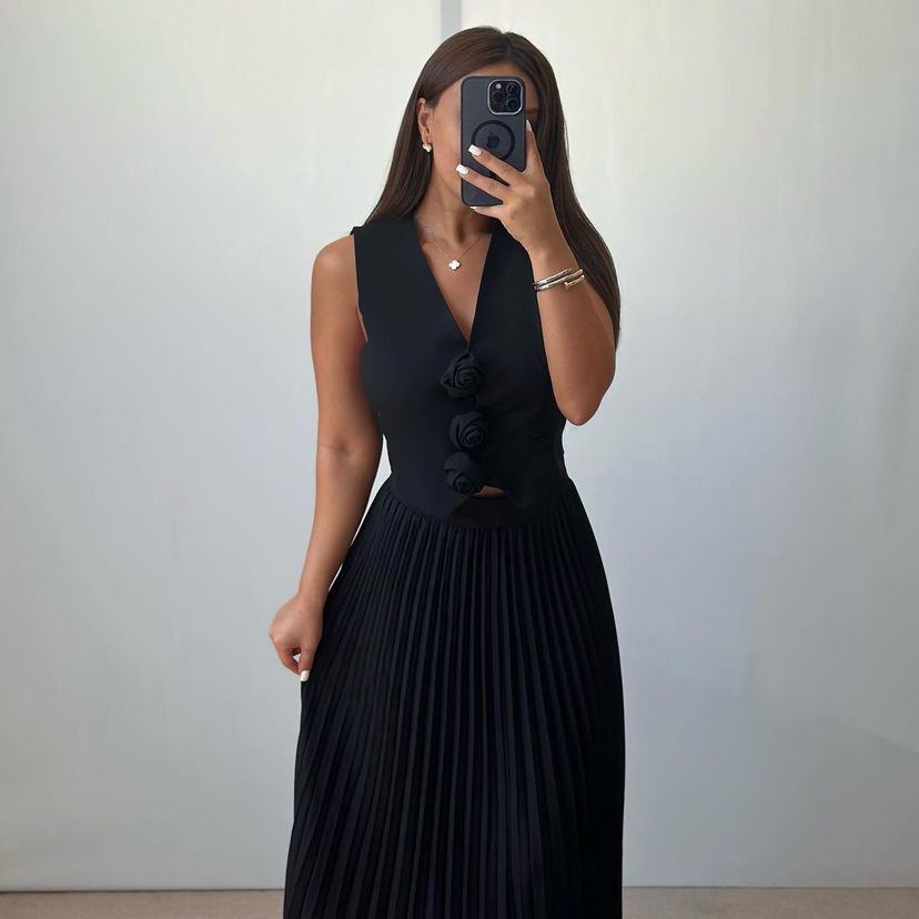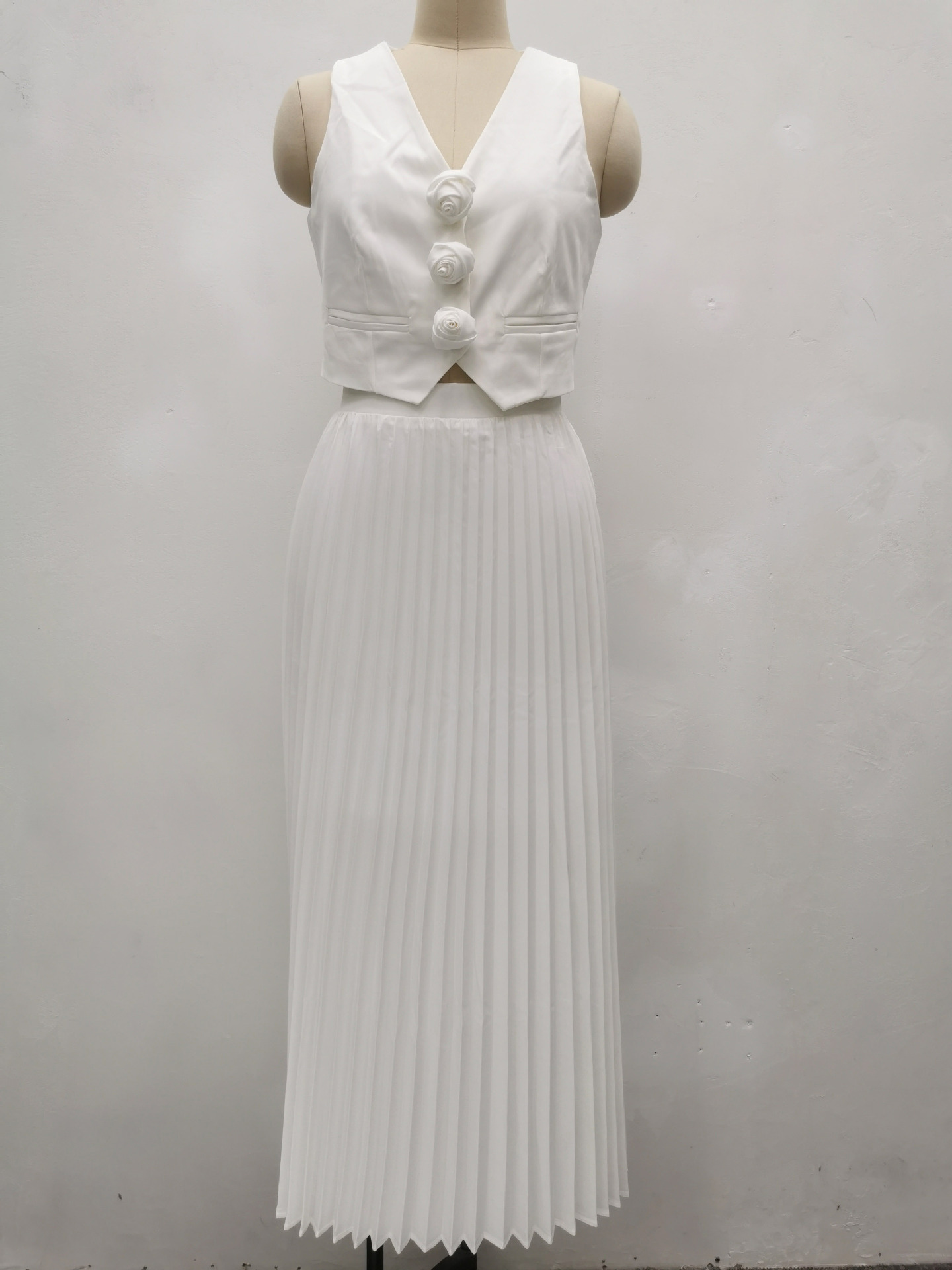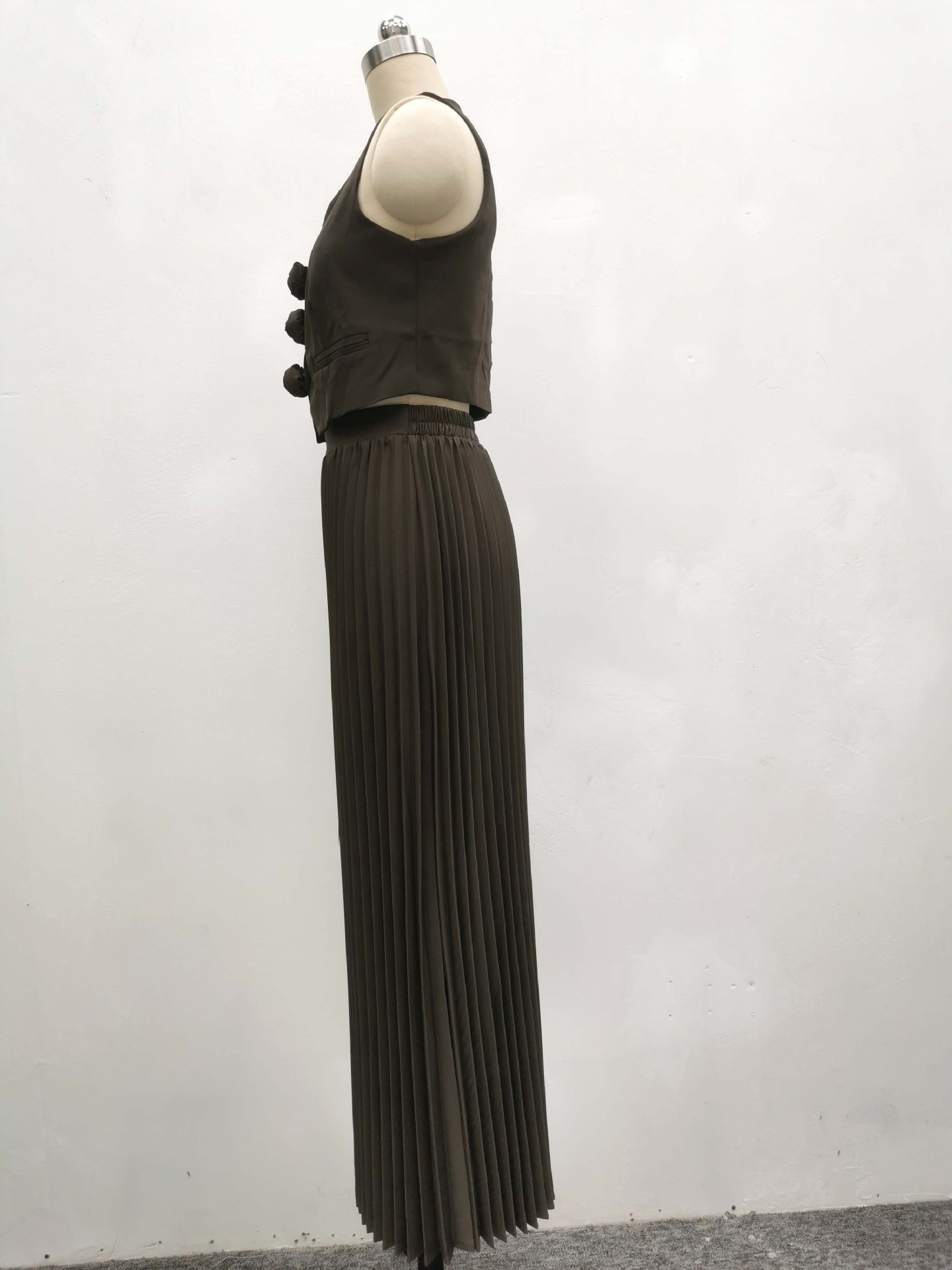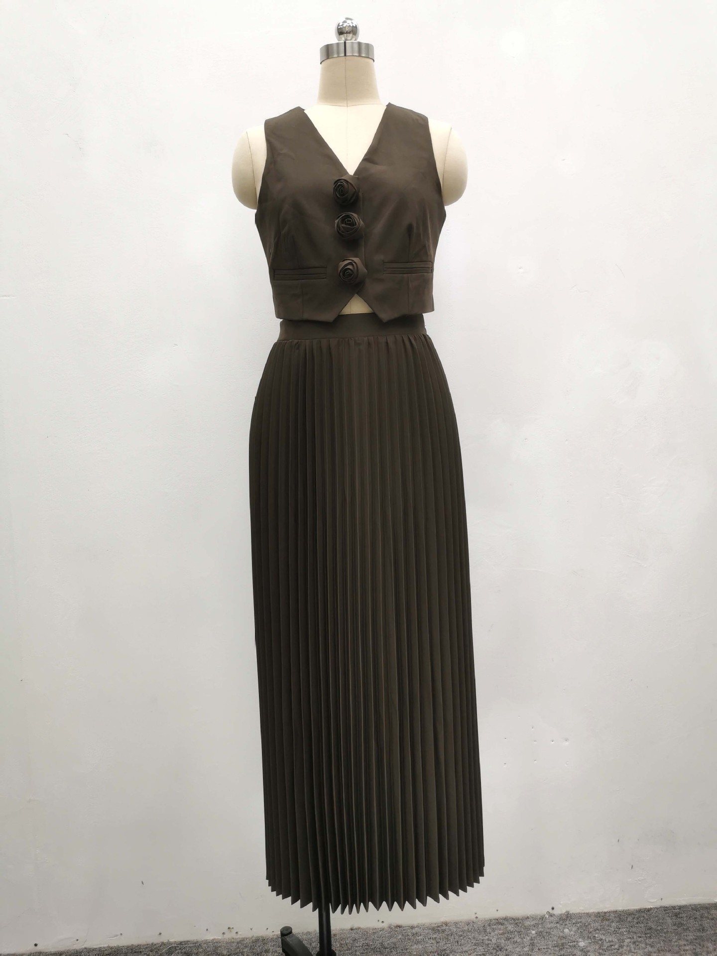 2025년 아프리카 신상 여성 여름 민소매 조끼와 헤비듀티 플리츠 롱스커트 투피스 세트 (해외 무역용)