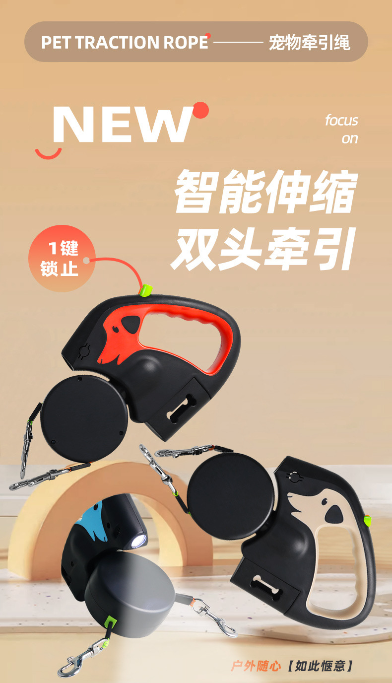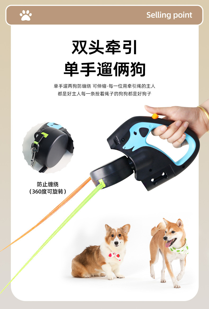 국경을 넘는 인기 애완동물 정원 가꾸기용 1대2 자동 리드줄 강아지 용품 중소형견 산책용 신축성 리드줄스토어 가기