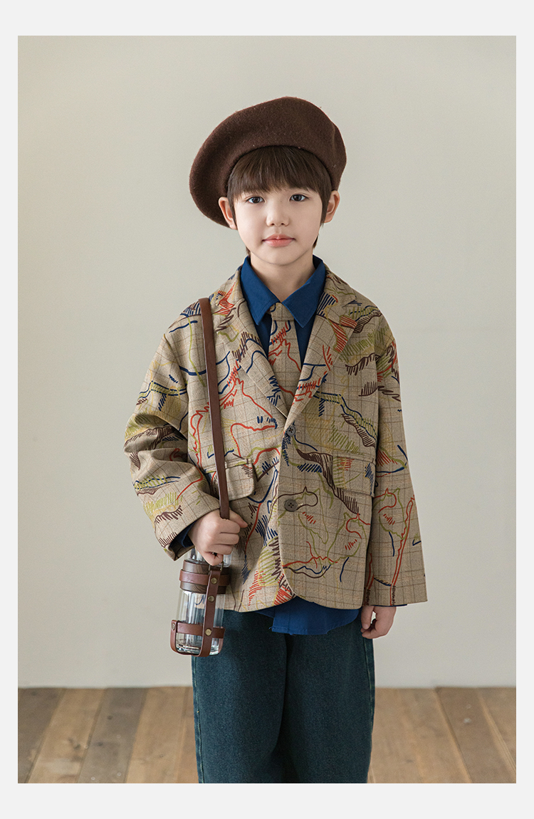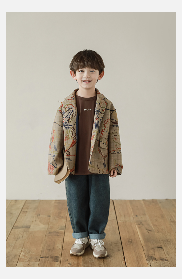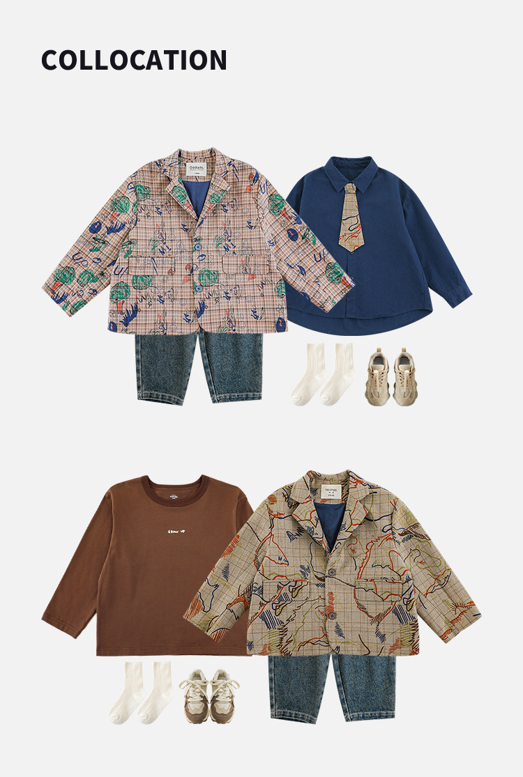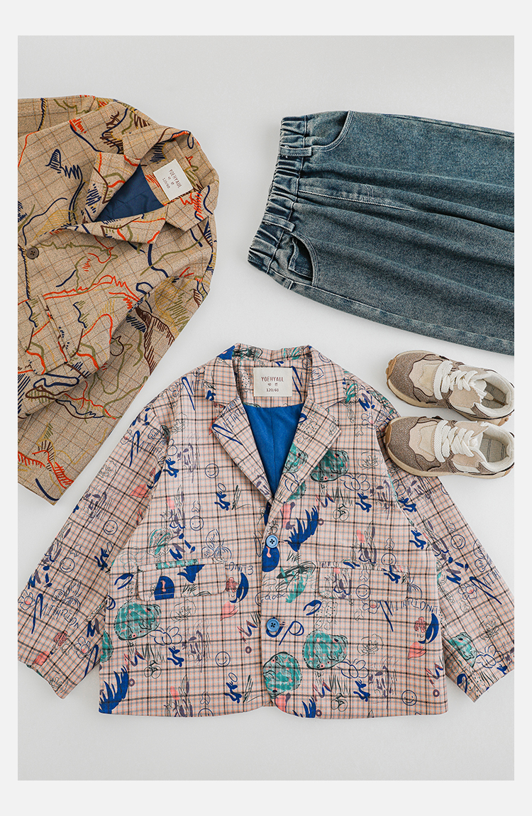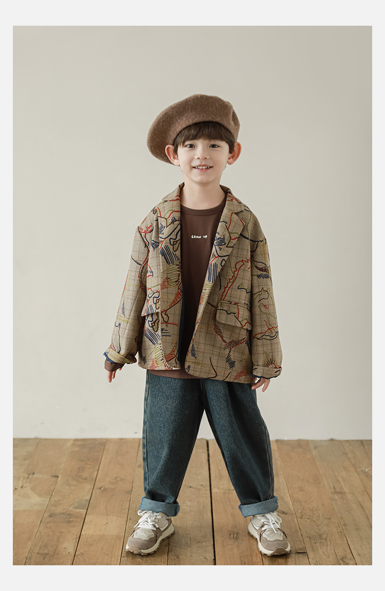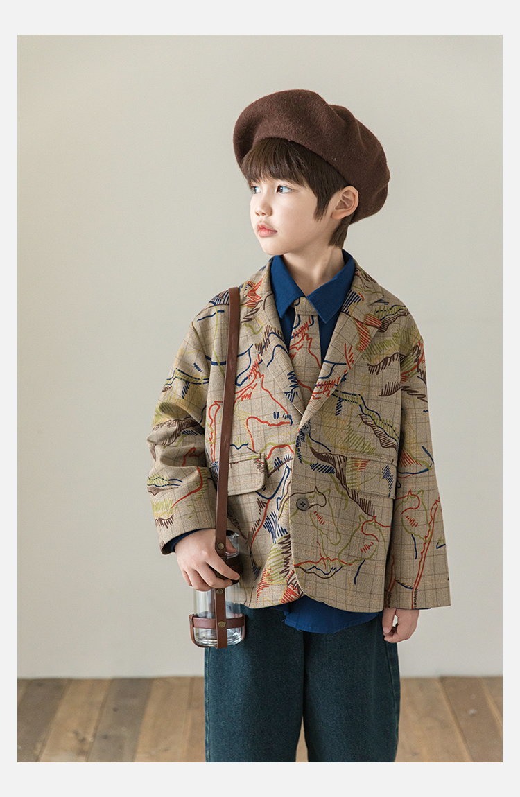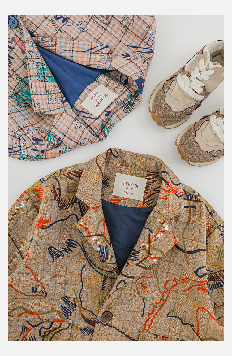 우립 소년 2024 새로운 낙서 인쇄 세트 재킷 가을 패션 브랜드 편안한 잘 생긴 재킷