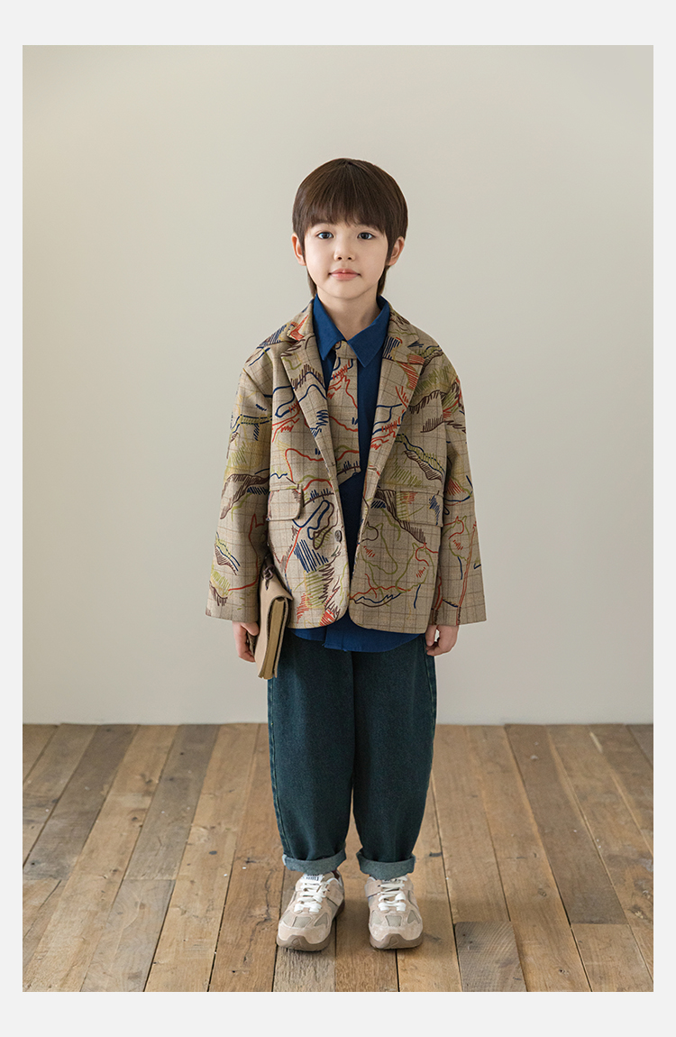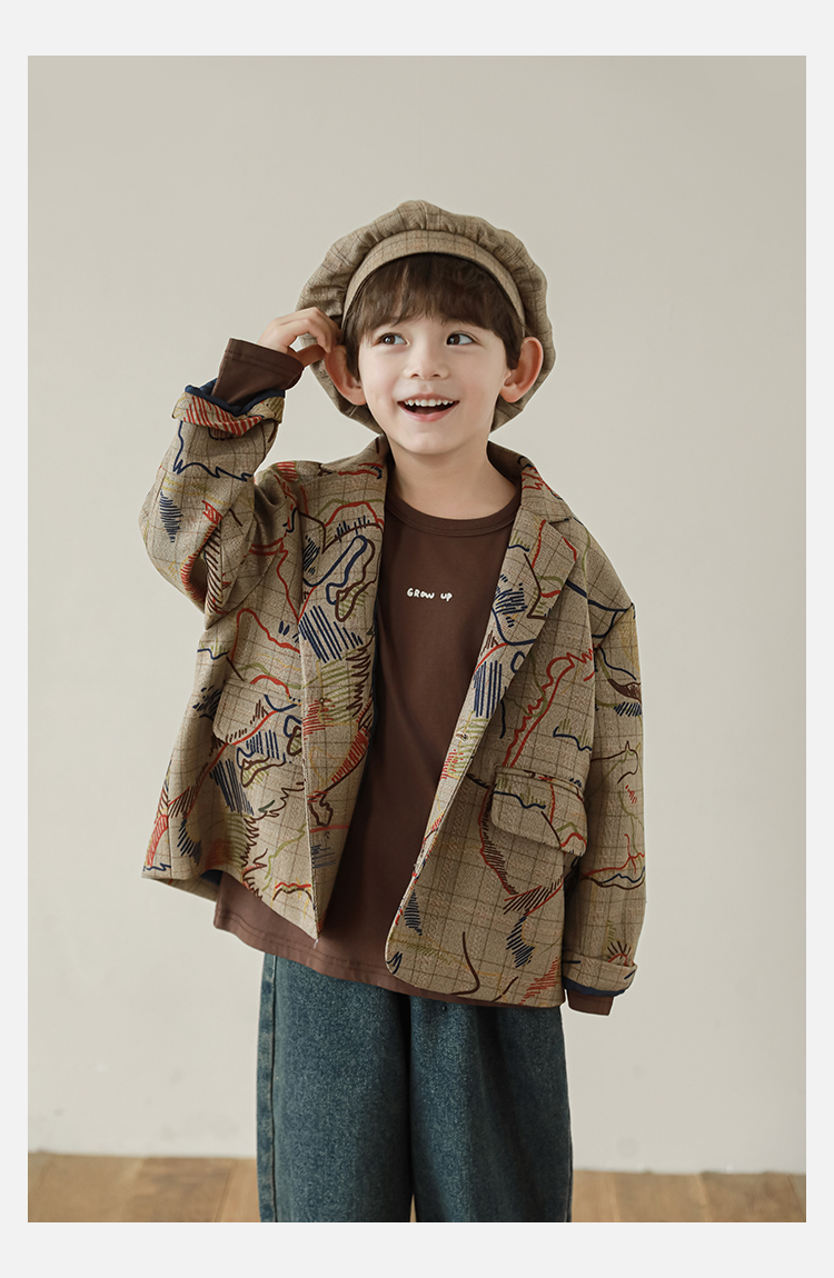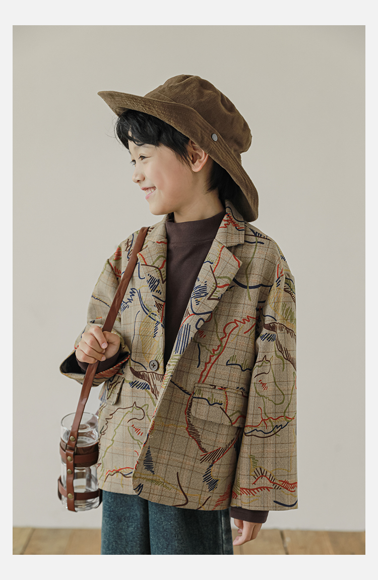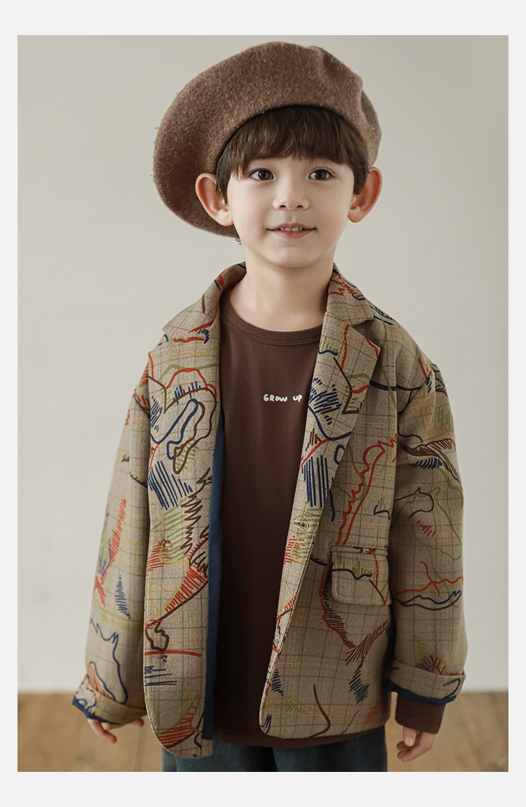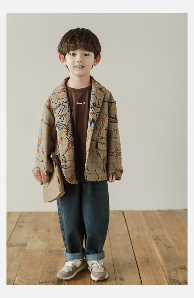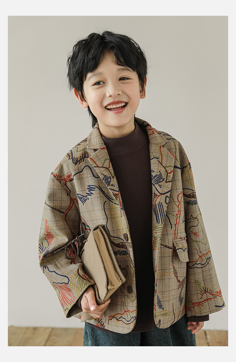 우립 소년 2024 새로운 낙서 인쇄 세트 재킷 가을 패션 브랜드 편안한 잘 생긴 재킷