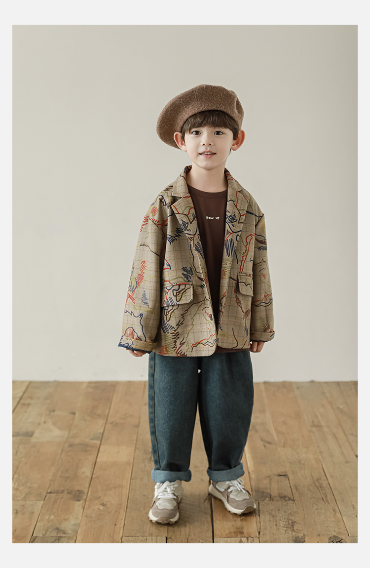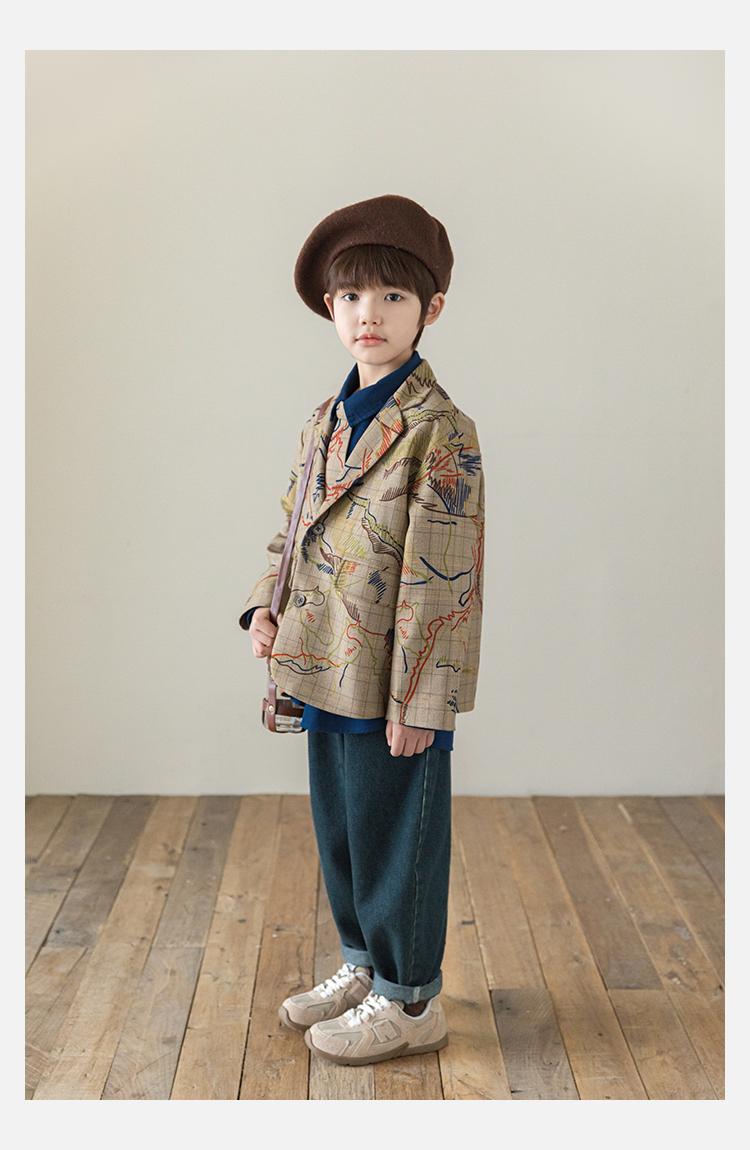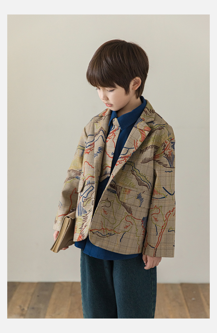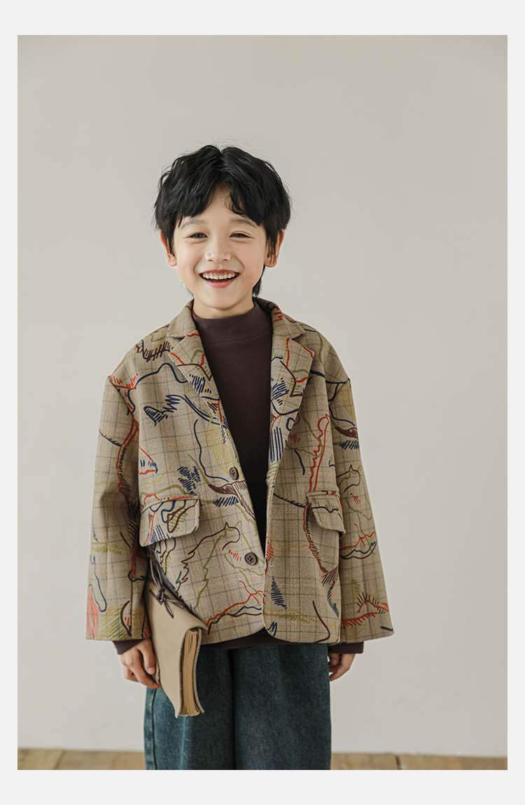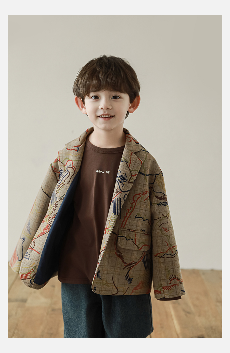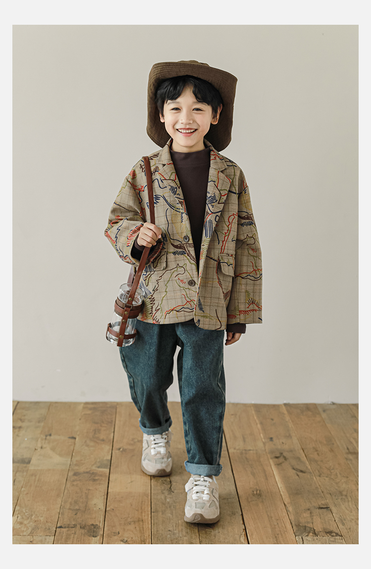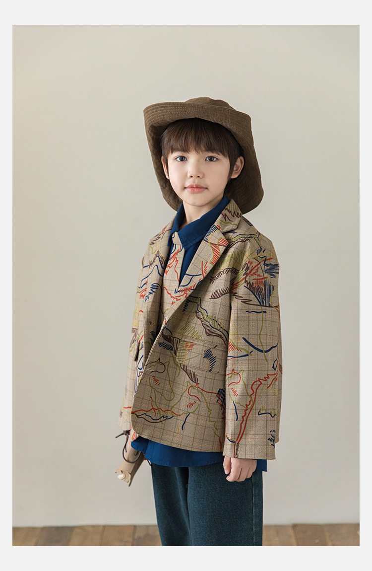 우립 소년 2024 새로운 낙서 인쇄 세트 재킷 가을 패션 브랜드 편안한 잘 생긴 재킷