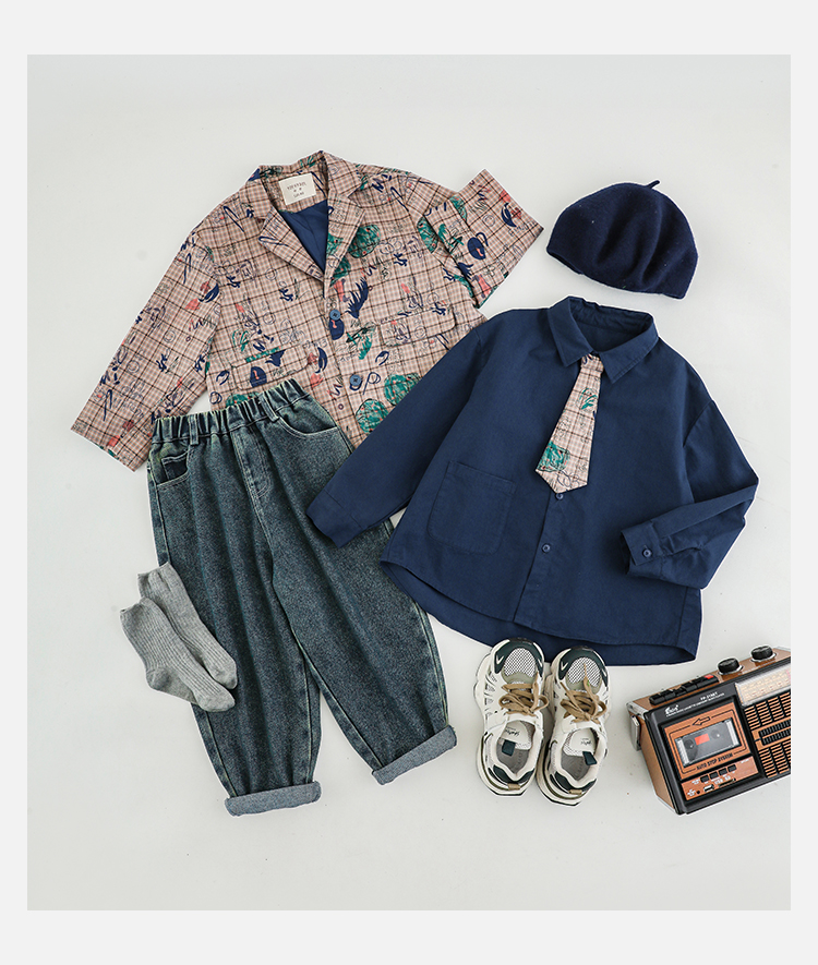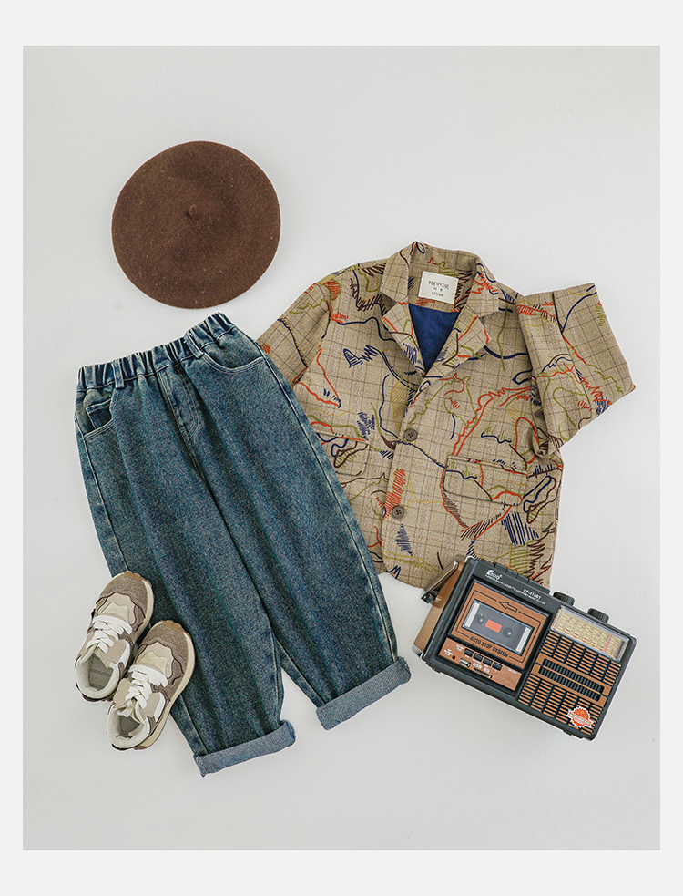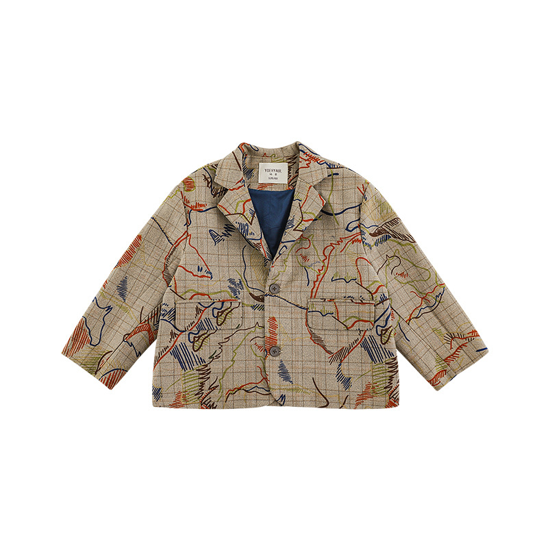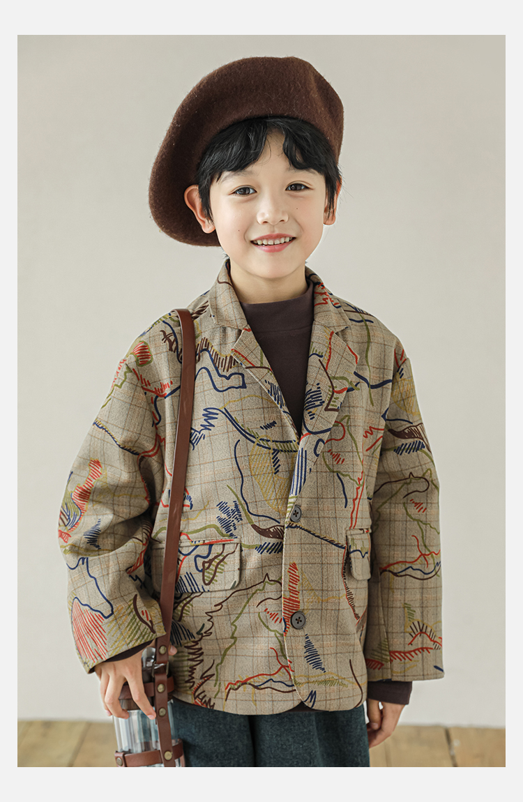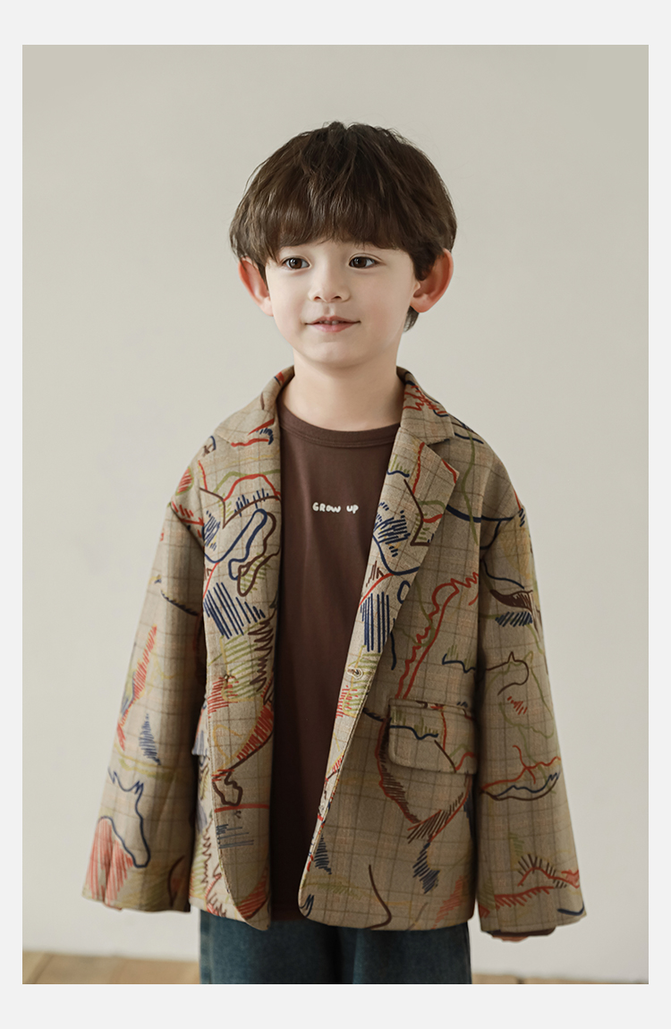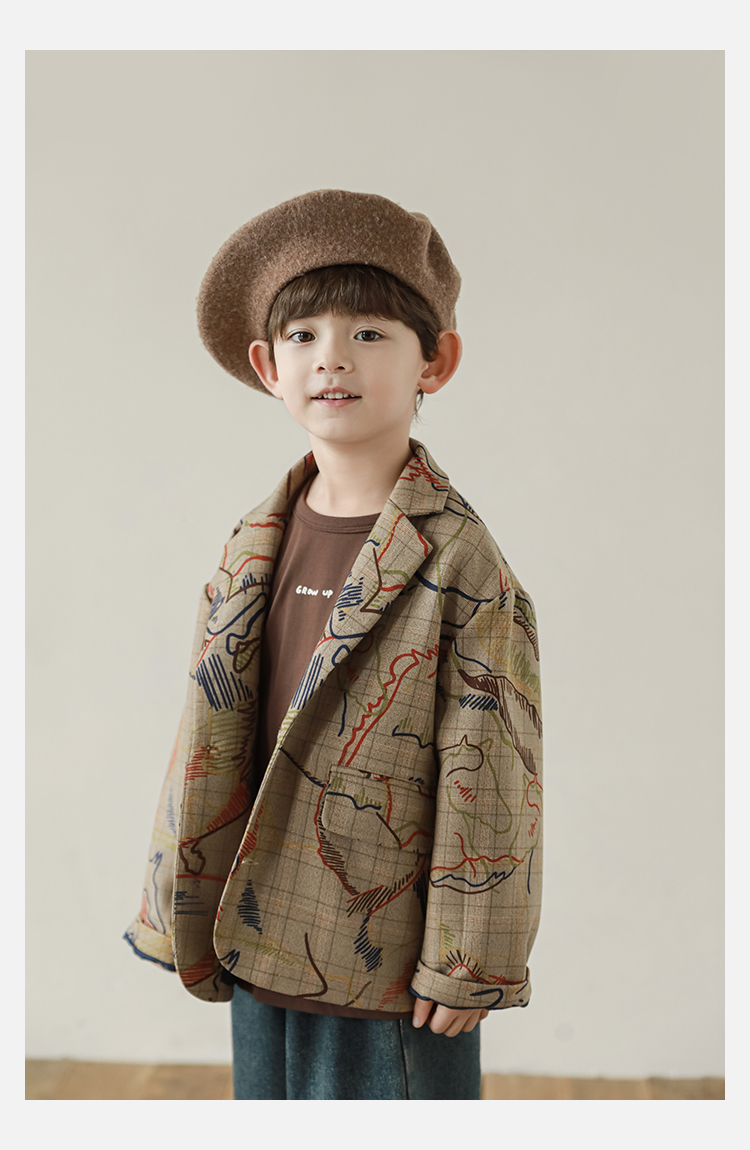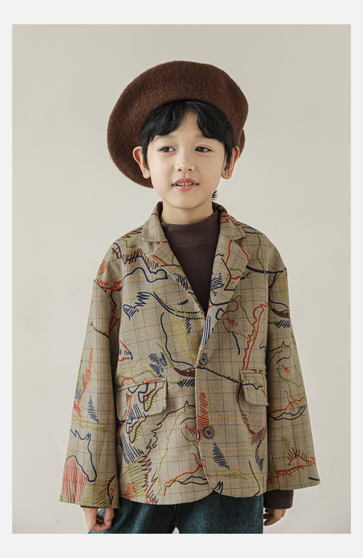 우립 소년 2024 새로운 낙서 인쇄 세트 재킷 가을 패션 브랜드 편안한 잘 생긴 재킷