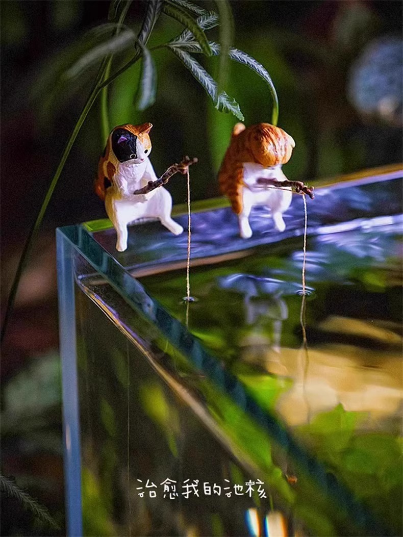 새끼 고양이 낚시 물고기 탱크 고양이 교수형 창조적 인 조경 장식품 데스크탑 특별 낚시 미니 장식 마이크로 풍경