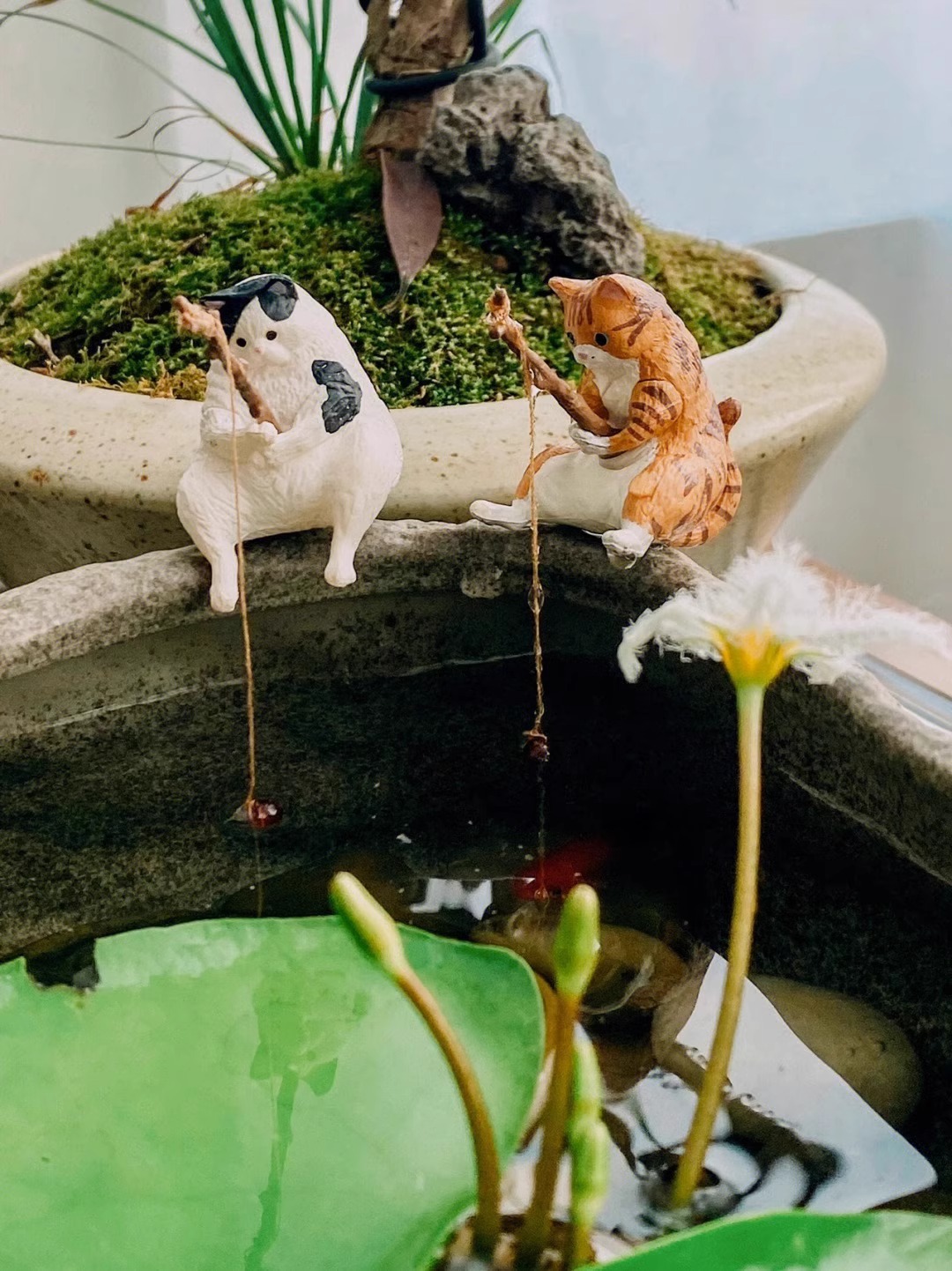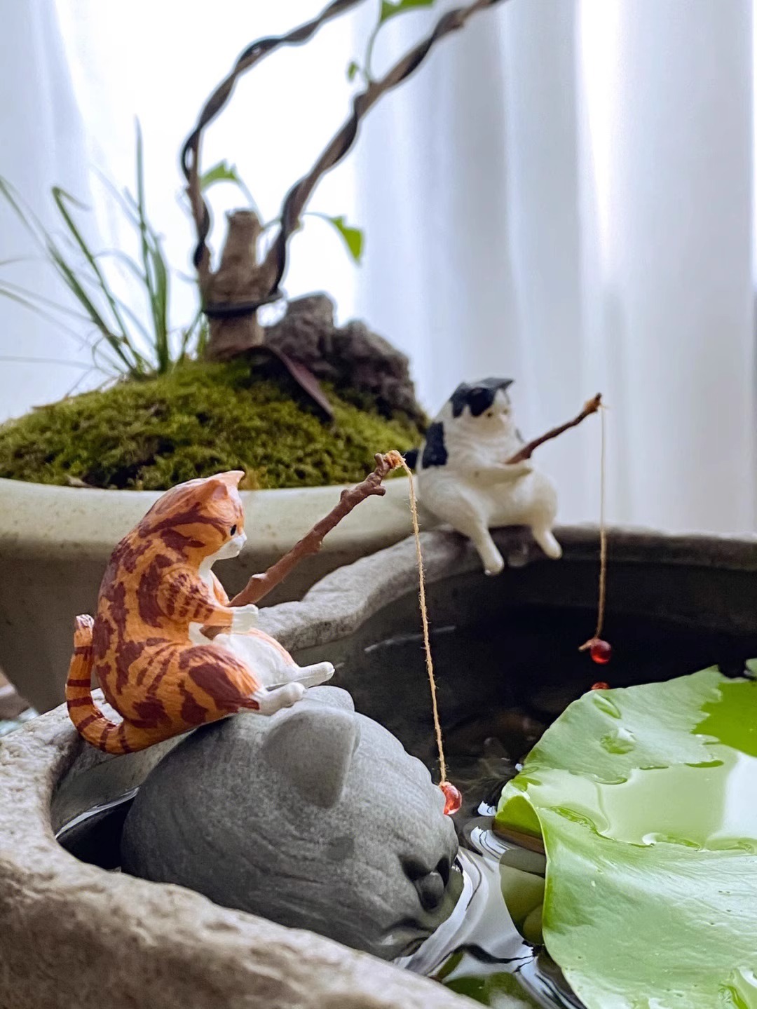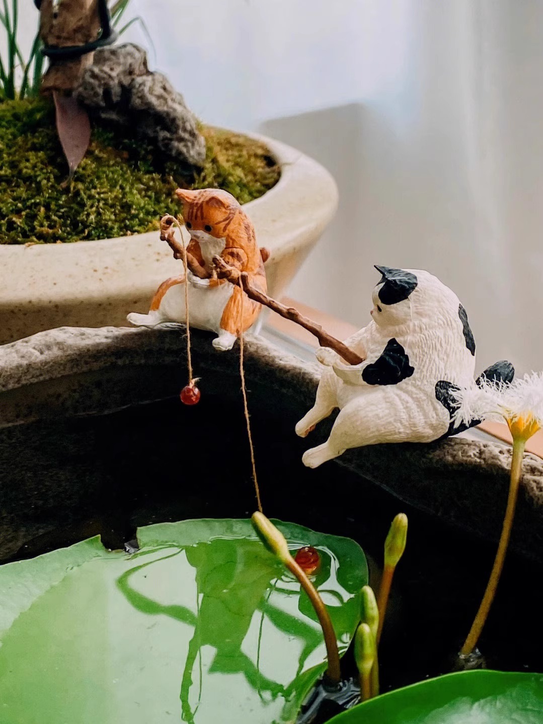 물고기 탱크 낚시 새끼 고양이 장식 탱크 측면 매달려 조경 작은 장식품 수족관 창조적 인 시뮬레이션 미니 마이크로 풍경스토어 가기