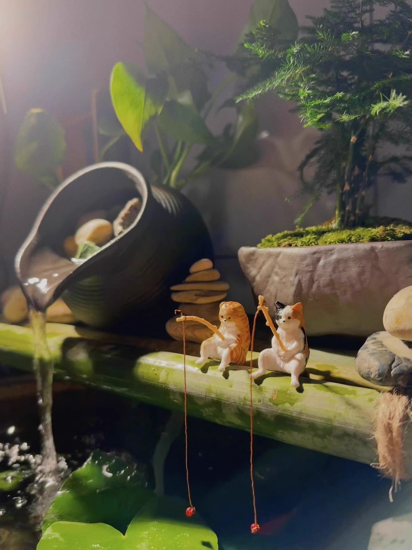 물고기 탱크 낚시 새끼 고양이 장식 탱크 측면 매달려 조경 작은 장식품 수족관 창조적 인 시뮬레이션 미니 마이크로 풍경