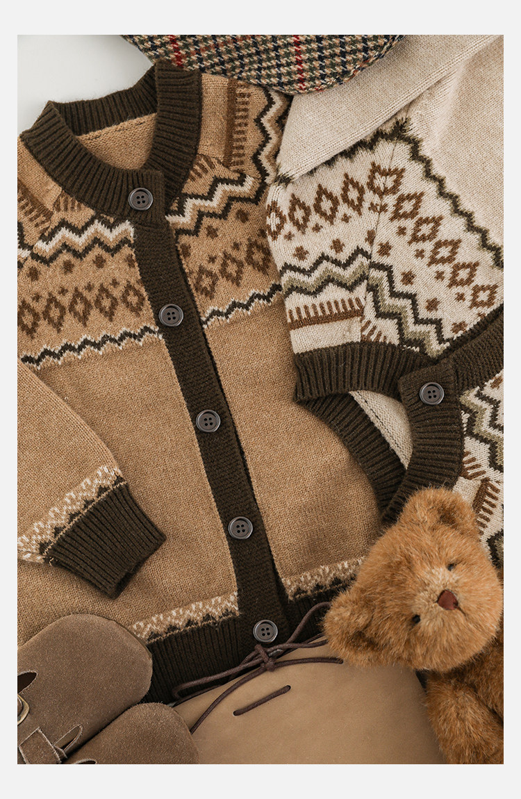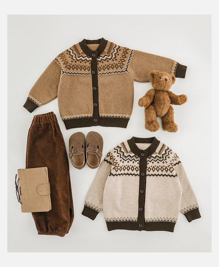 Wulibuyi 소년 2025 새로운 복고풍 영국 스타일 긴팔 스웨터 가을 패션 아동 스웨터 재킷스토어 가기