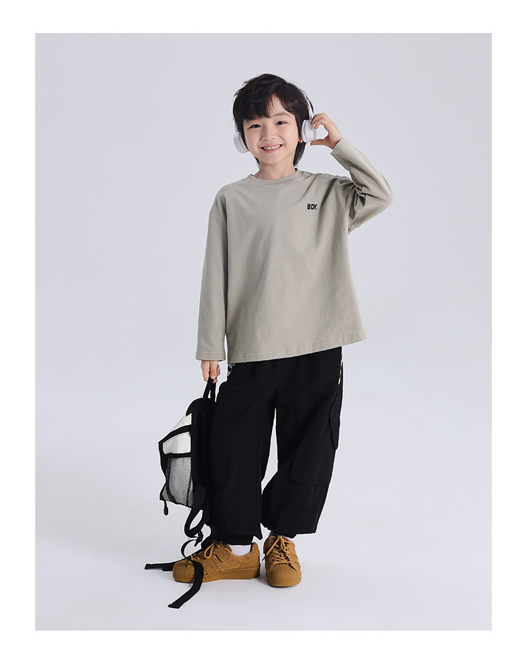 푸딩 Haru Boys 'Bottoming Shirt 2024 가을 새 아동복 긴팔 티셔츠 면 둥근 목 안쪽 탑스토어 가기