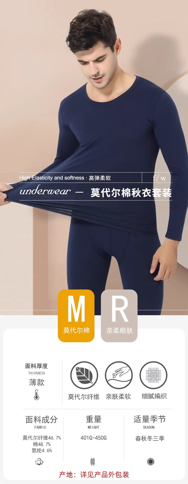 Longsha 열 속옷 세트 남성용 모달 가을 및 겨울 라이너 셔츠 병 얇은 슬림 핏 가을 옷 가을 바지스토어 가기