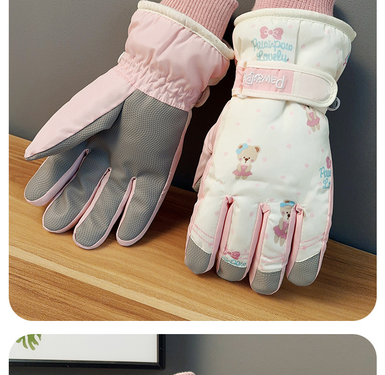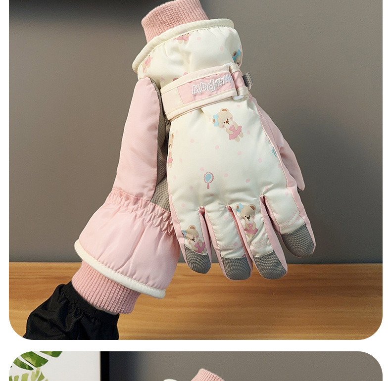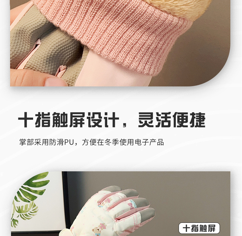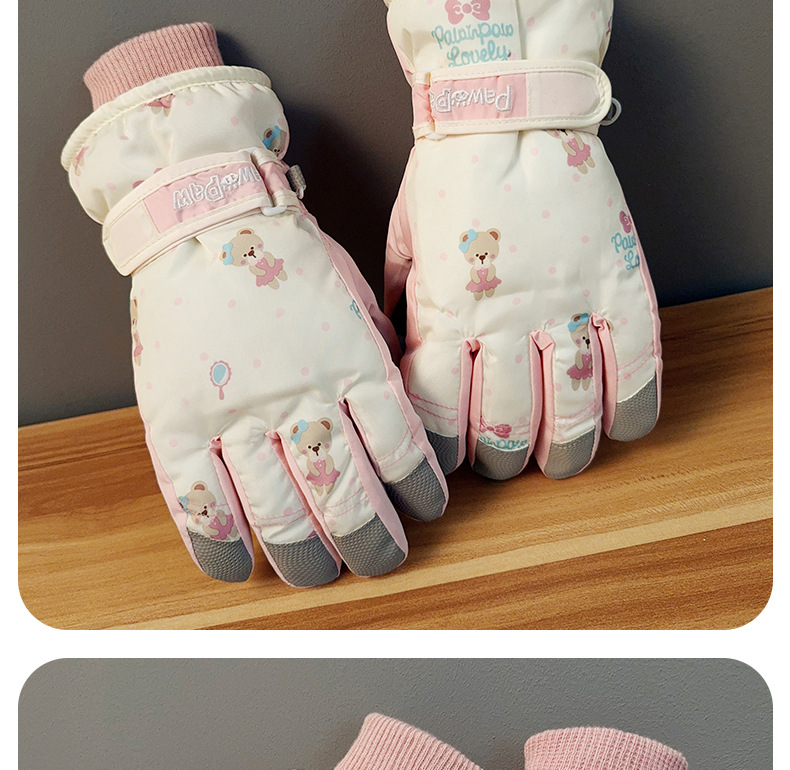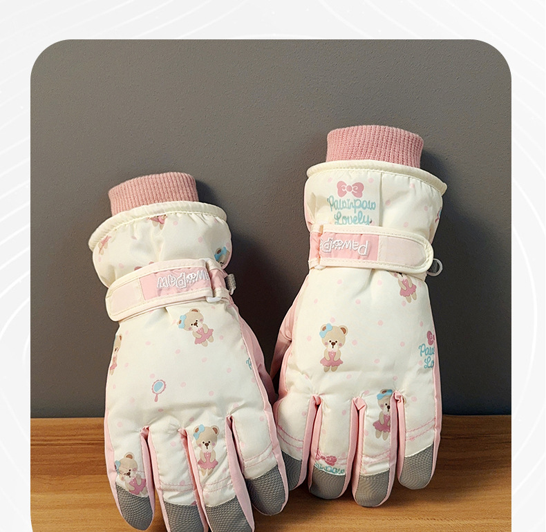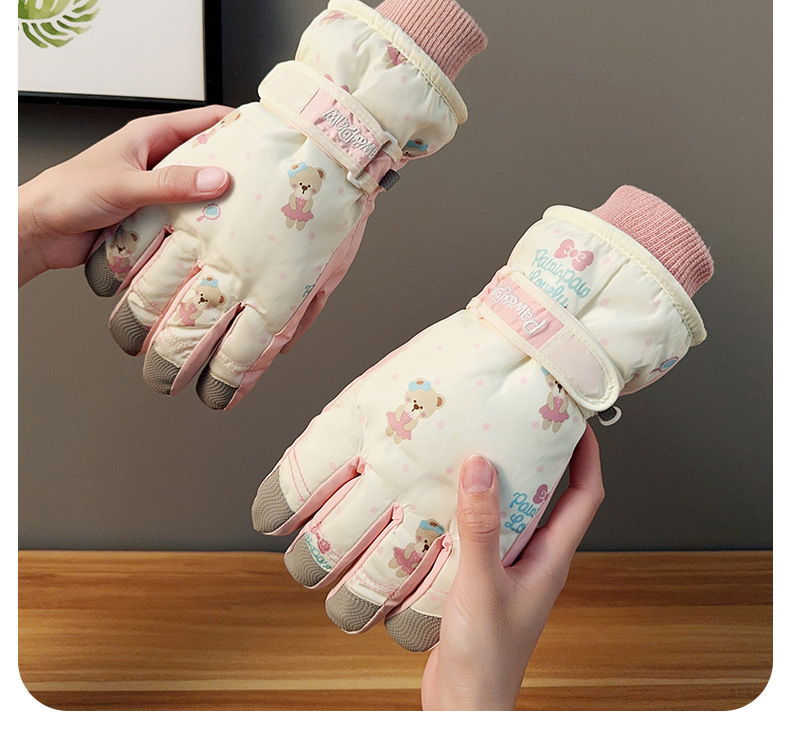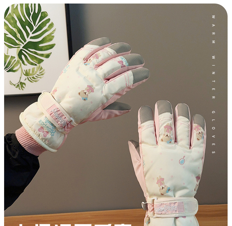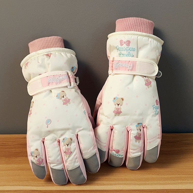 가을과 겨울 곰 스키 장갑 큰 아이 기모 두꺼운 따뜻한 터치 스크린 방풍 사이클링 여성을위한 부모-어린이 스키 장갑스토어 가기