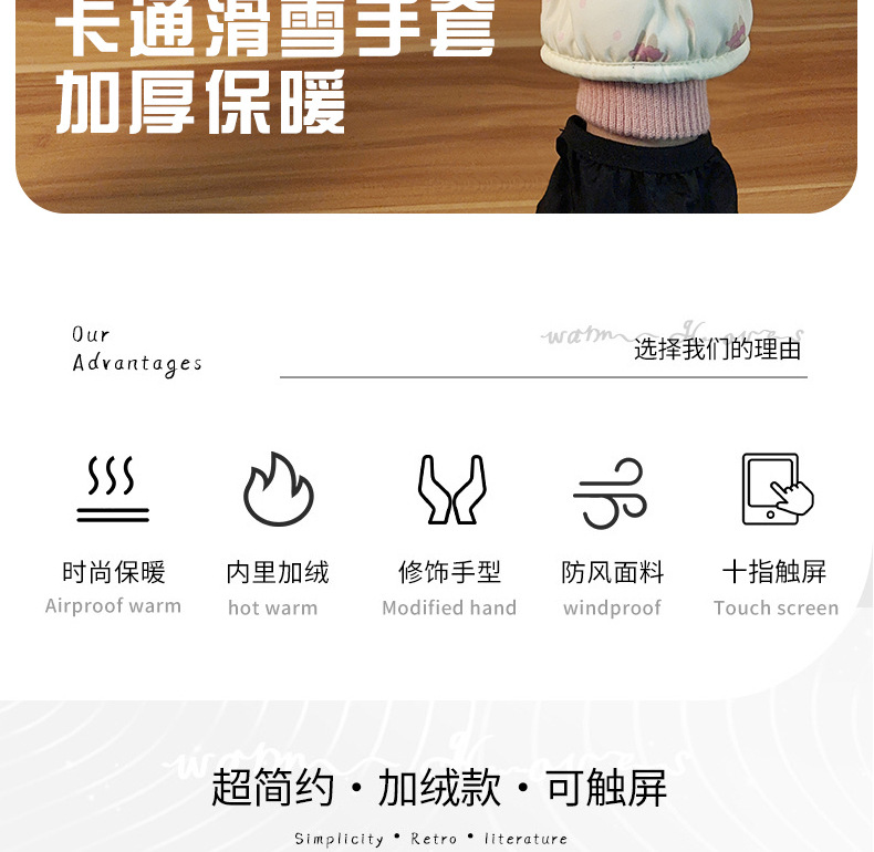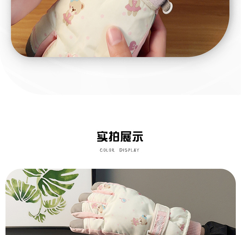 가을과 겨울 곰 스키 장갑 큰 아이 기모 두꺼운 따뜻한 터치 스크린 방풍 사이클링 여성을위한 부모-어린이 스키 장갑