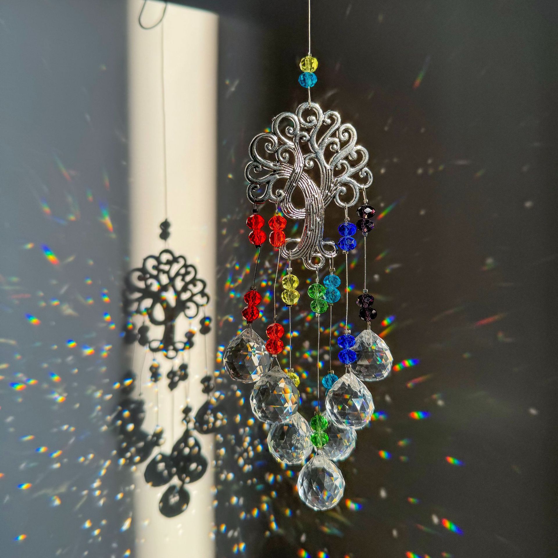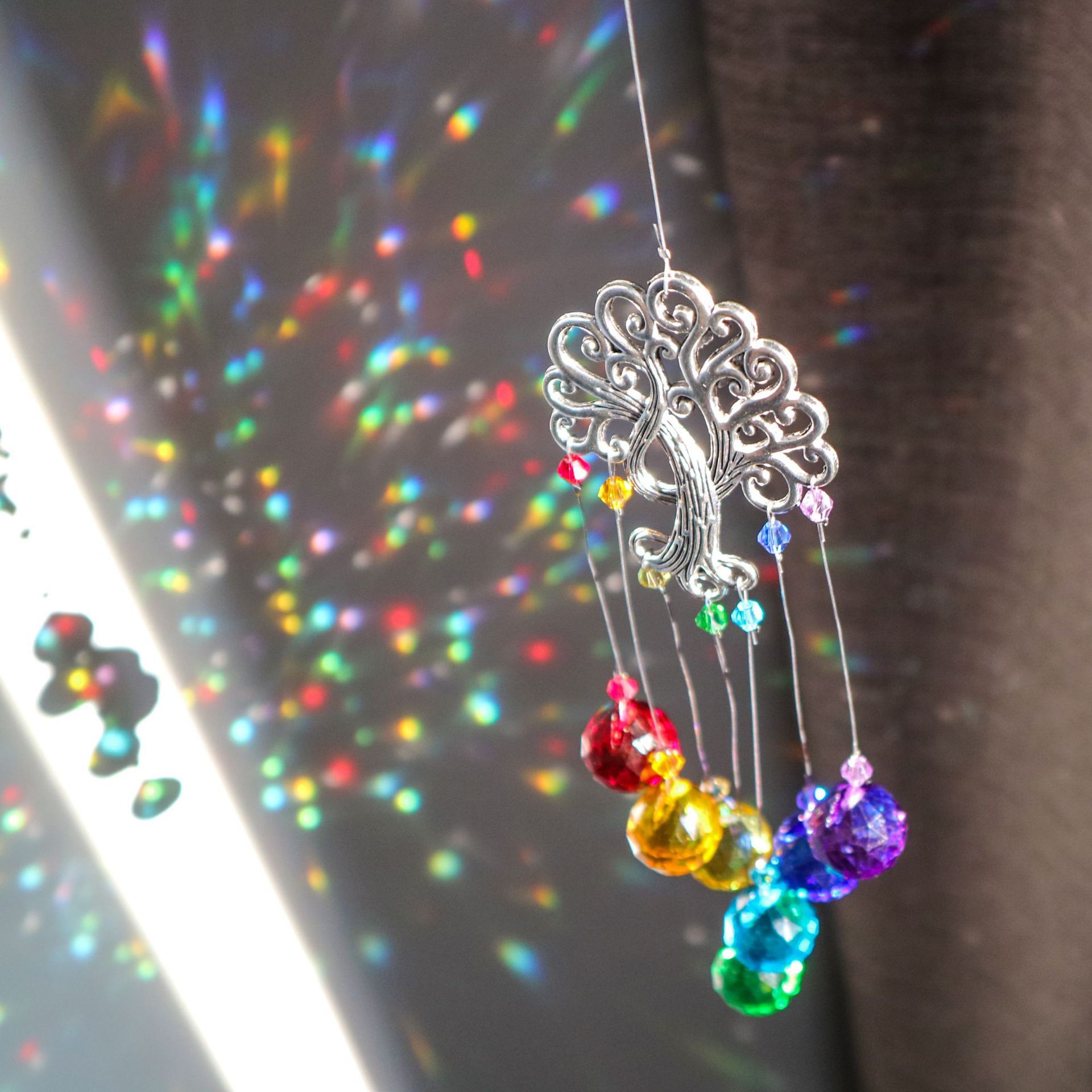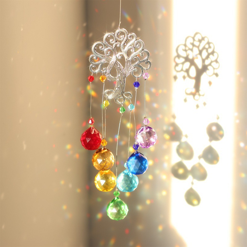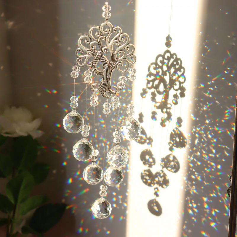 국경 간 생활 나무 크리스탈 바람 벨 DIY 펜던트 정원 장식 태양 포수 교수형 창 홈 자동차 액세서리