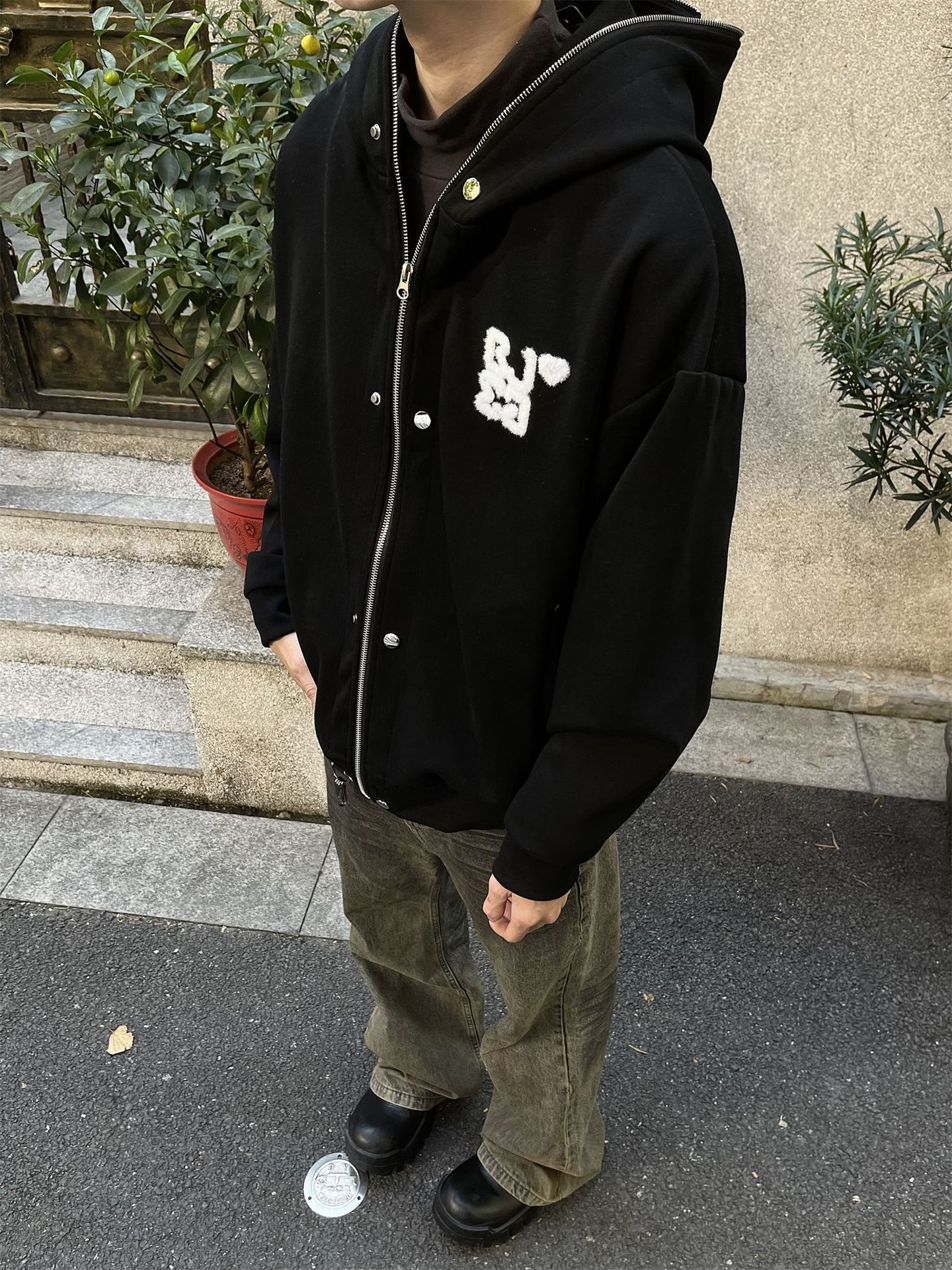 2024 봄과 가을 빈티지 틈새 미국 카디건 후드 스웨터 지퍼 버튼 디자인 센스 가을 코트 탑스토어 가기