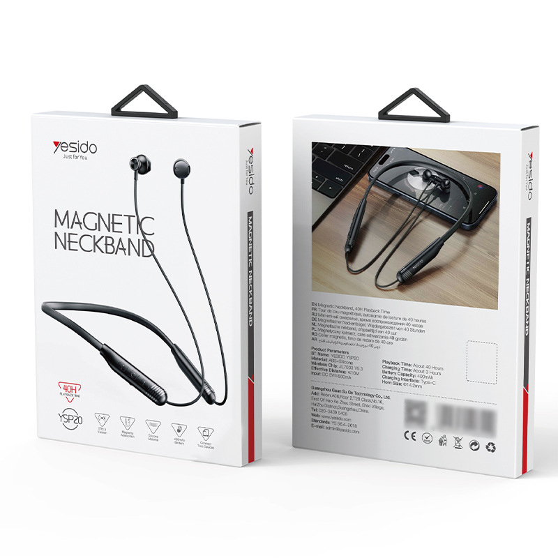 Yesido 블루투스 헤드셋 목걸이형 자기 흡입 국경 간 대용량 및 긴 배터리 수명 스포츠 블루투스 헤드셋스토어 가기