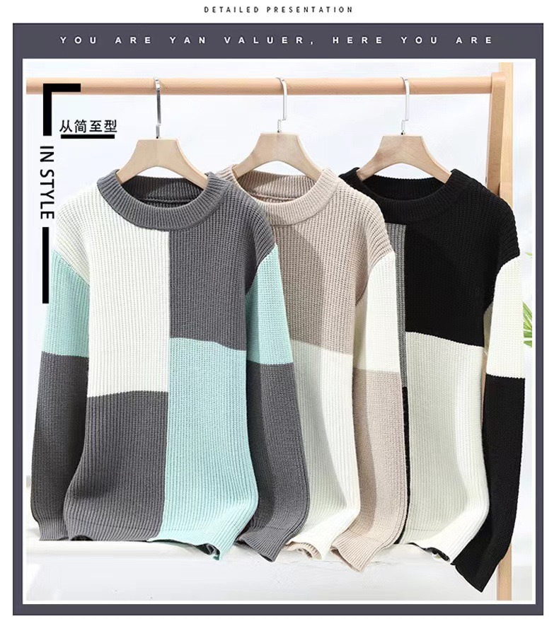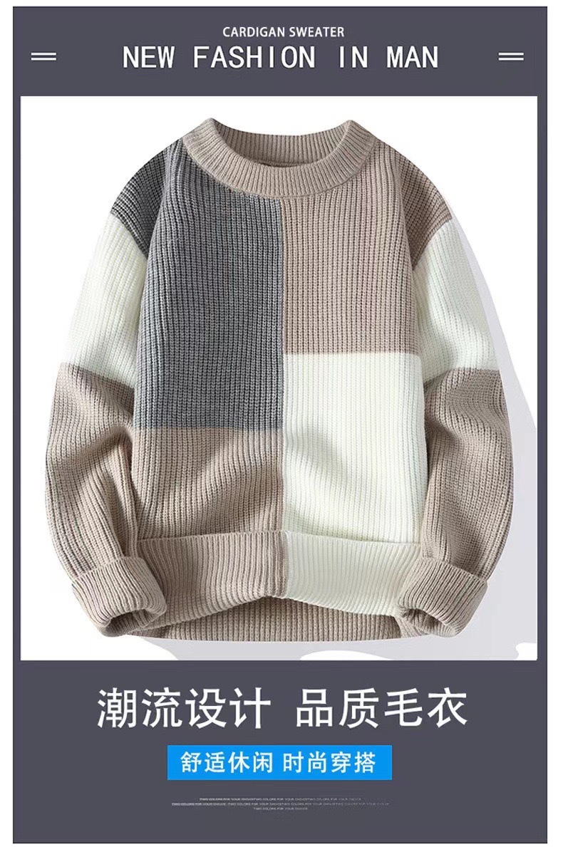 스웨터 남자의 겨울 대조되는 컬러 트렌디 브랜드 베이스 니트 스웨터 유행 느슨한 플러스 사이즈 스웨터 겨울 따뜻한 대외 무역 의류스토어 가기