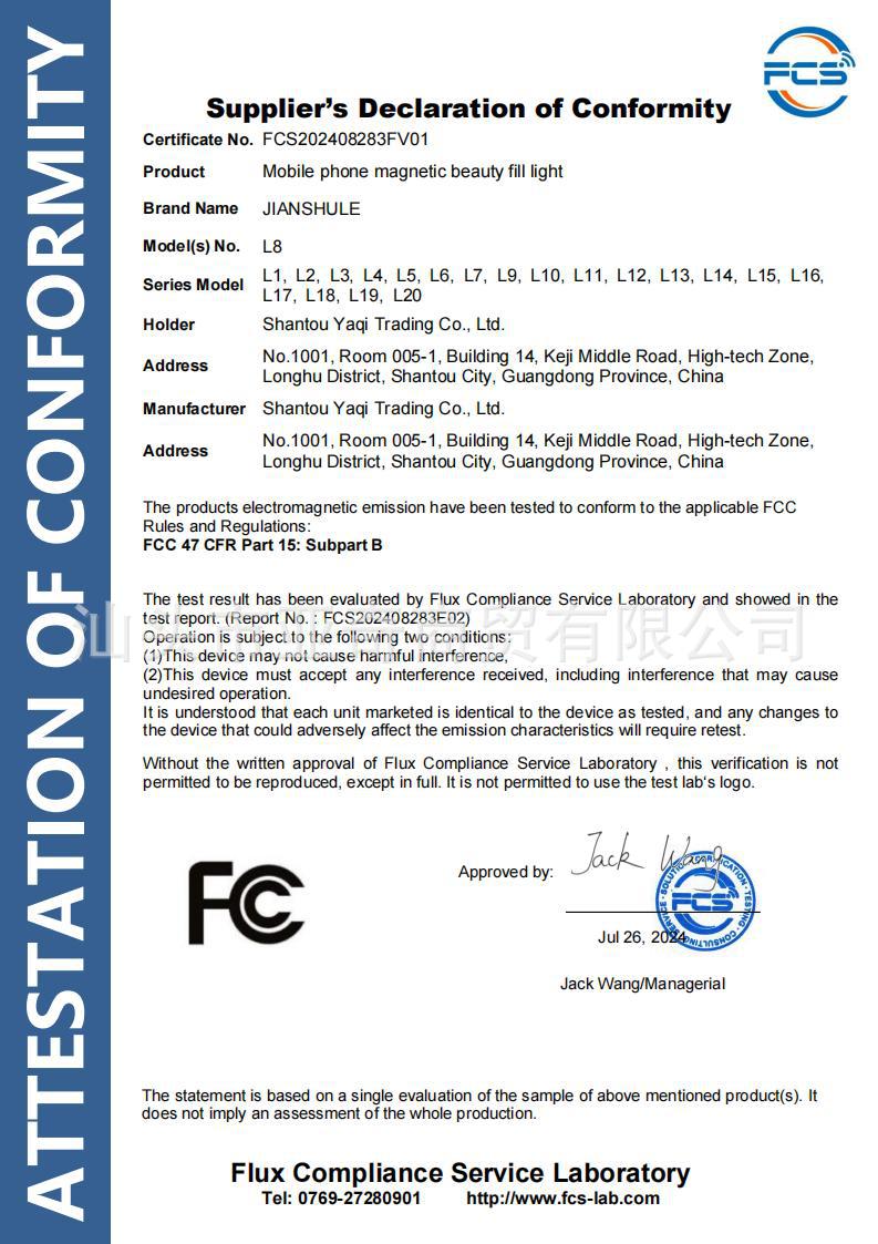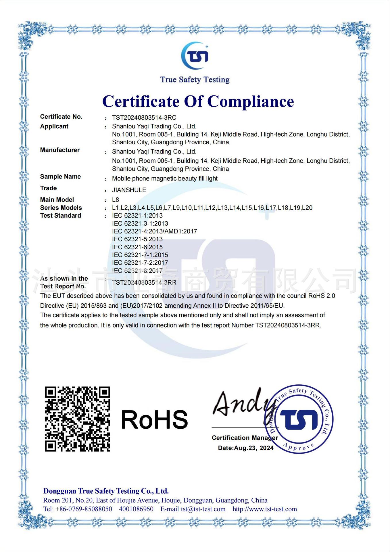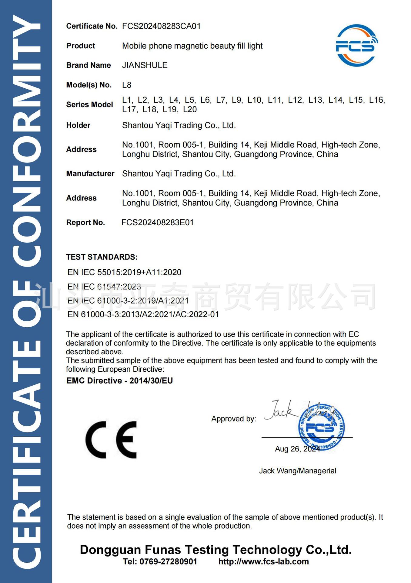 本产品通过 CE\\Rohs\\FCC\\UL认证和检测及国内产品检测,可放心在各电商平台销售