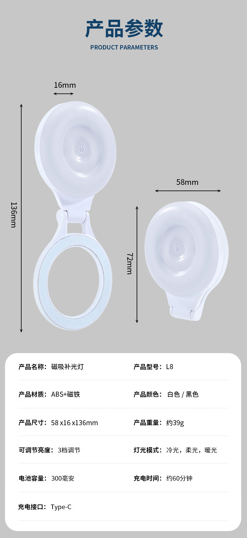 盒装,每个产品均配有一个引磁环及一条简易C口充电线