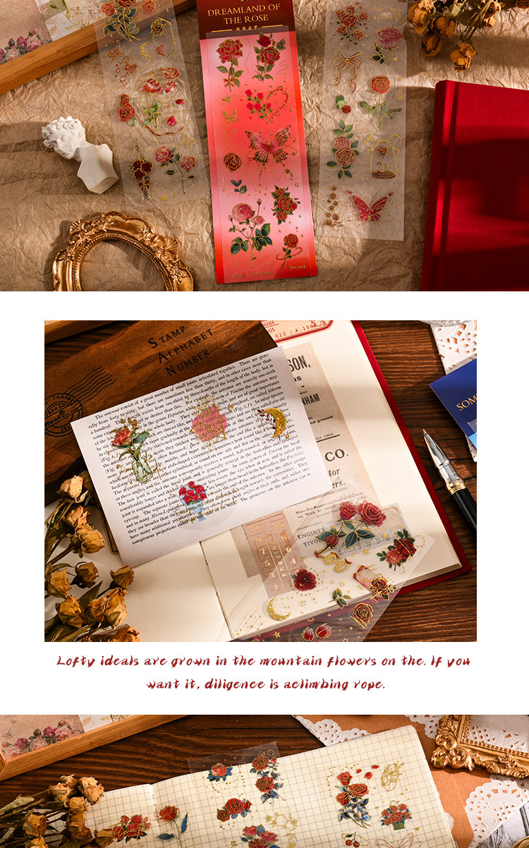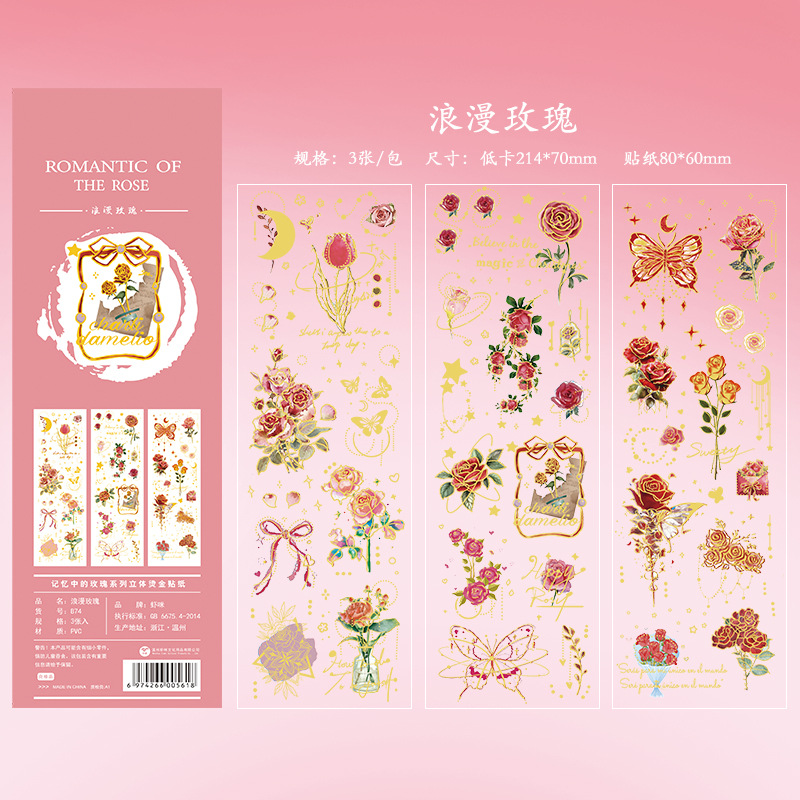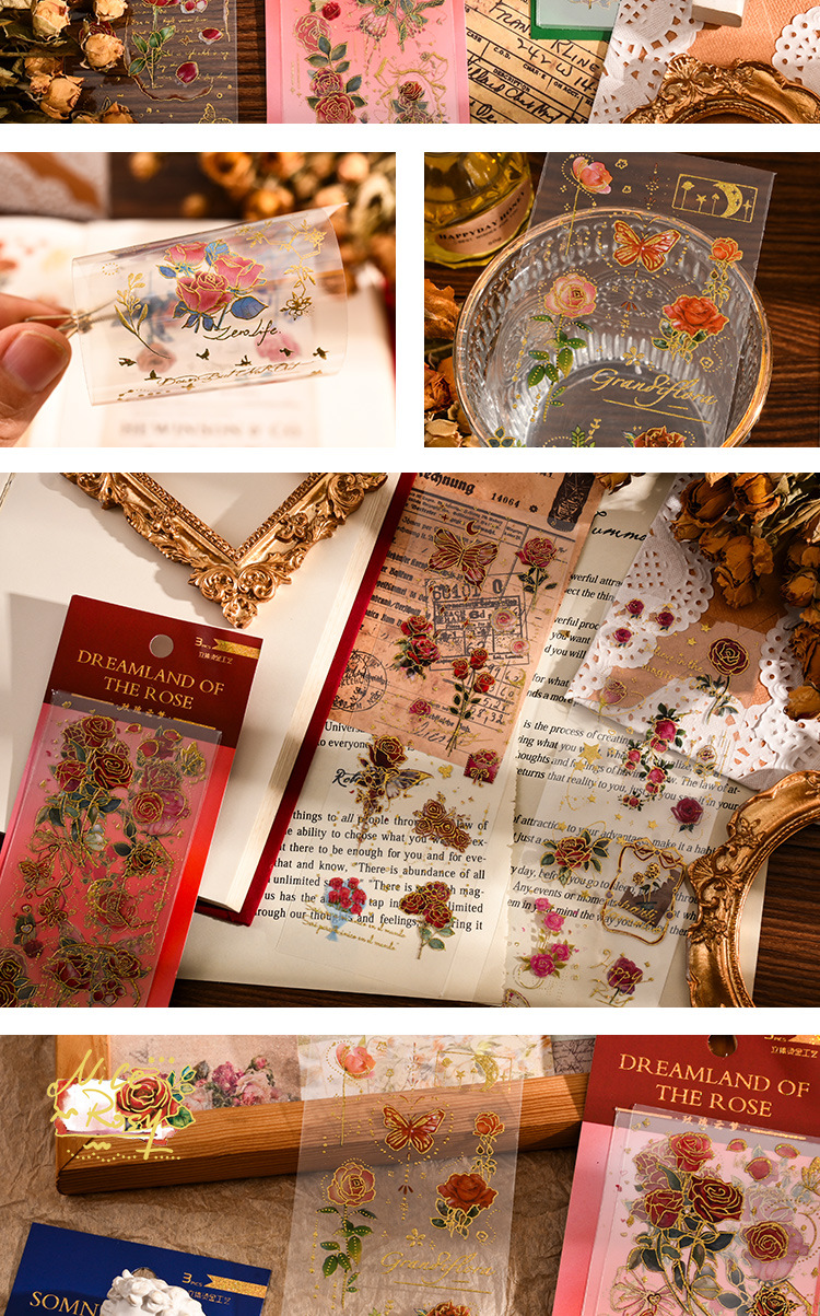 레트로 귀여운 장미 브론 징 스티커 투명 PVC 손 계정 물 컵 일기 장식 소재 패턴 Diy 작은 스티커스토어 가기