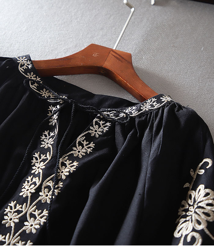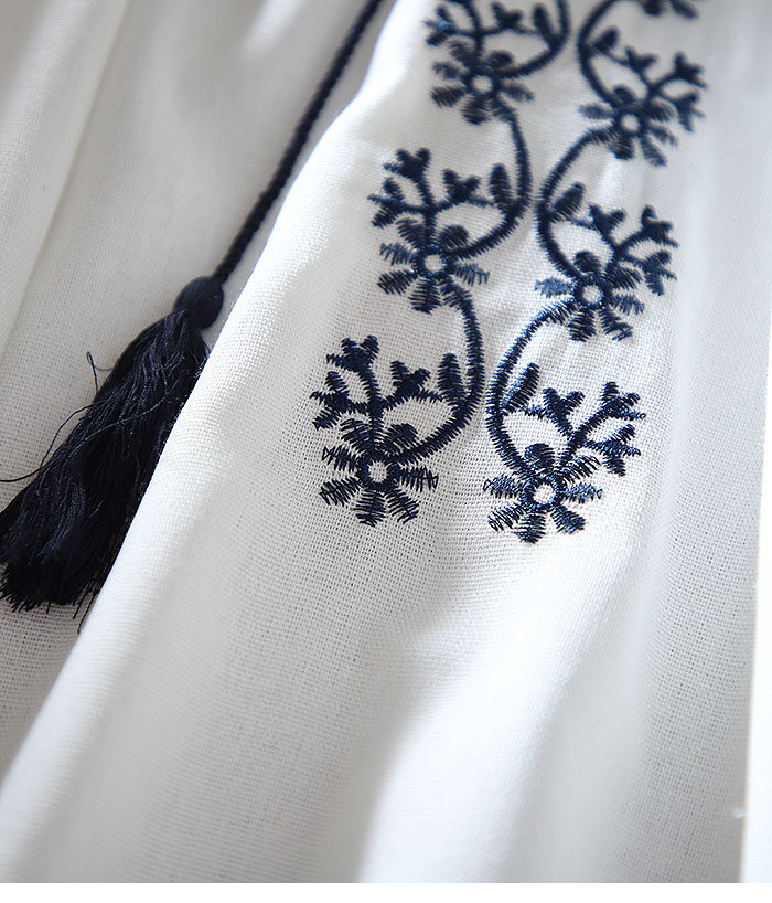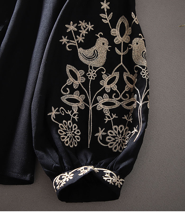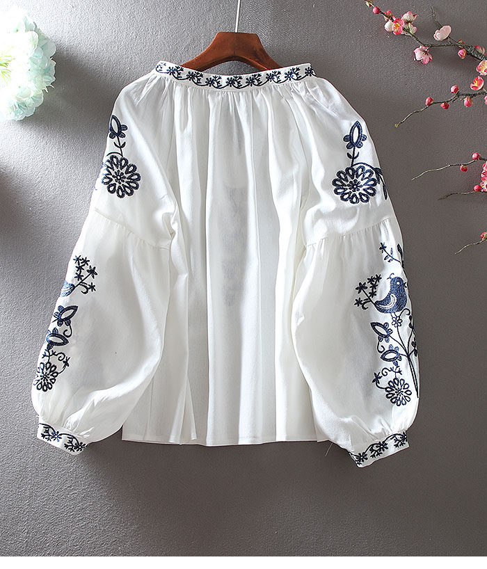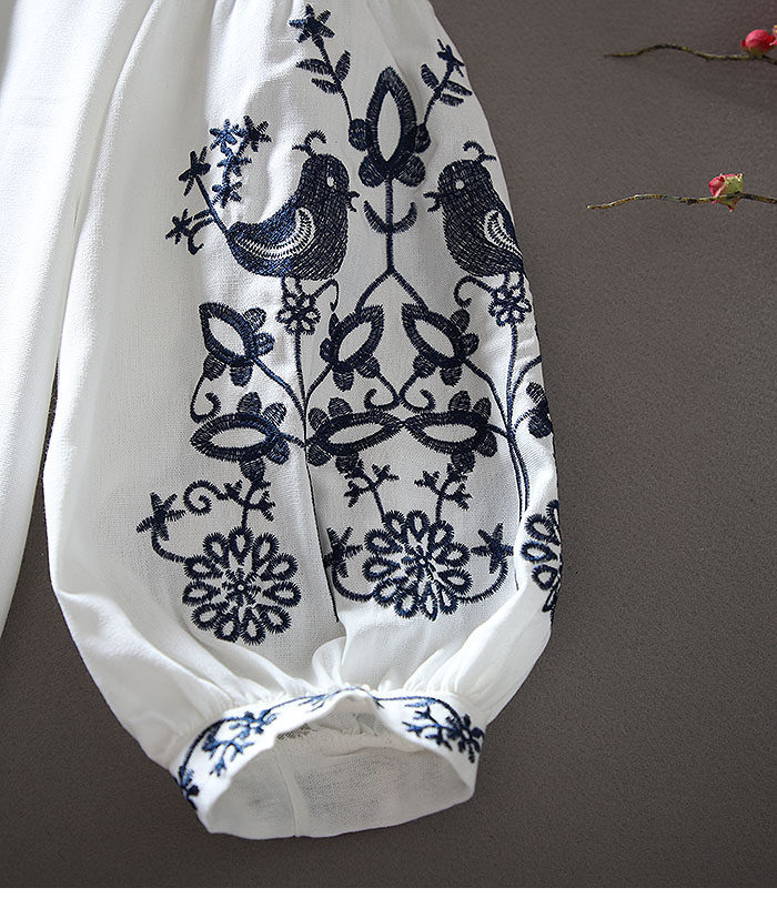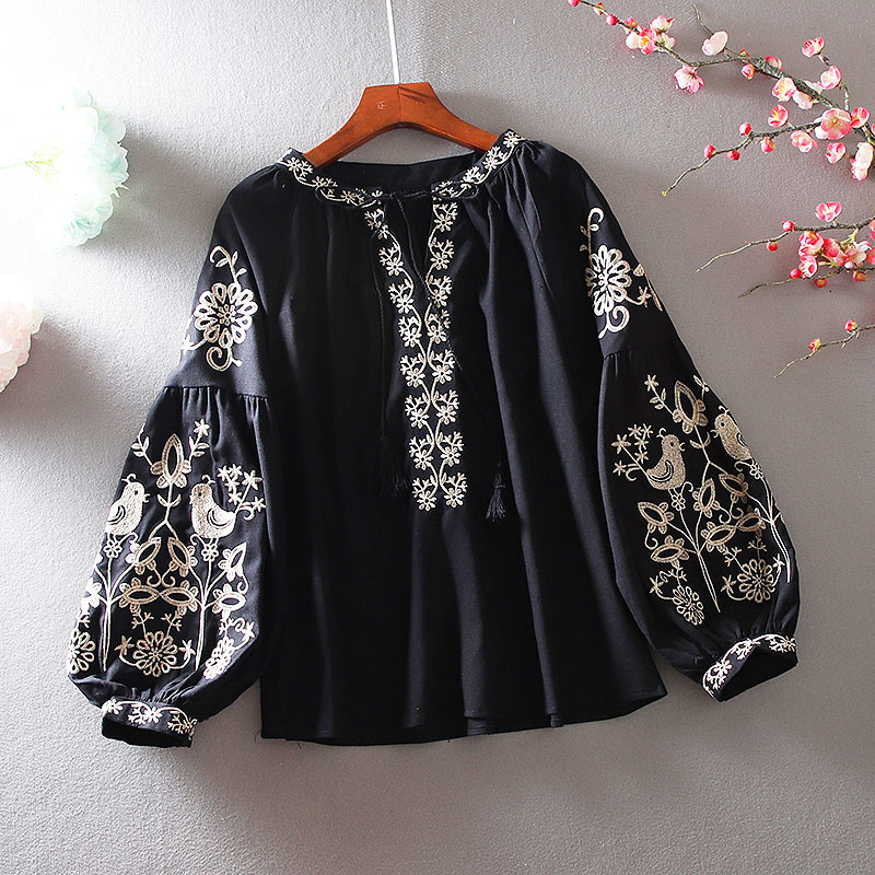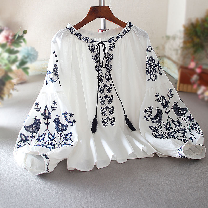 유럽 역 패션 민족 스타일 랜턴 슬리브 코튼 리넨 긴 소매 중공업 자수 느슨한 캐주얼 셔츠 여성의 가을 탑
