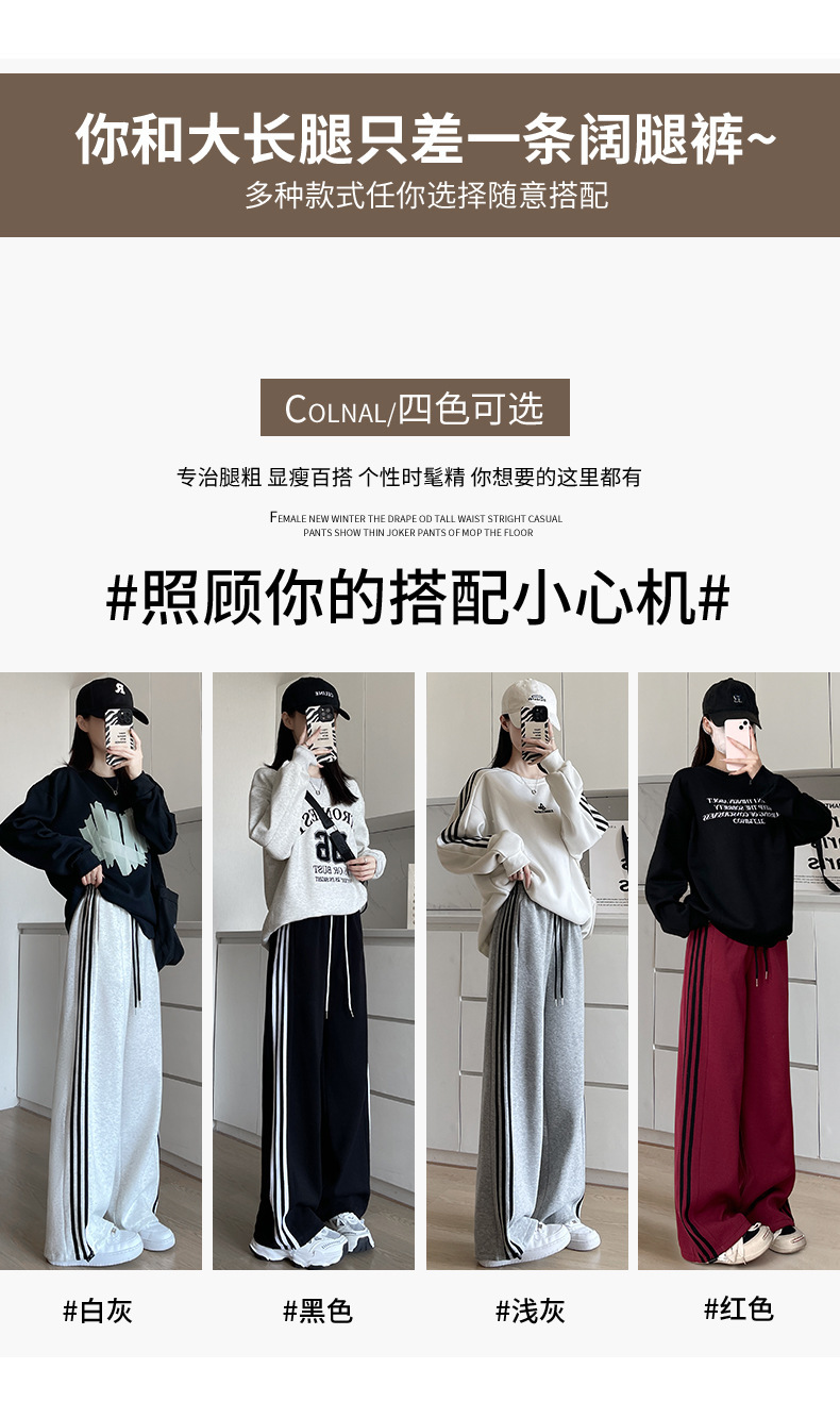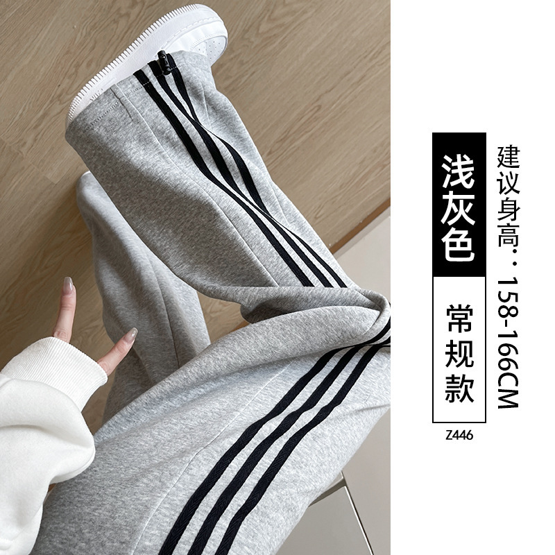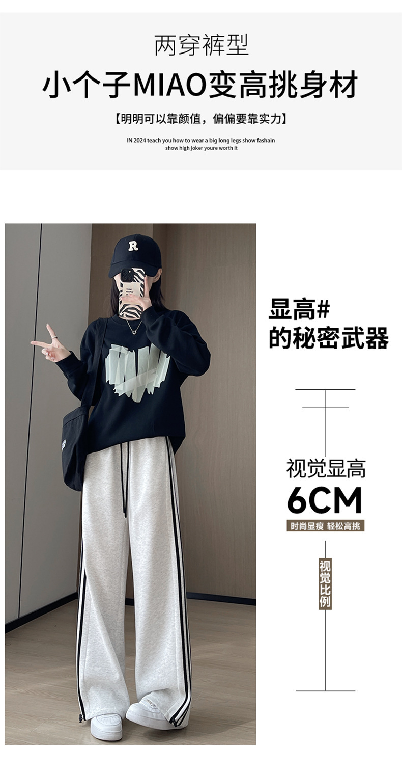 화이트 그레이 스트라이프 스포츠 바지 여성의 봄과 가을 2024 새로운 넓은 다리 스트레이트 다리 바지 캐주얼 작은 느슨한 운동복