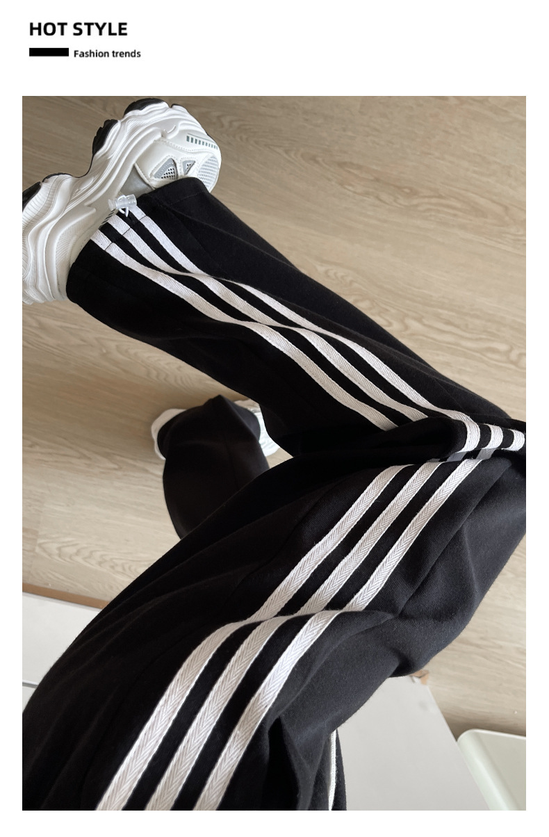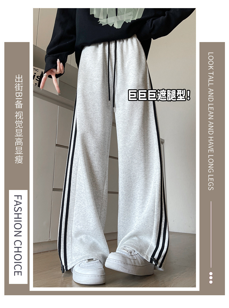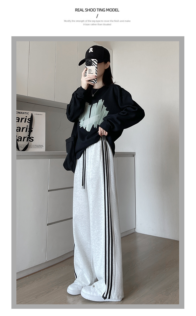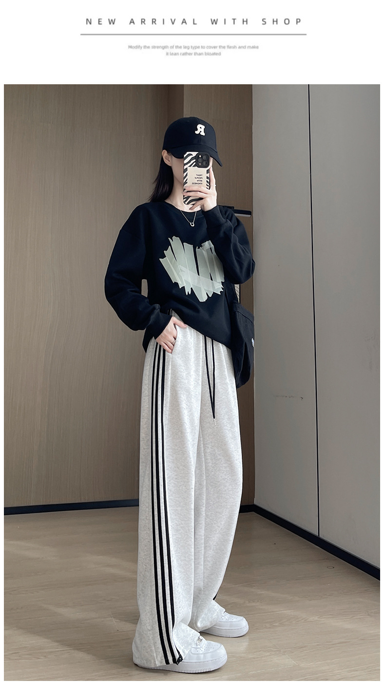 화이트 그레이 스트라이프 스포츠 바지 여성의 봄과 가을 2024 새로운 넓은 다리 스트레이트 다리 바지 캐주얼 작은 느슨한 운동복스토어 가기