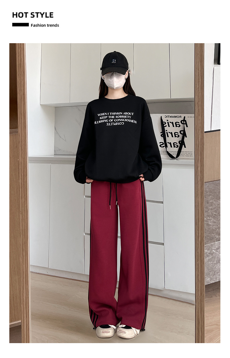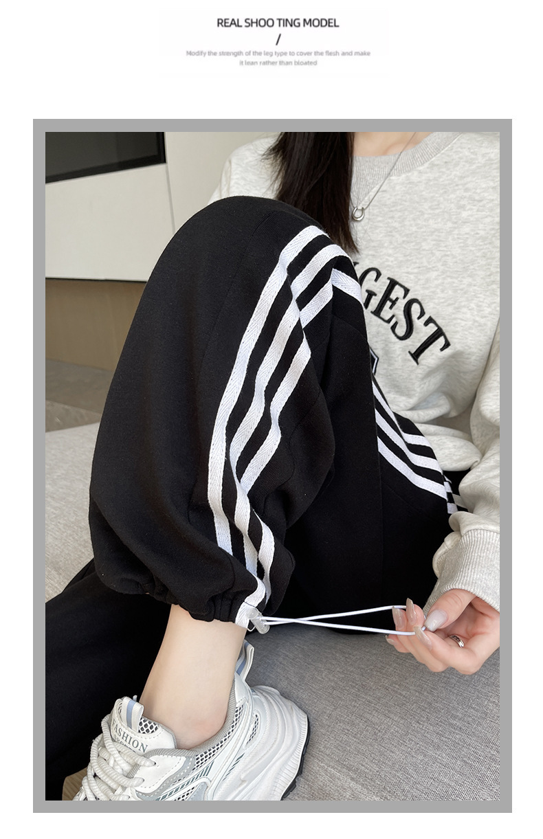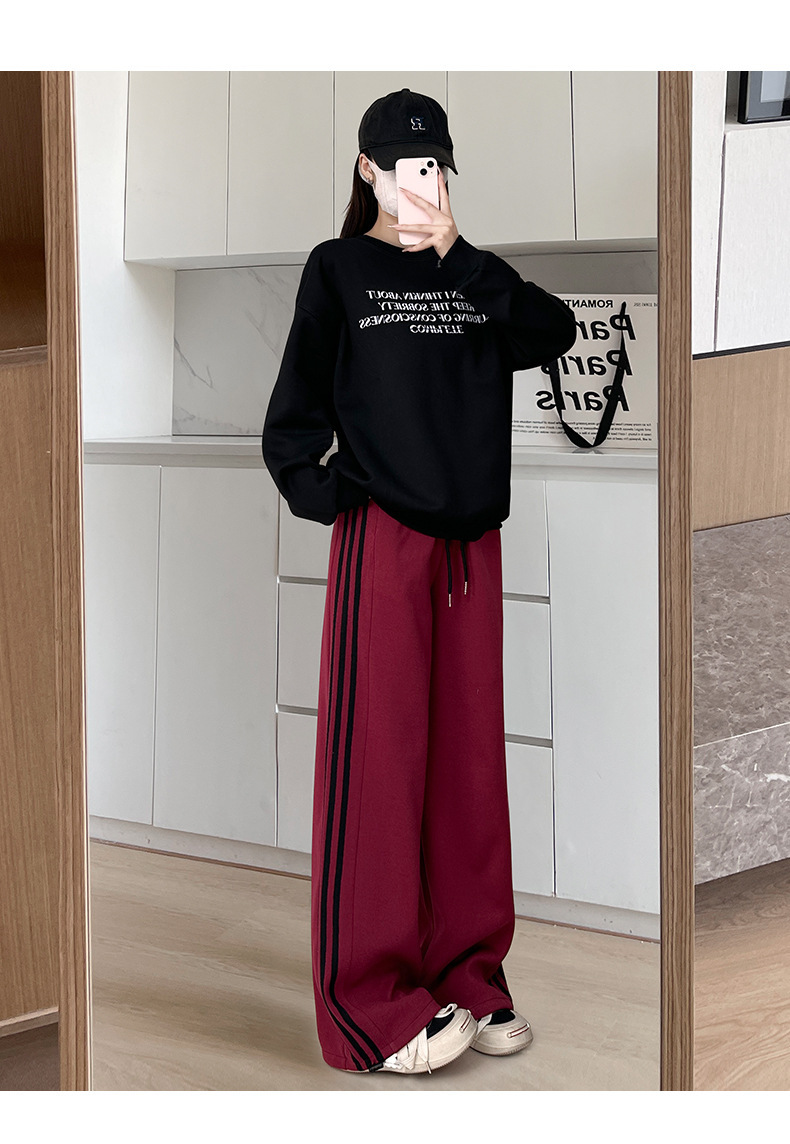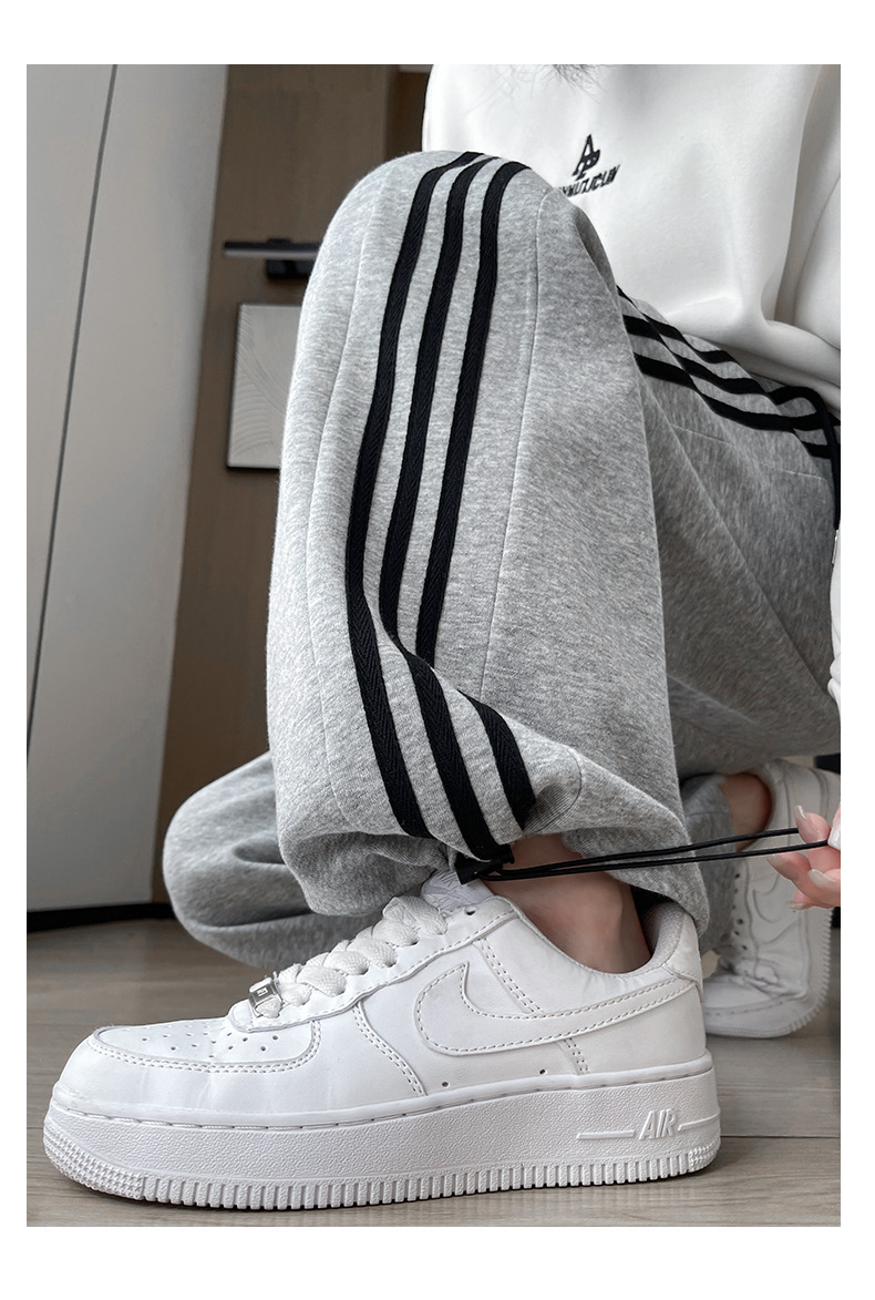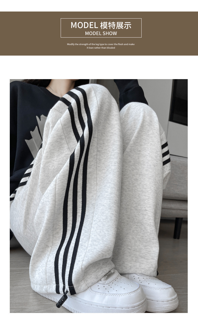 화이트 그레이 스트라이프 스포츠 바지 여성의 봄과 가을 2024 새로운 넓은 다리 스트레이트 다리 바지 캐주얼 작은 느슨한 운동복스토어 가기