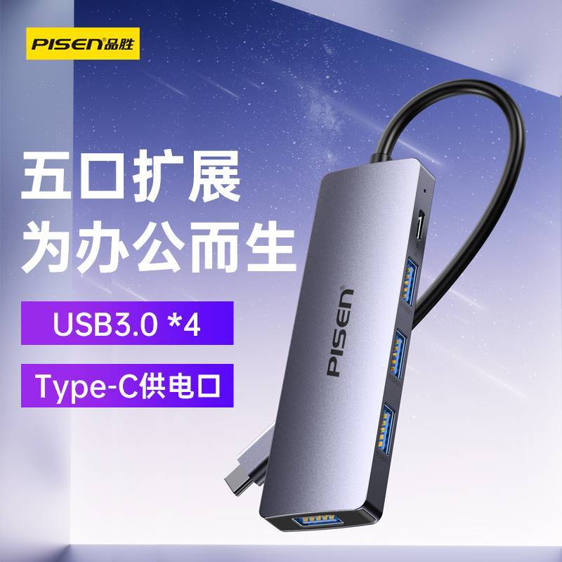 Pinsheng Type-C 익스텐더 1 대 4 허브 스플리터 컴퓨터 외부 어댑터 전원 공급 장치 확장 도크스토어 가기