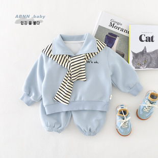 婴儿春装分体套装男女宝宝棉质长袖上衣裤子可爱披肩两件套61369