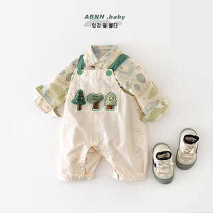 2026新生儿背带裤婴儿韩版三棵小树连体衣儿童外穿爬服61337