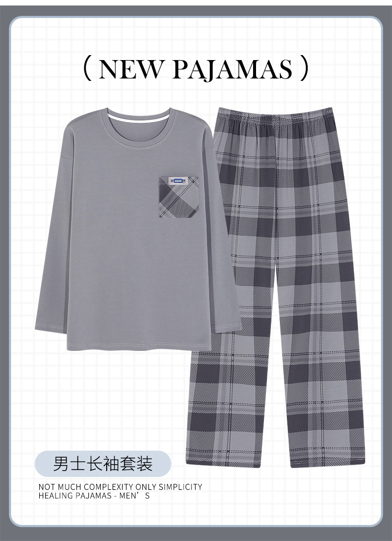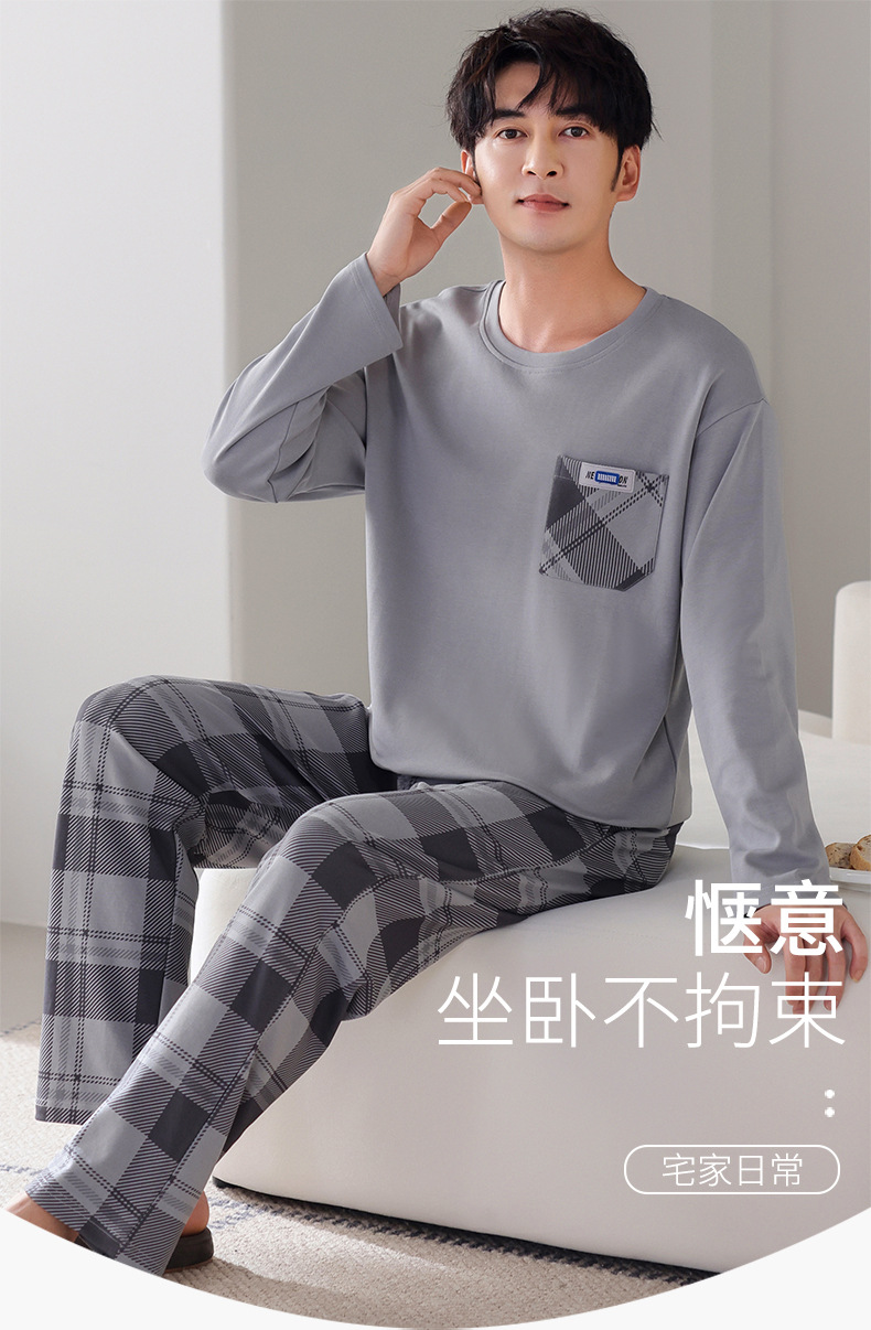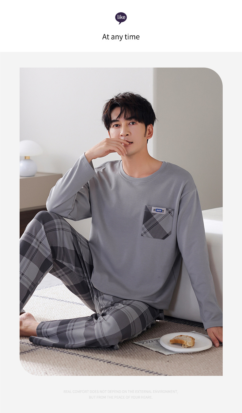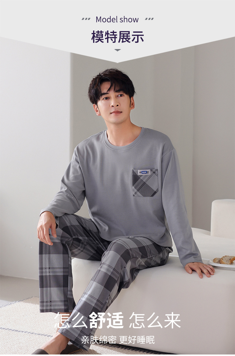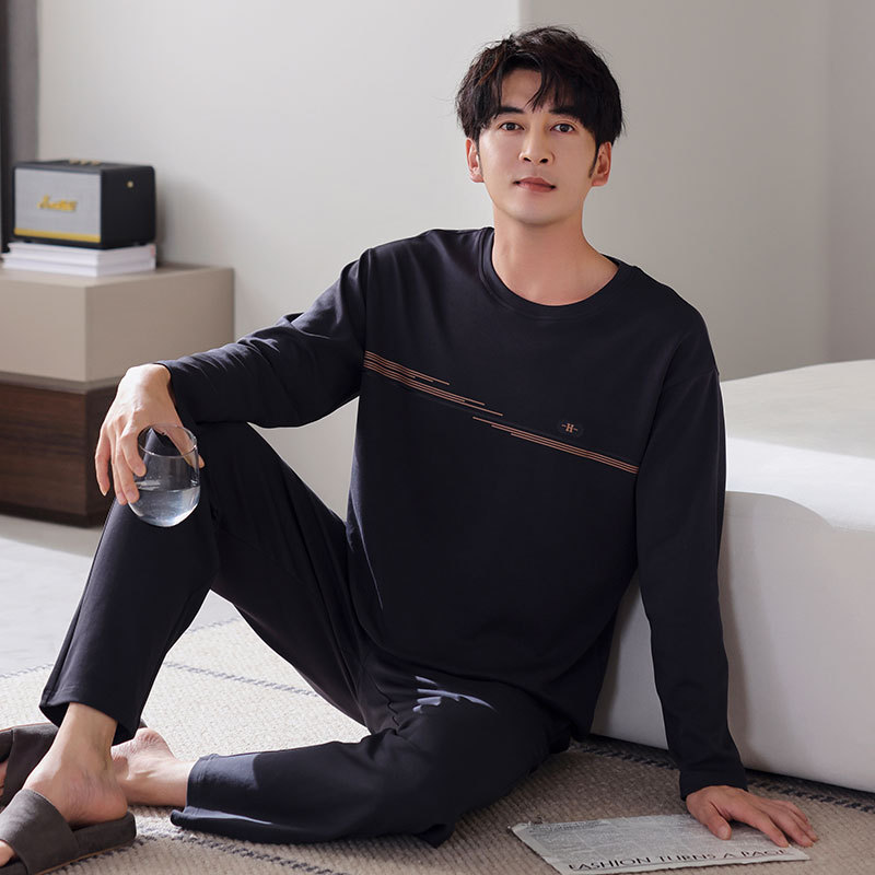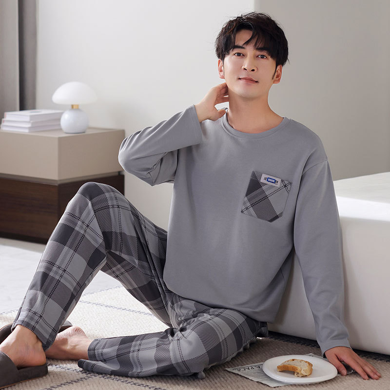 잠옷 남성면 긴 소매 봄과 가을 플러스 사이즈 풀오버 홈 옷 2024 새로운 의상 캐주얼 세트