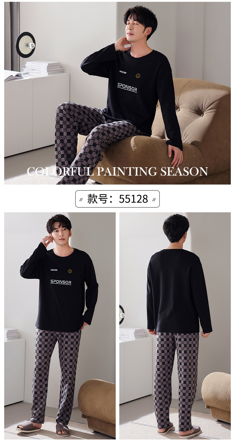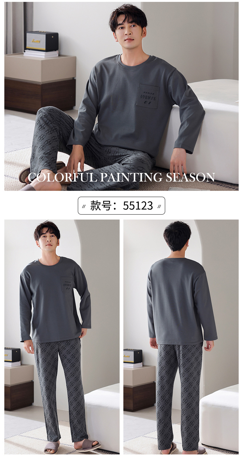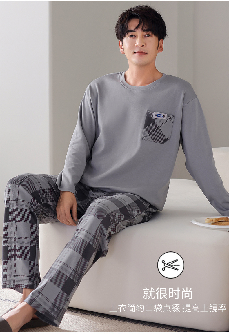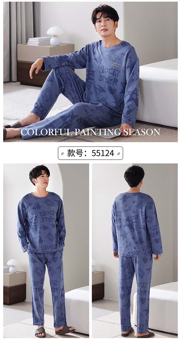 잠옷 남성면 긴 소매 봄과 가을 플러스 사이즈 풀오버 홈 옷 2024 새로운 의상 캐주얼 세트