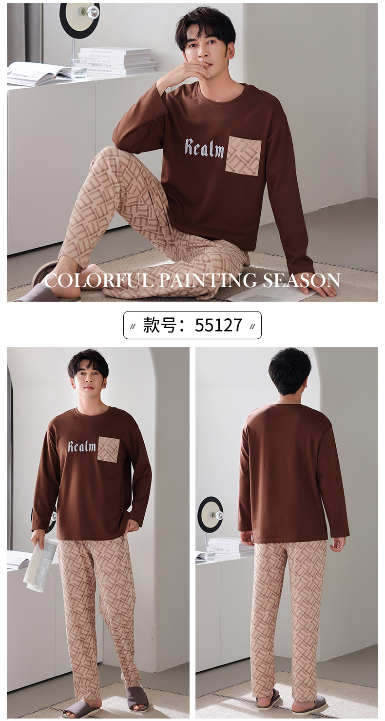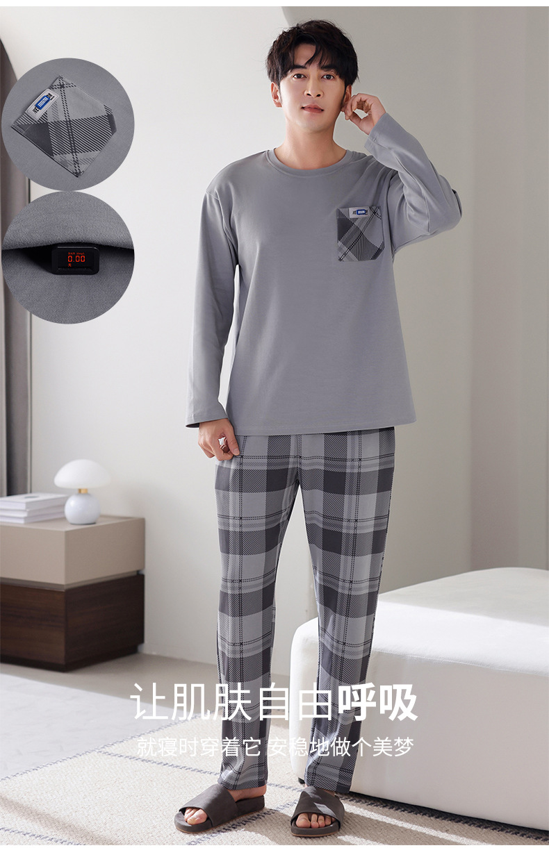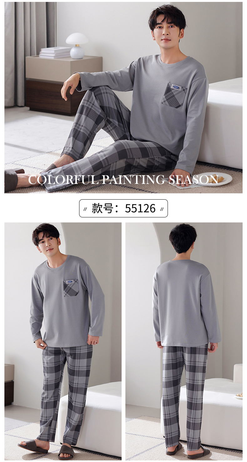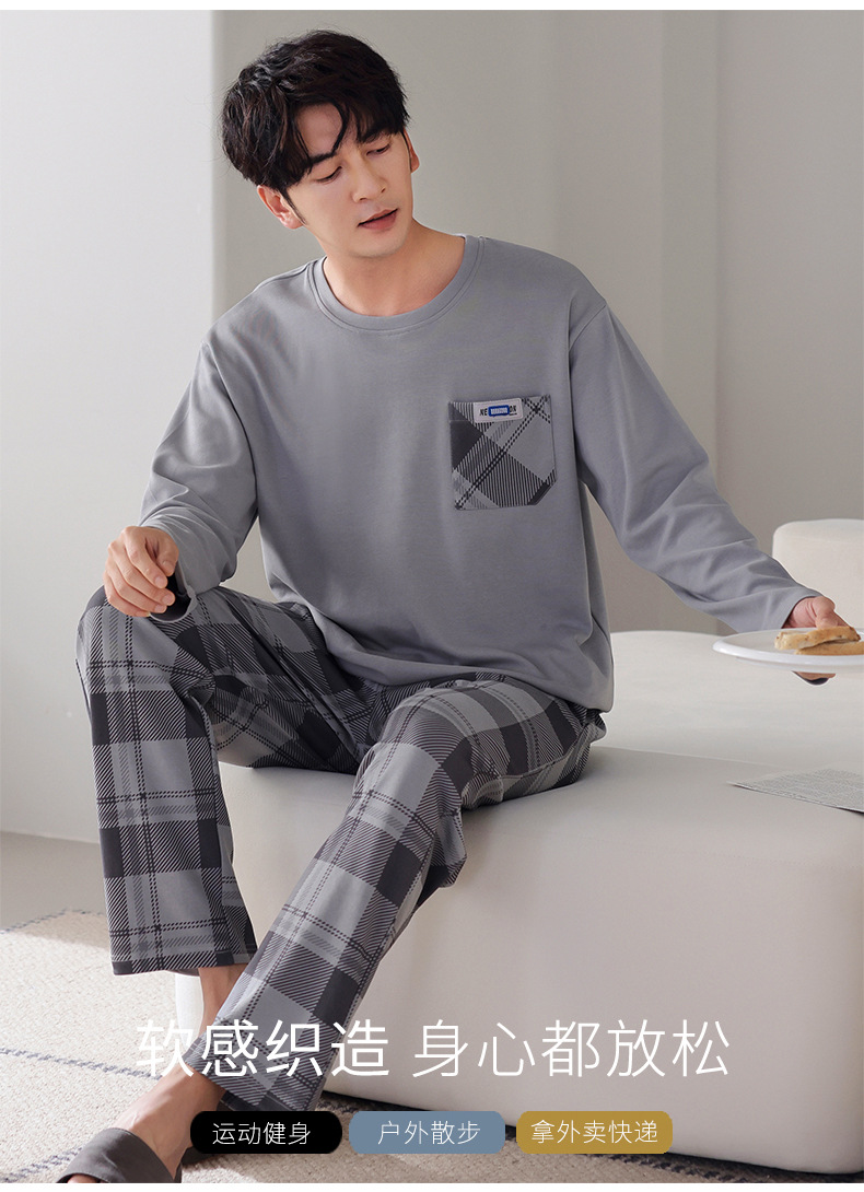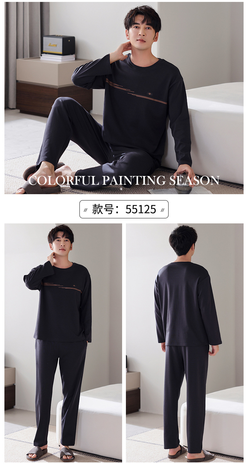 잠옷 남성면 긴 소매 봄과 가을 플러스 사이즈 풀오버 홈 옷 2024 새로운 의상 캐주얼 세트