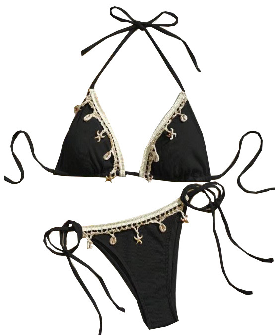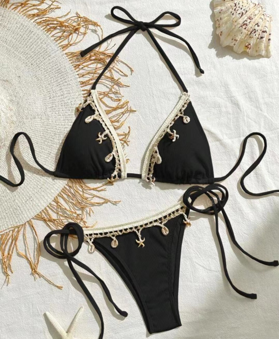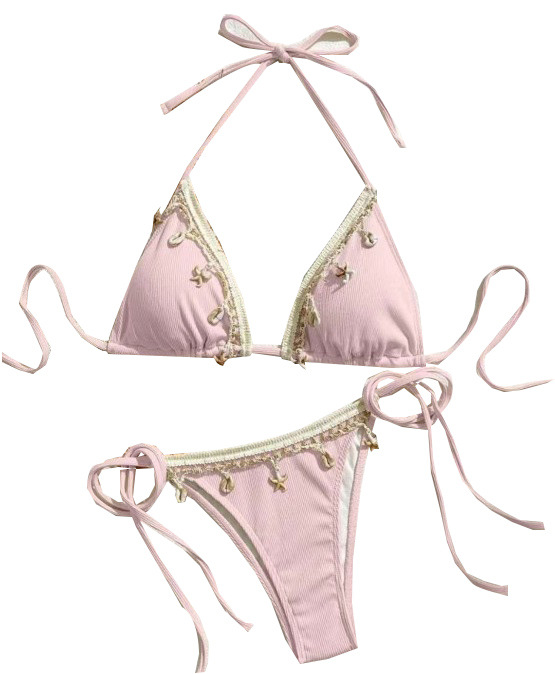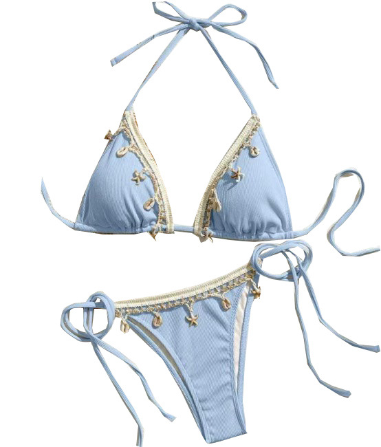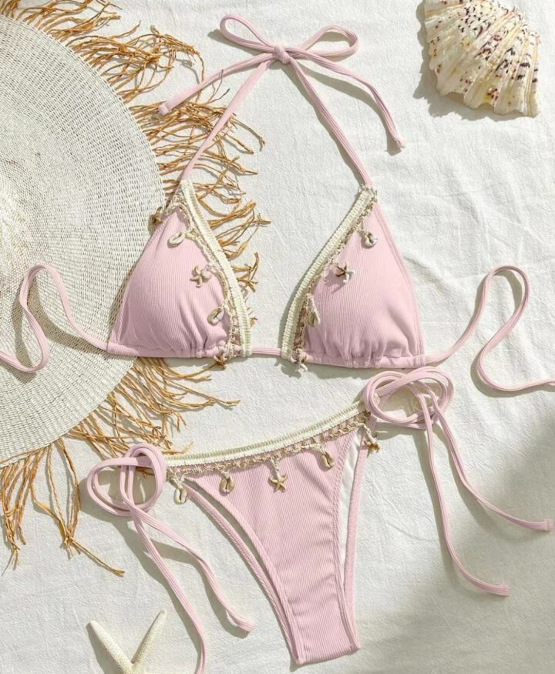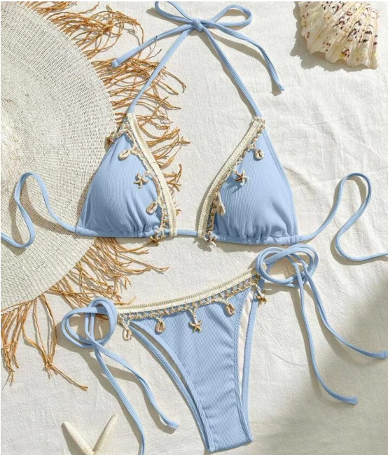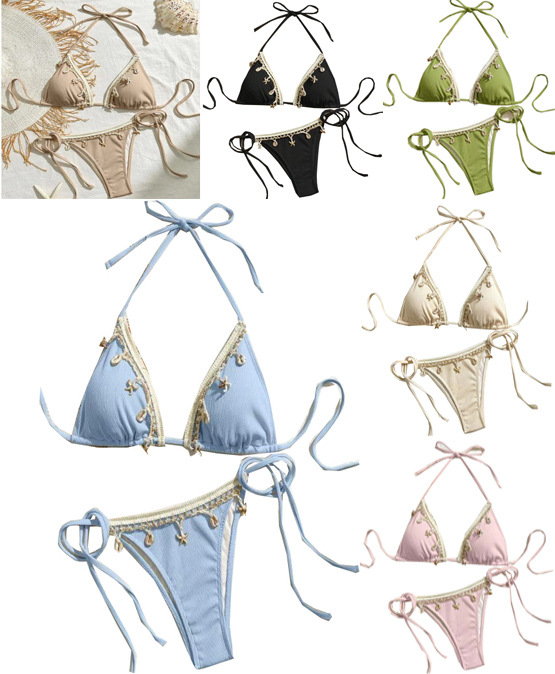 수영복 여자 2024 새로운 유럽 및 미국 국경 간 비키니 삼각형 컵 섹시한 교수형 목 스트랩 레이스 수영복스토어 가기