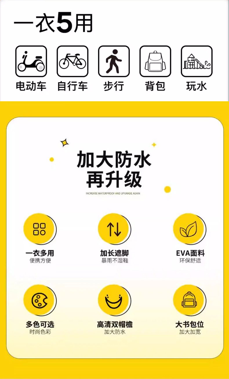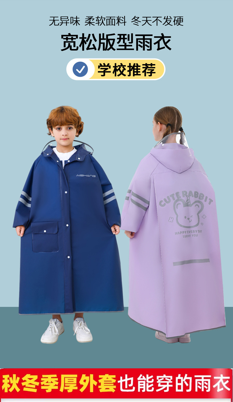 엑스트라 롱 어린이 비옷 남녀 중 · 노년층 온체대 폭풍우벨트 스쿨백 위치 어린이 특별 판초
