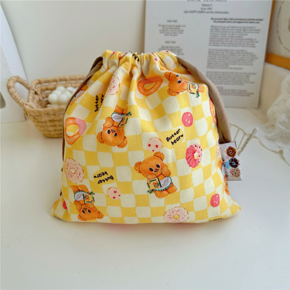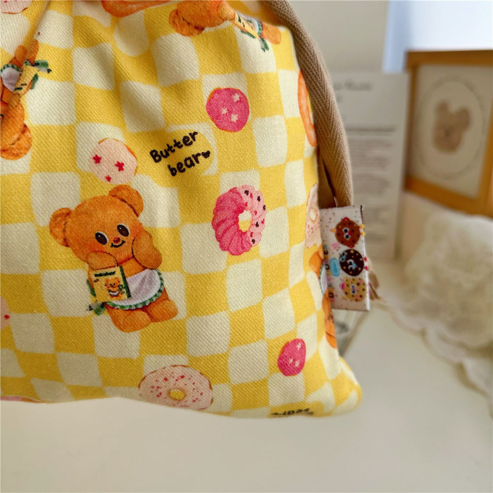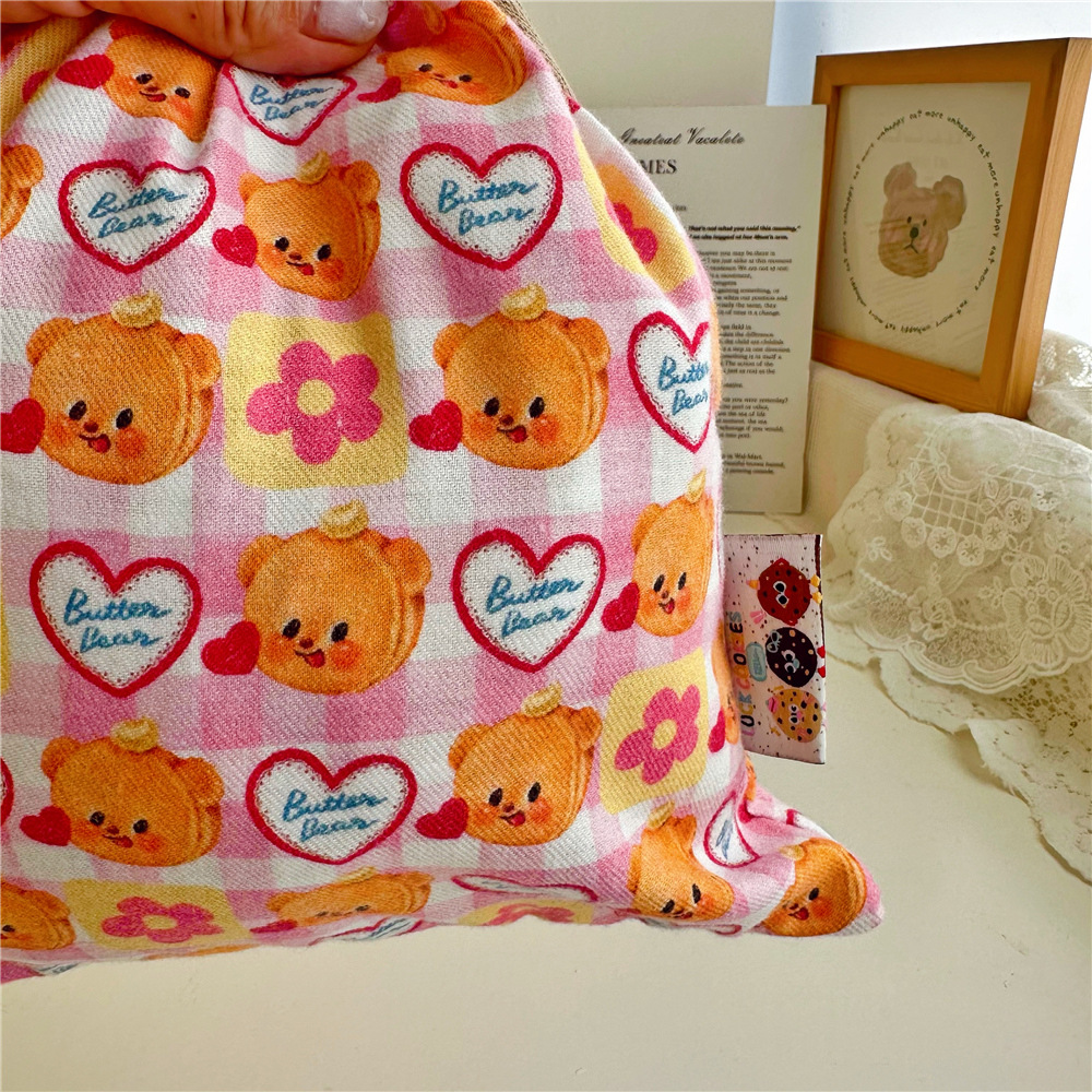 磨毛棉布小熊印花抽绳束口袋收纳袋