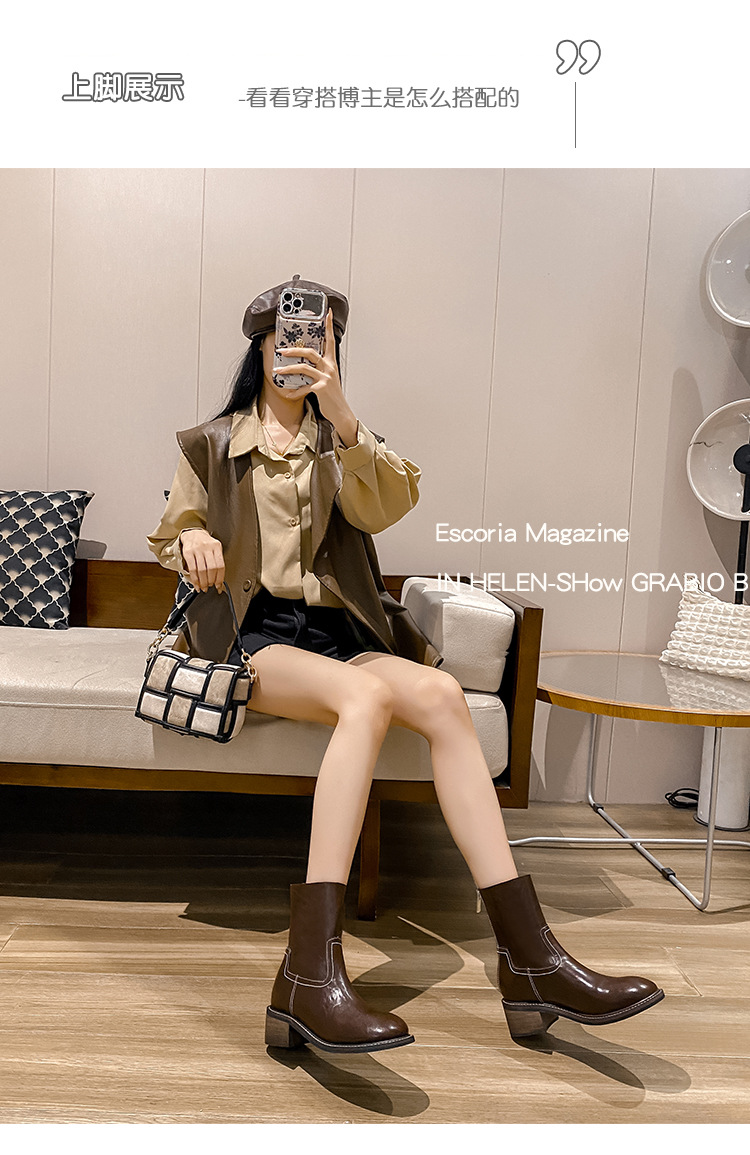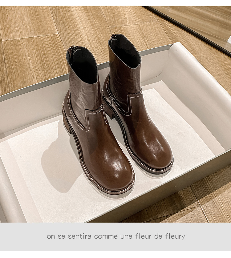 Maillard Platform Martin Boots 2024 새로운 영국식 다크 브라운 높이 증가 가죽 스타일 짧은 부츠 여성의 가을과 겨울스토어 가기