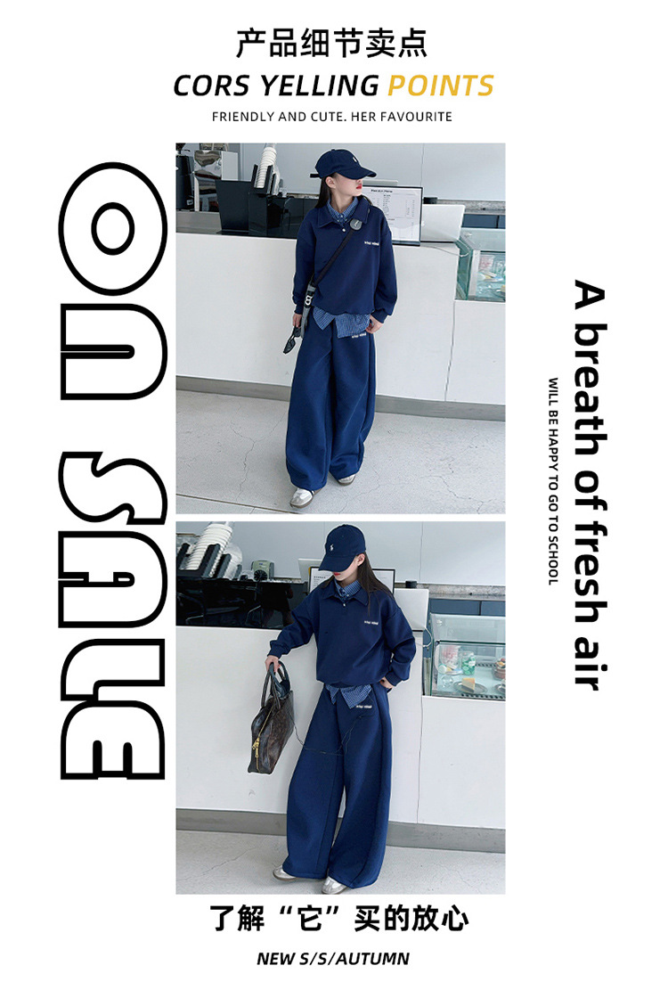 소녀의 봄과 가을 운동복 격자 무늬 셔츠 세트 중대형 어린이 가을 느슨한 넓은 다리 바지 캐주얼 3 피스 세트스토어 가기